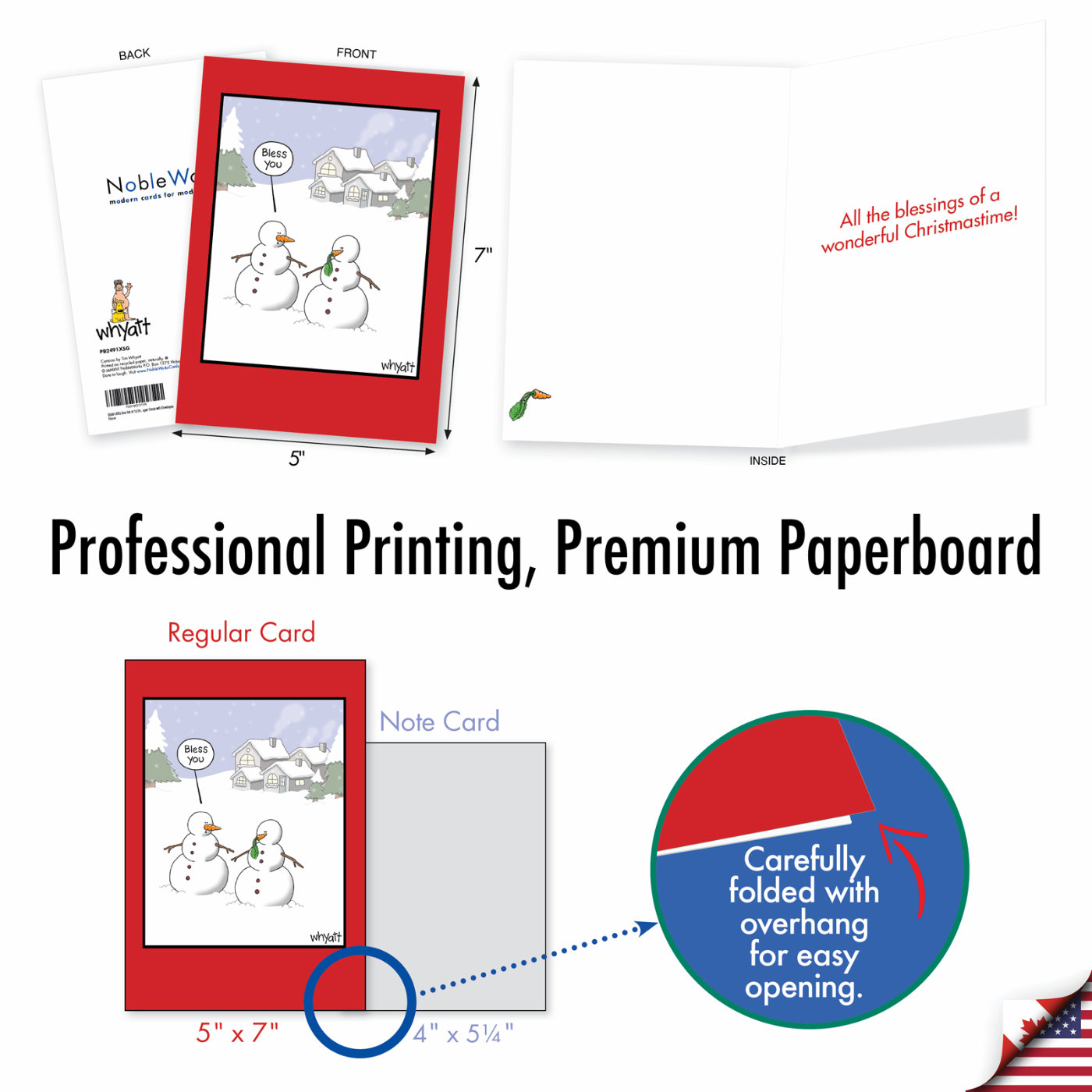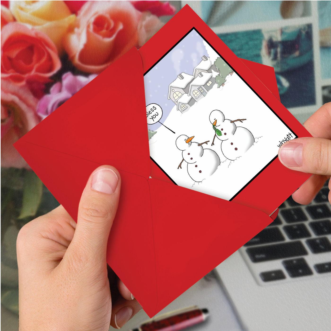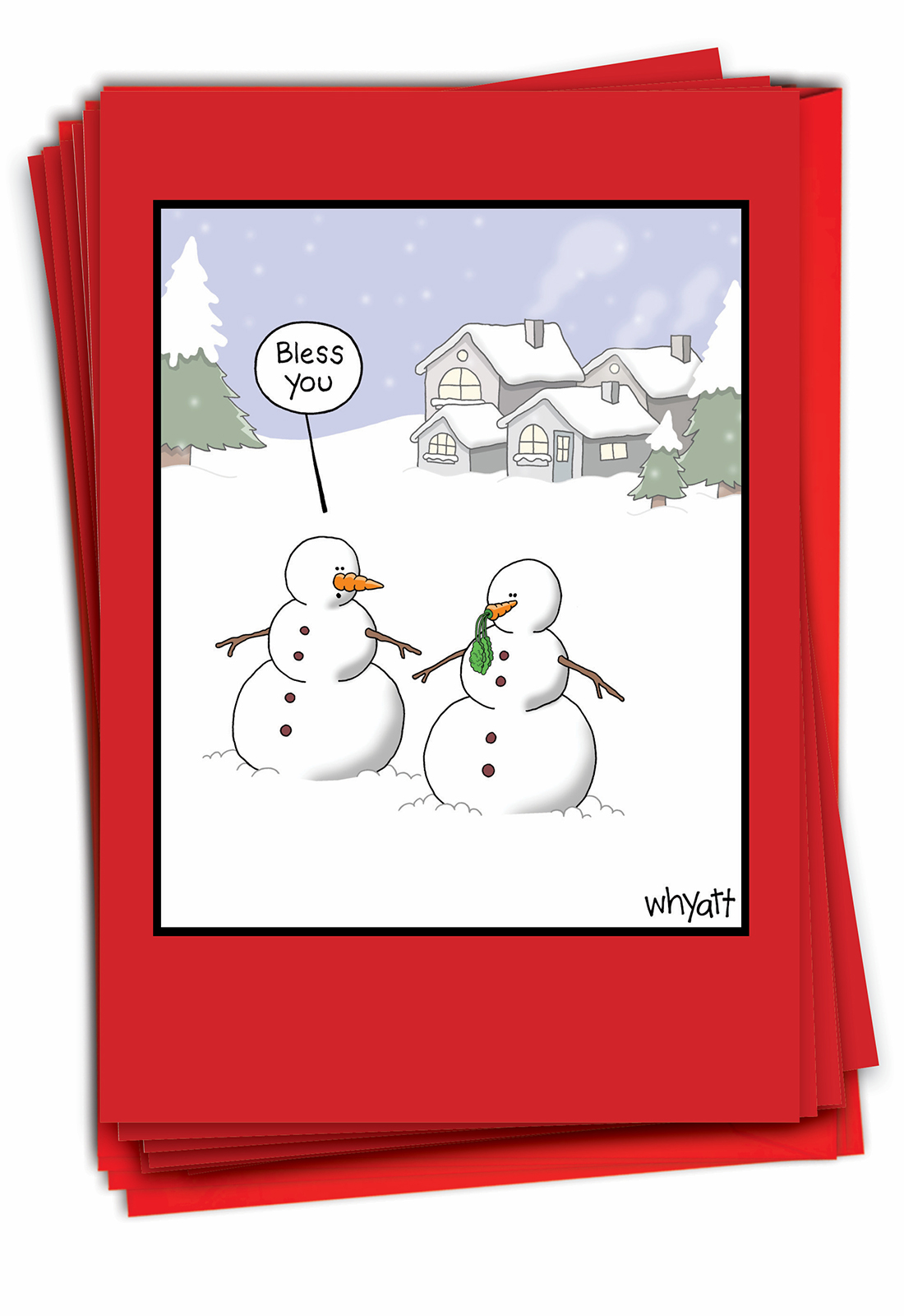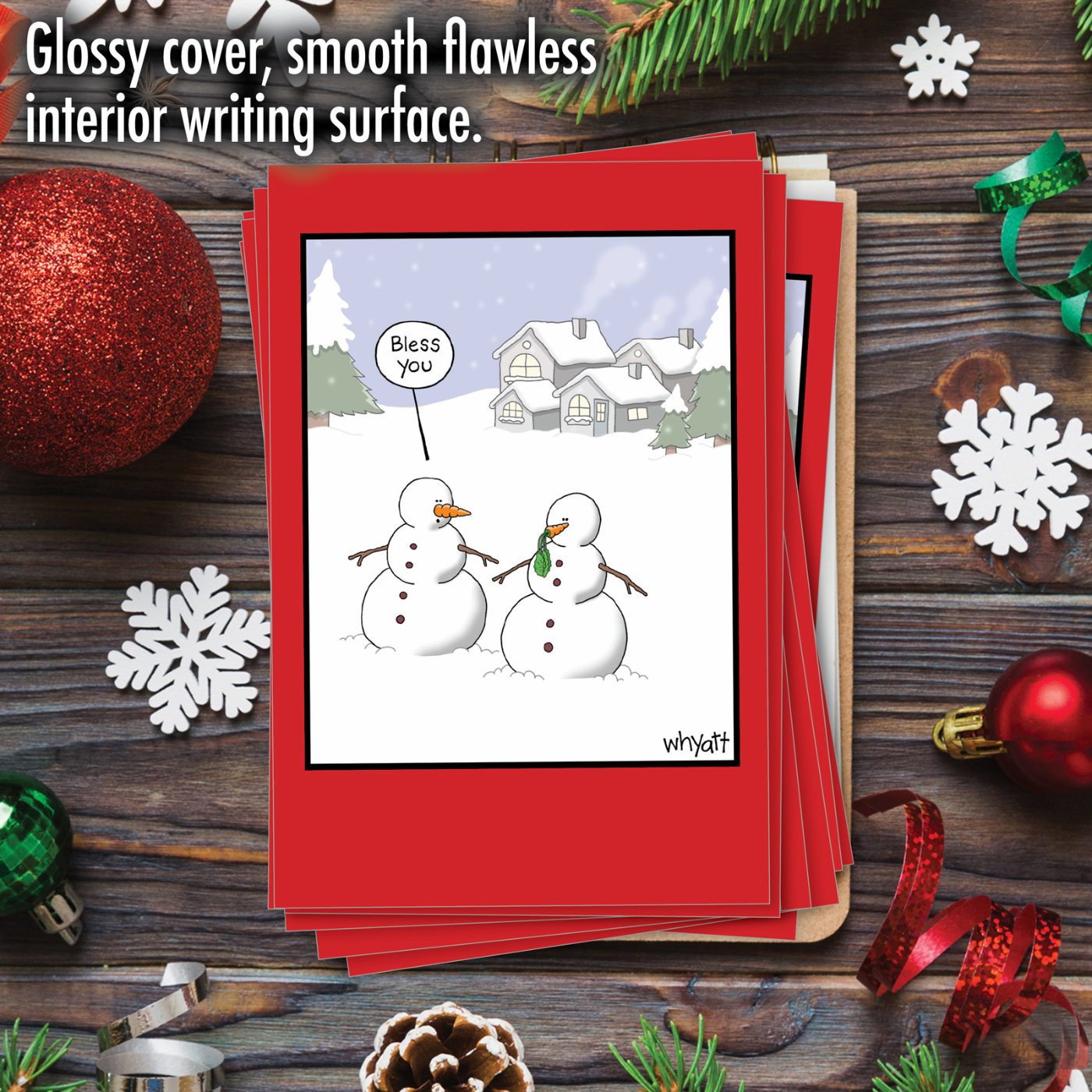 Snowman Sneeze - Funny Christmas Box of 12 Cards, Wholesale