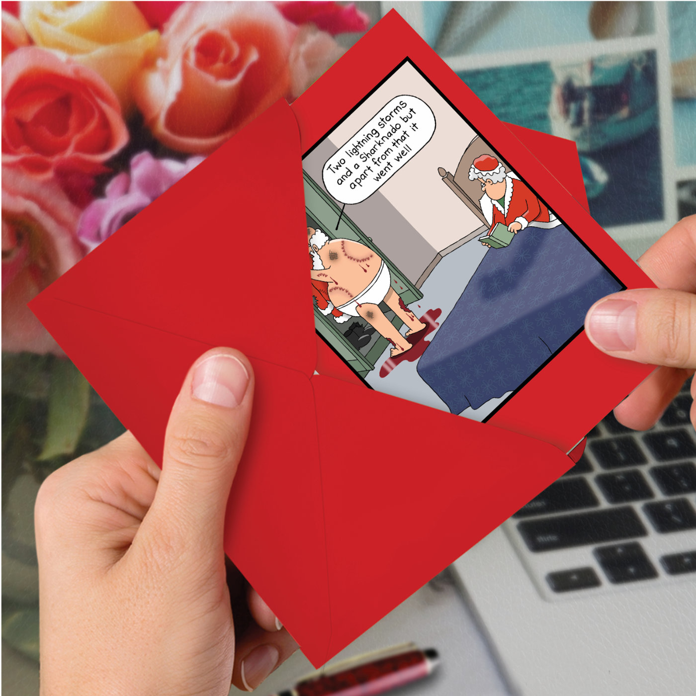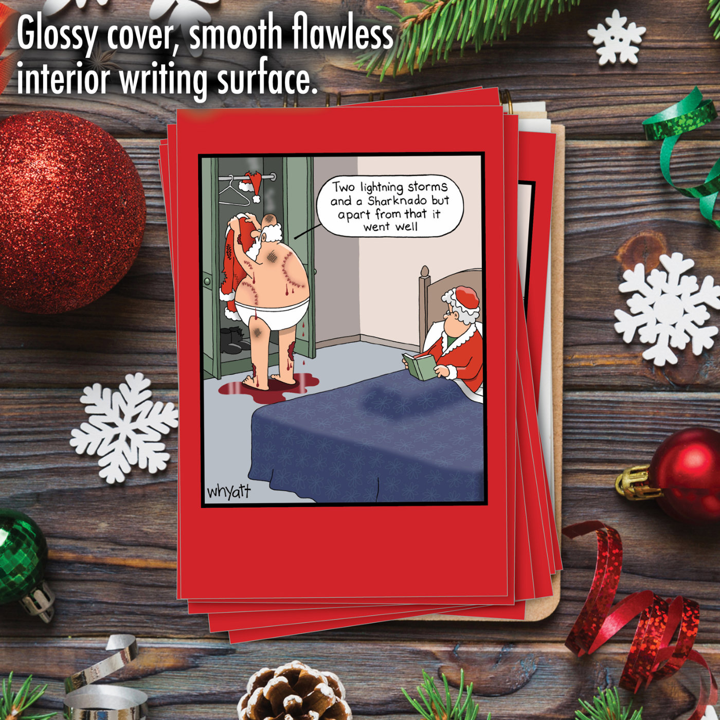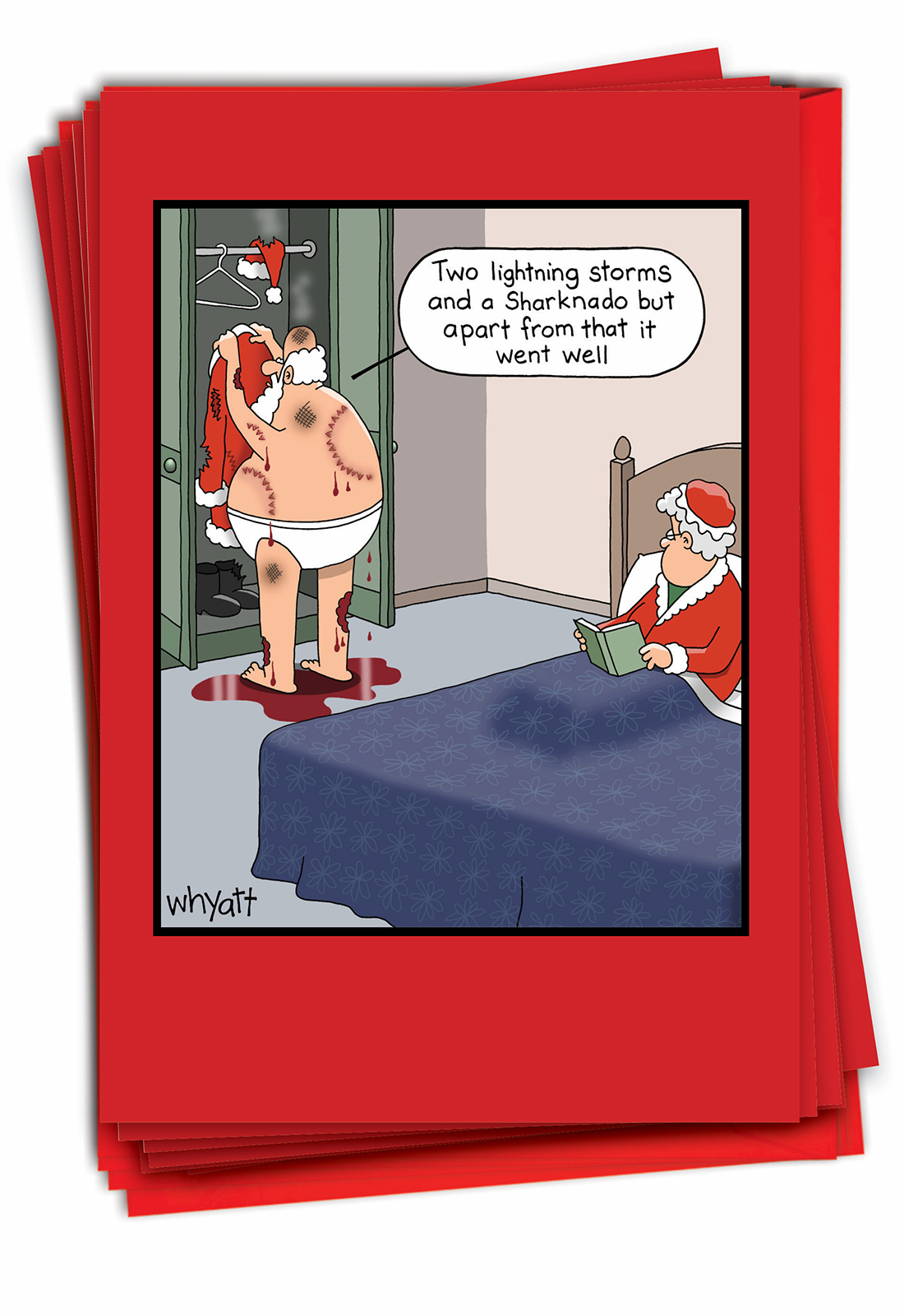 Santa Sharknado - Humorous Christmas Box of 12 Cards, Wholesale