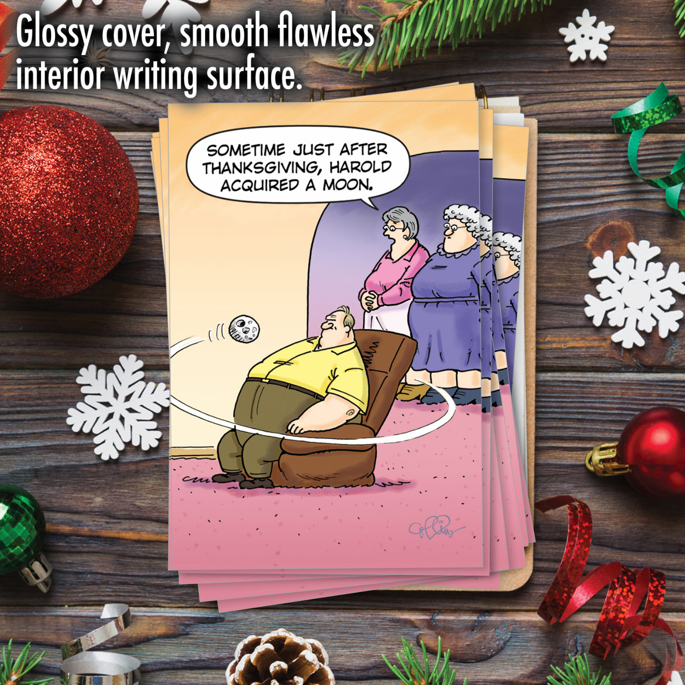 Harold's Moon - Humorous Happy Holiday Box of 12 Cards, Wholesale