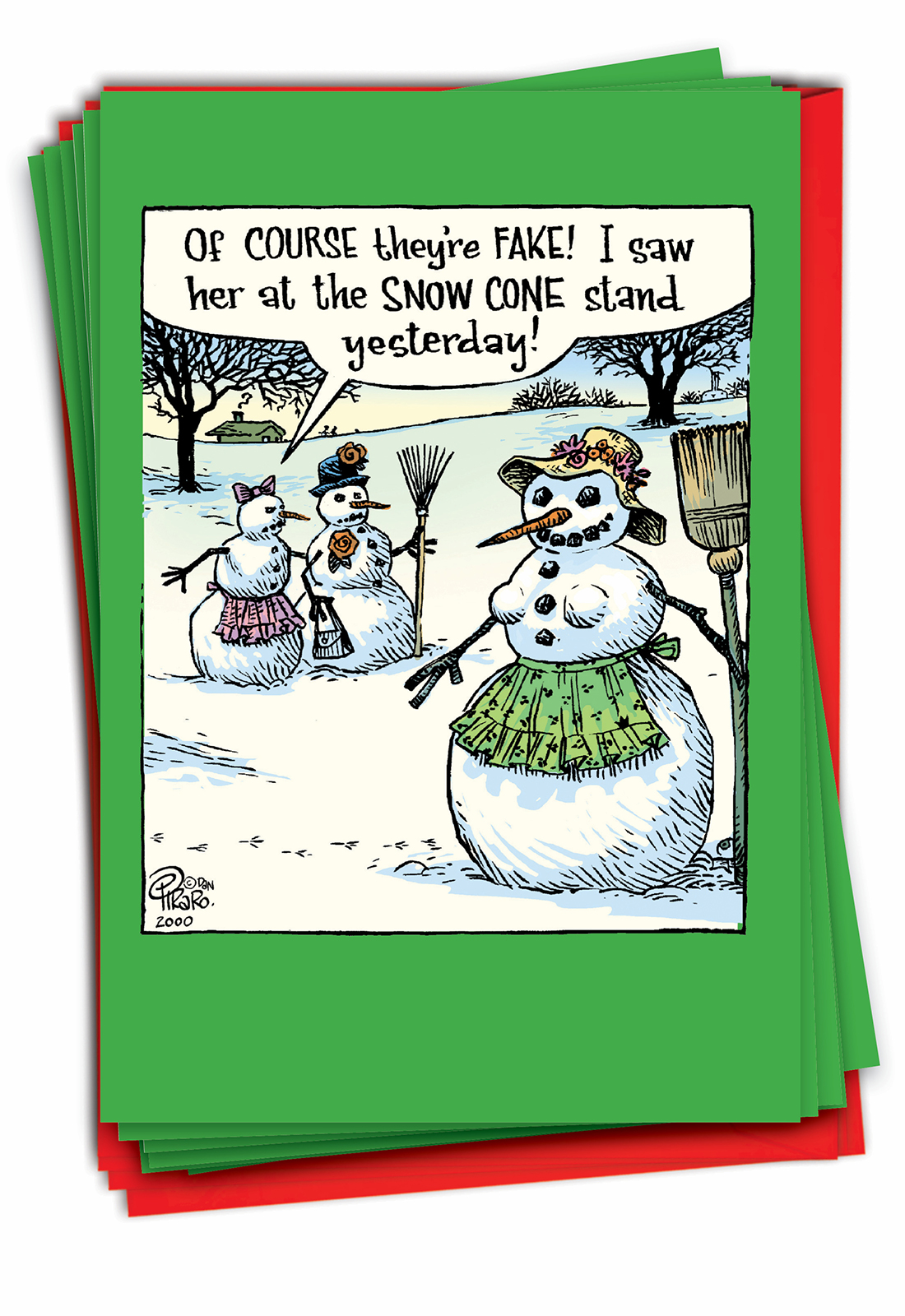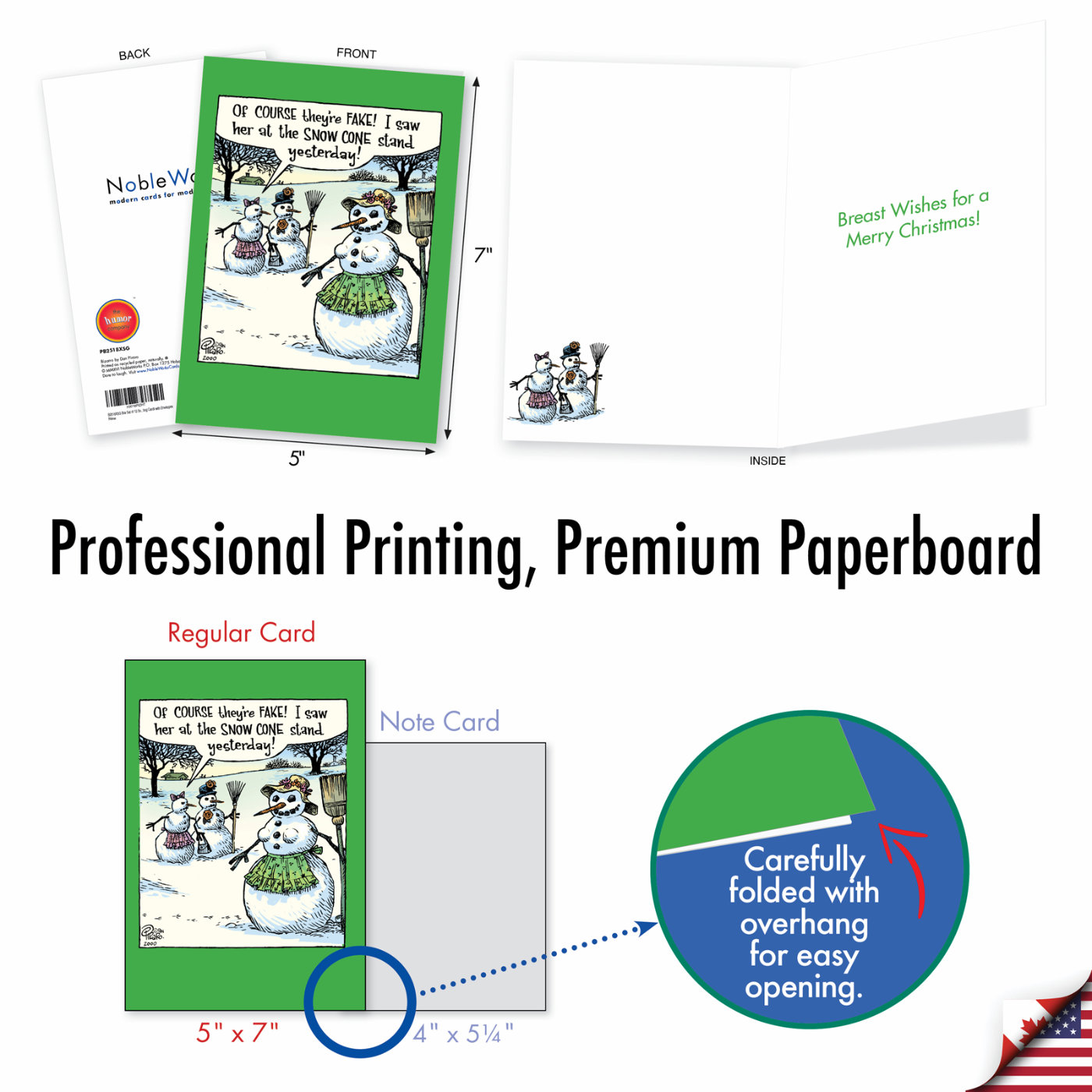 Snowman Fake Boobs - Humorous Christmas Box of 12 Cards, Wholesale