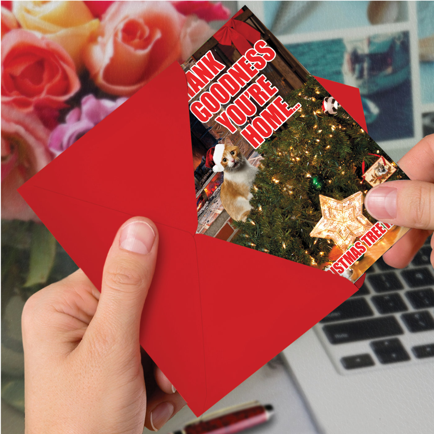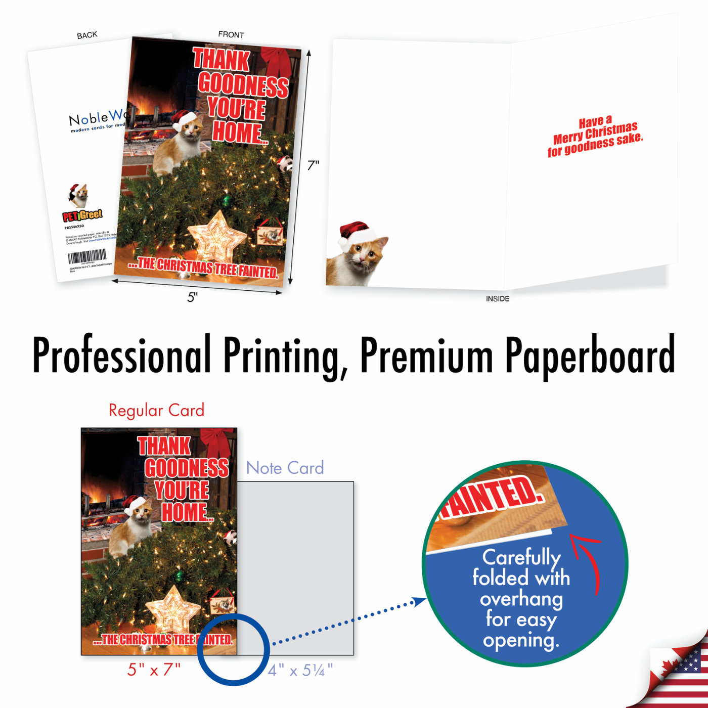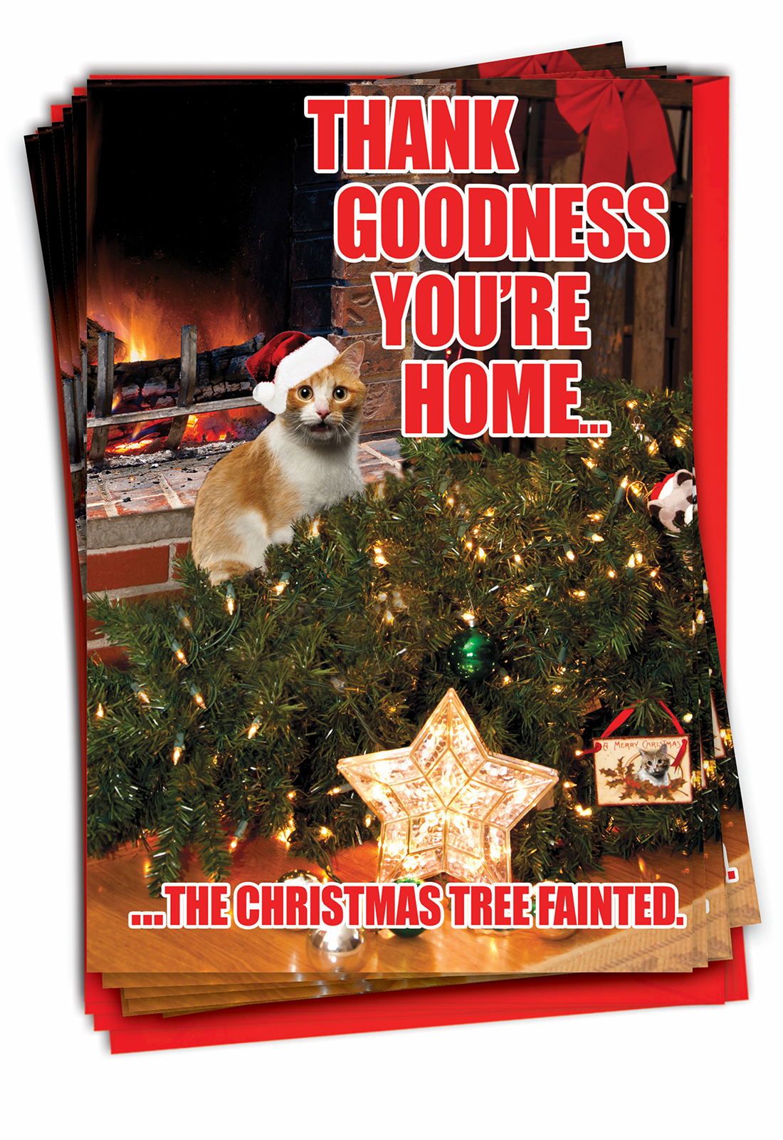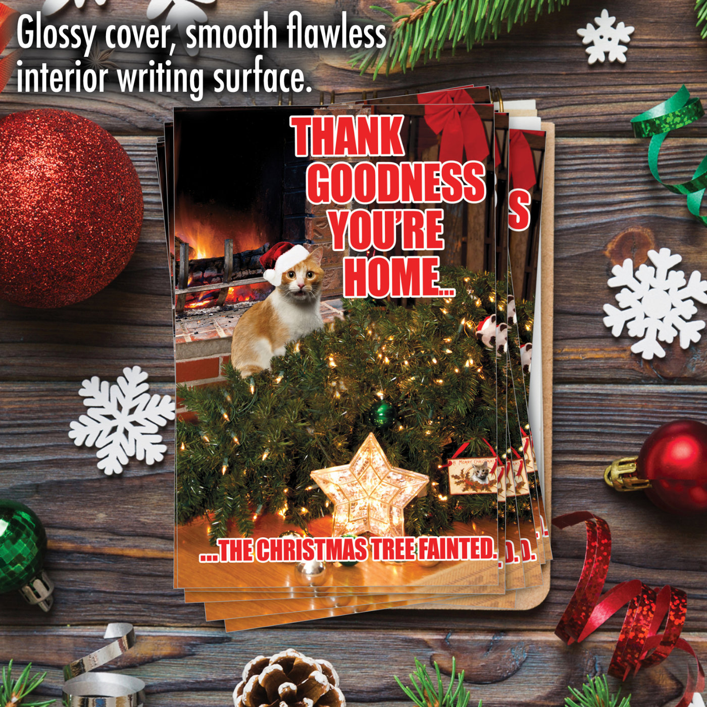 Tree Fainted-Cat - Hilarious Christmas Box of 12 Cards, Wholesale