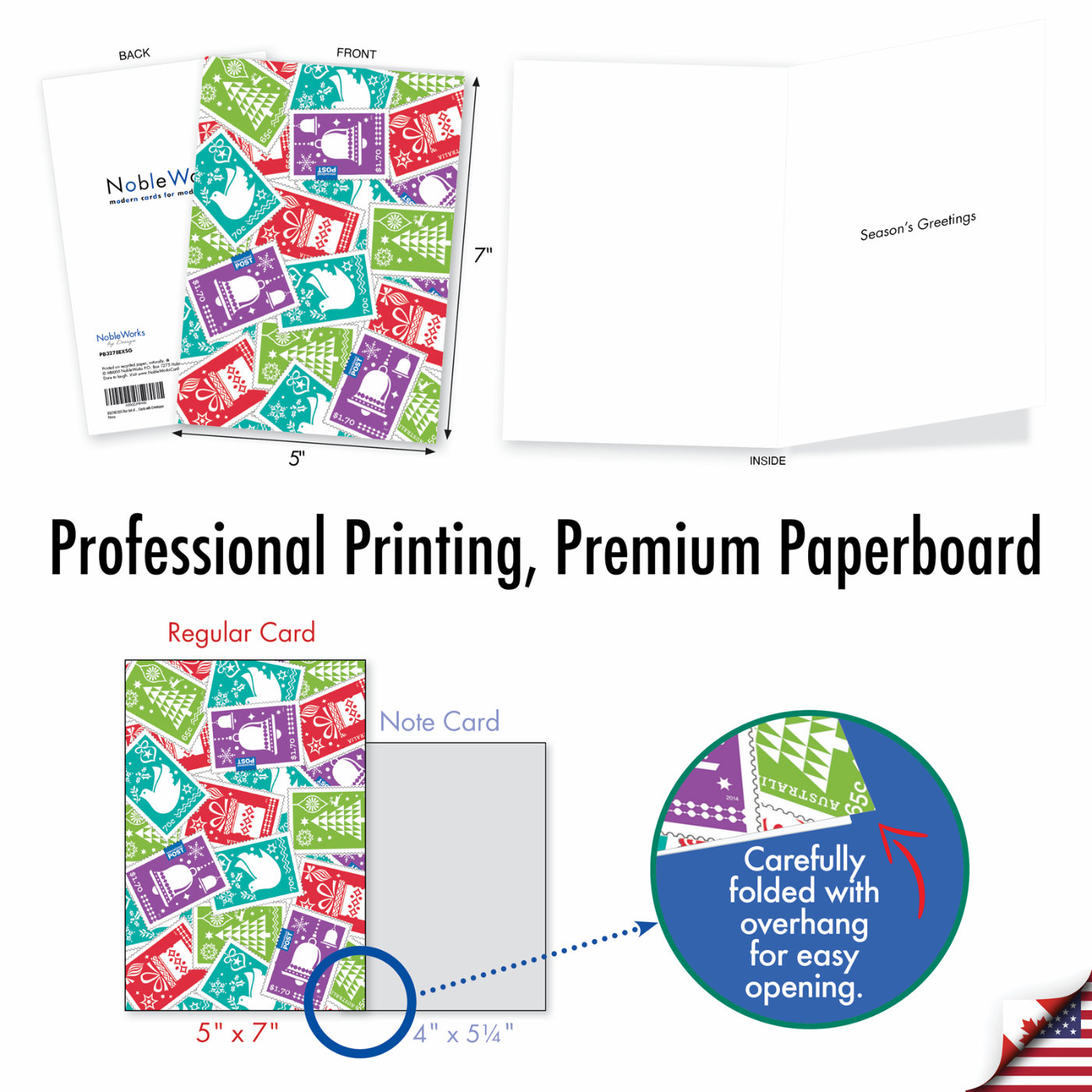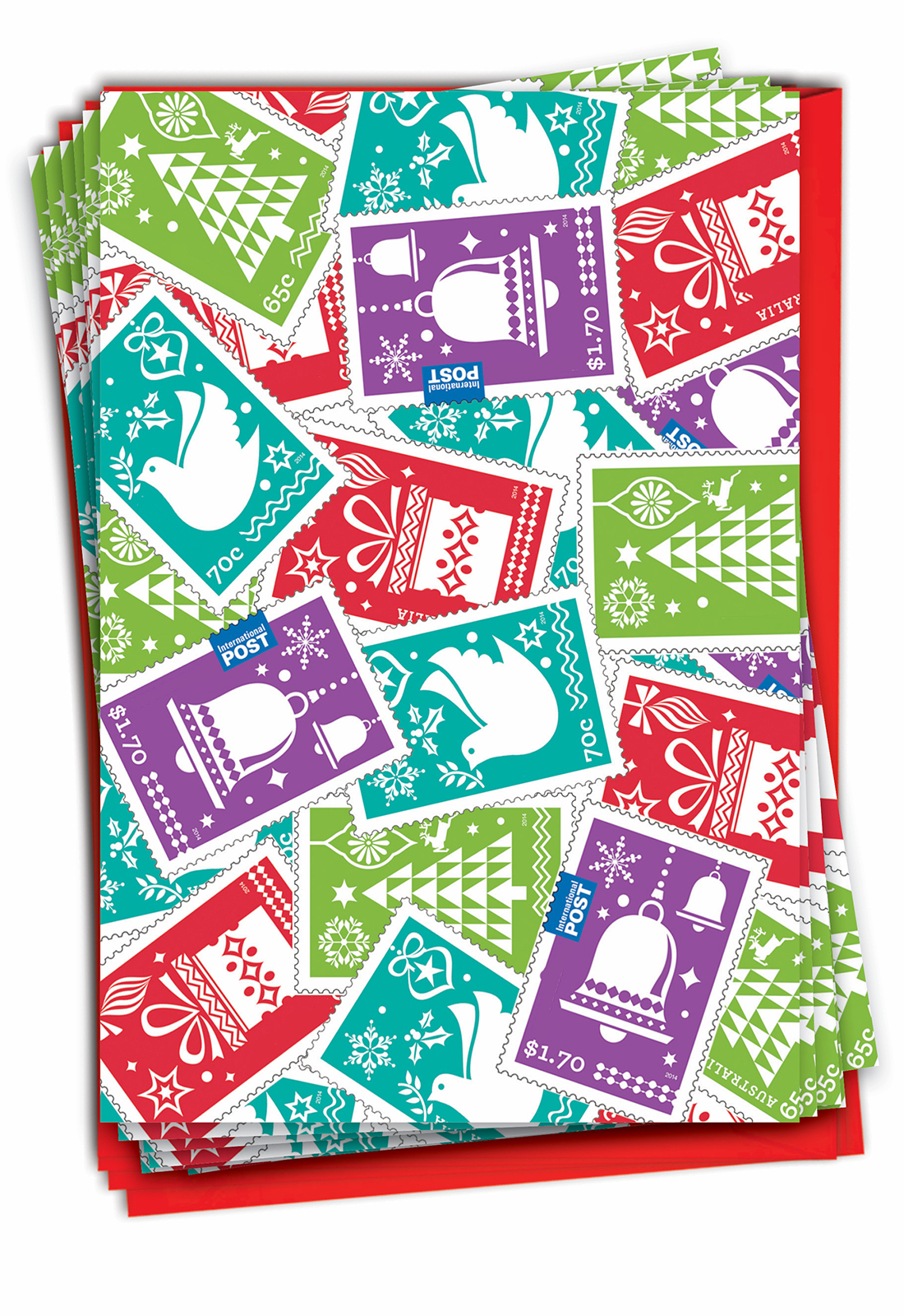 Stamps of the Season - Artful Christmas Box of 12 Cards, Wholesale