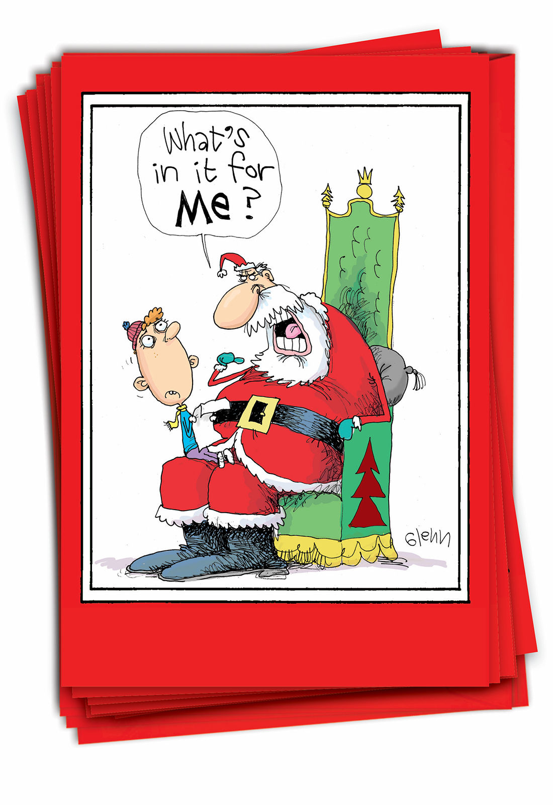 Whats In It For Me - Humorous Christmas Box of 12 Cards, Wholesale