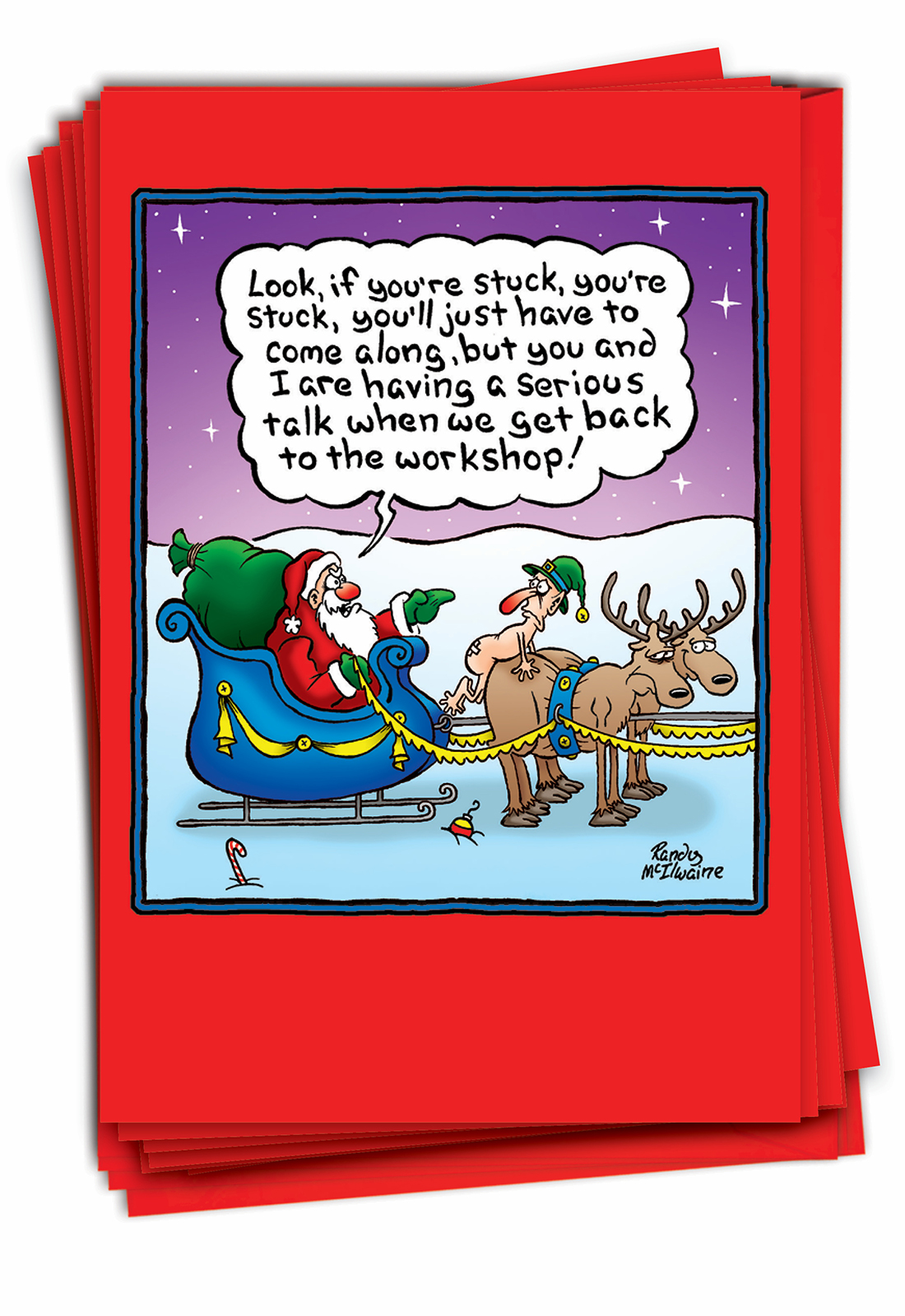 Stuck Elf - Hilarious Christmas Box of 12 Cards, Wholesale
