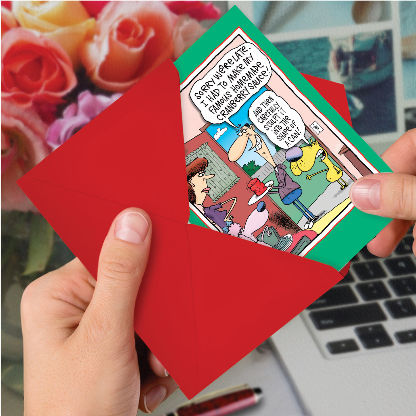 Sorry We're Late. I Had To Make My Famous Homemade Cranberry Sauce! And Then Carefully Sculpt It Into The Shape Of A Can!