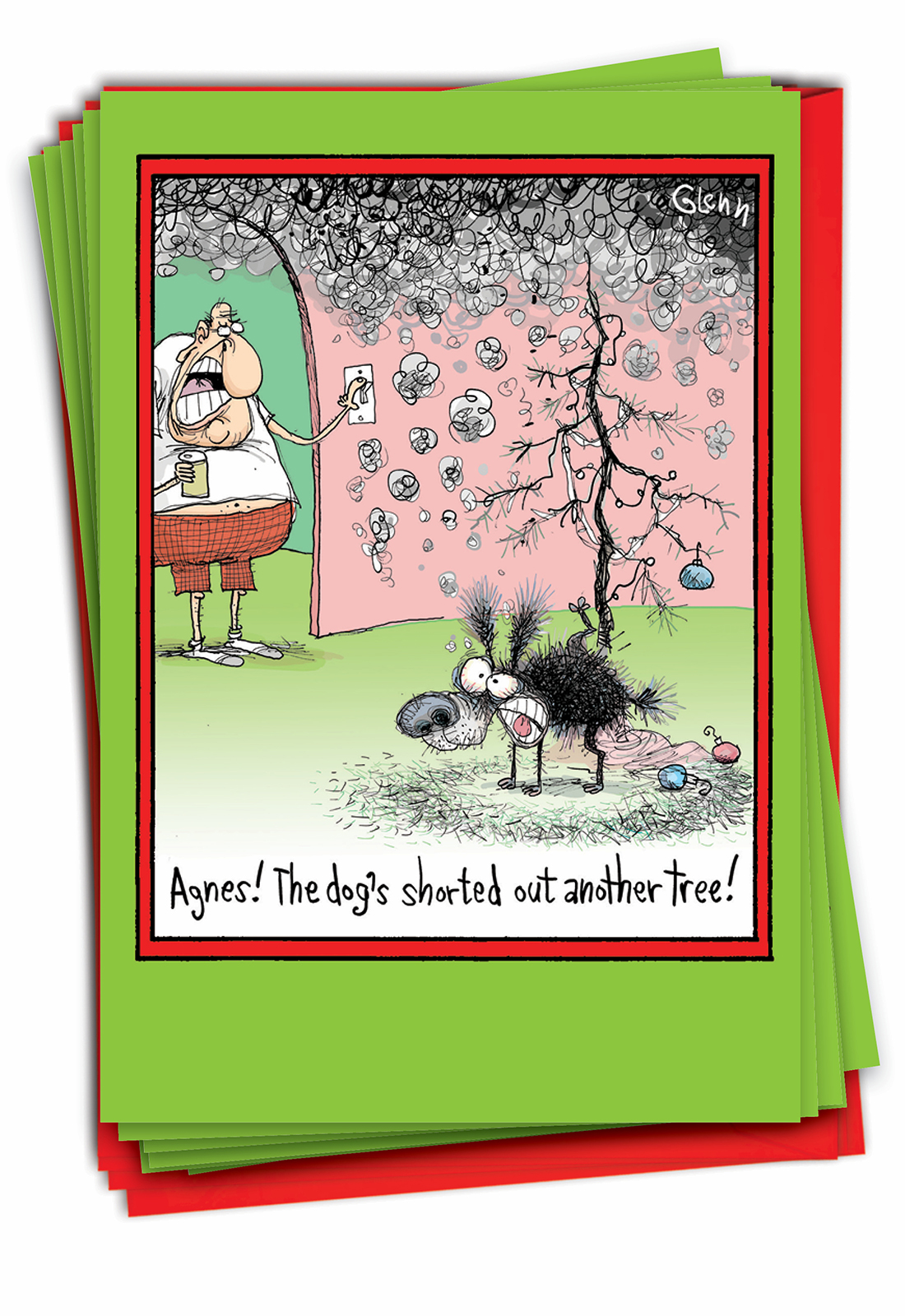 Dog Peed Tree - Hilarious Christmas Box of 12 Cards, Wholesale
