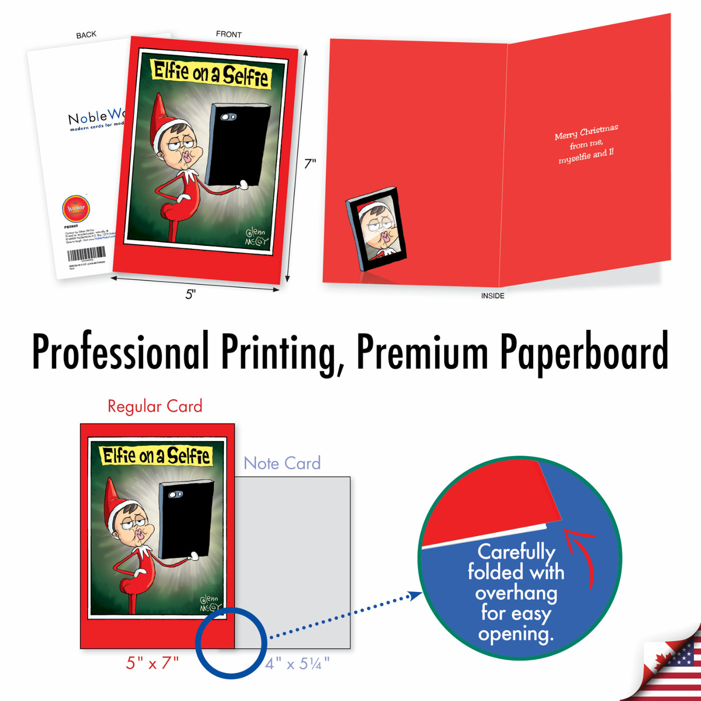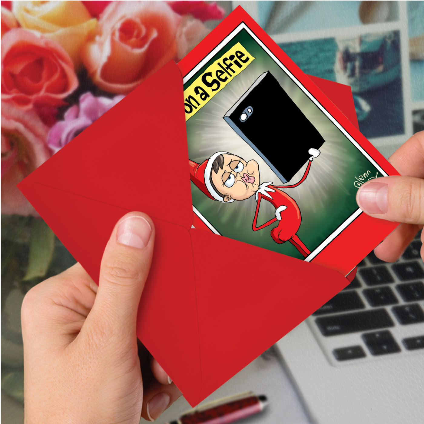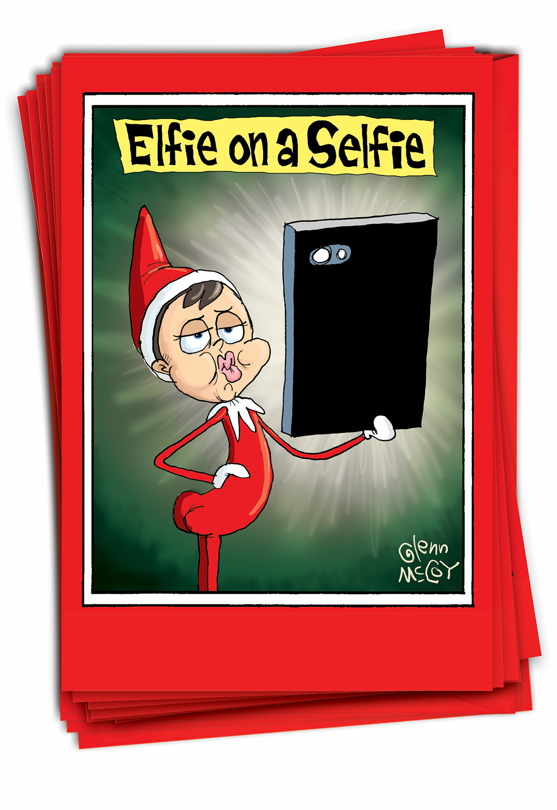 Elfie on a Selfie - Funny Christmas Box of 12 Cards, Wholesale
