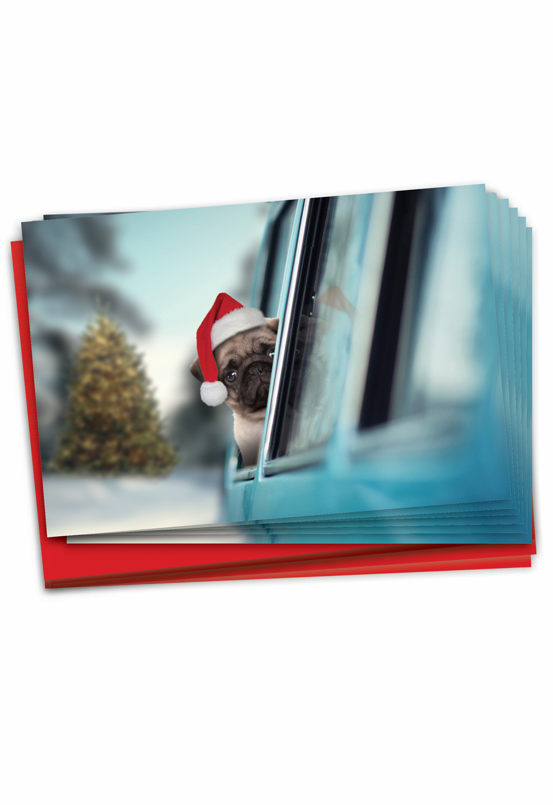 Holiday Doggie in the Window - Artistic Christmas Box of 12 Cards, Wholesale