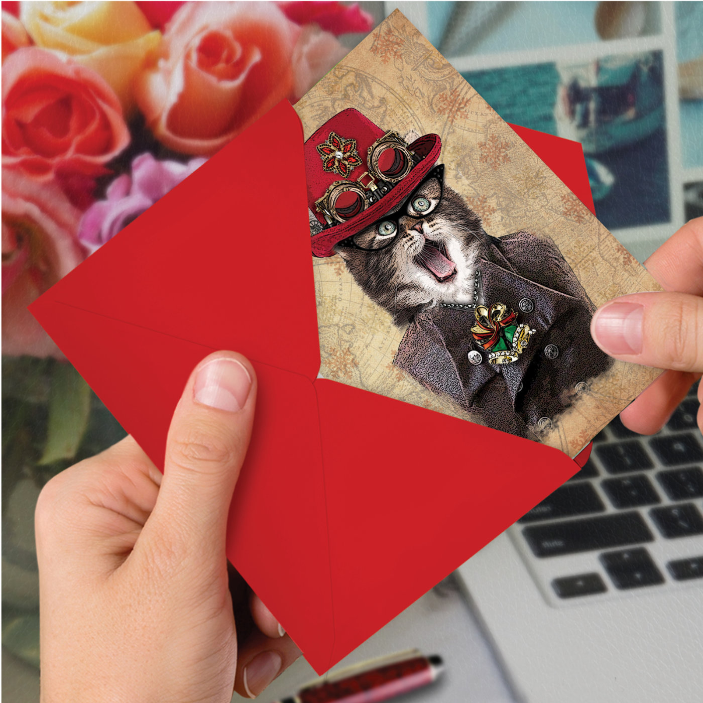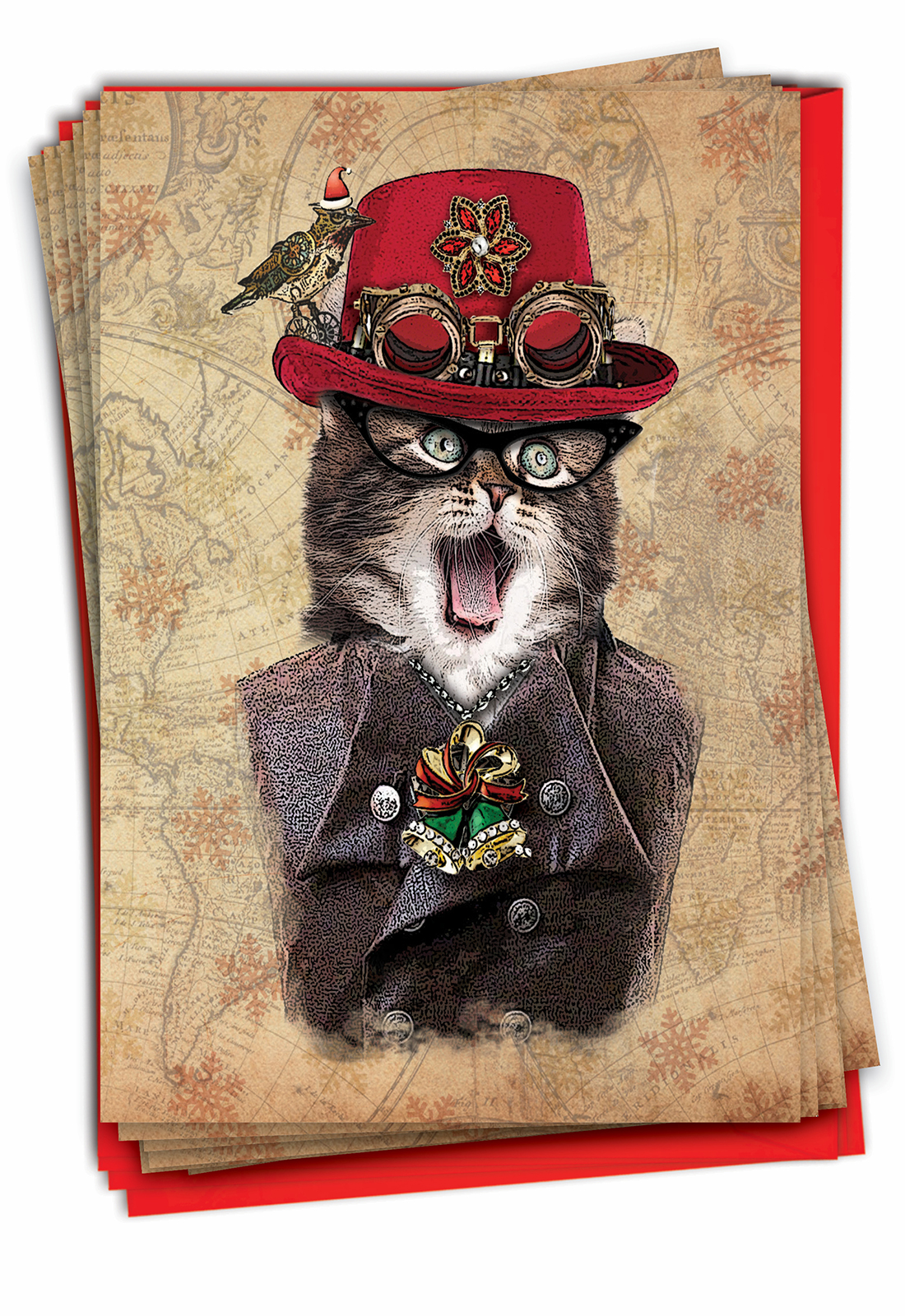 Steampunk Cats - Artful Christmas Box of 12 Cards, Wholesale