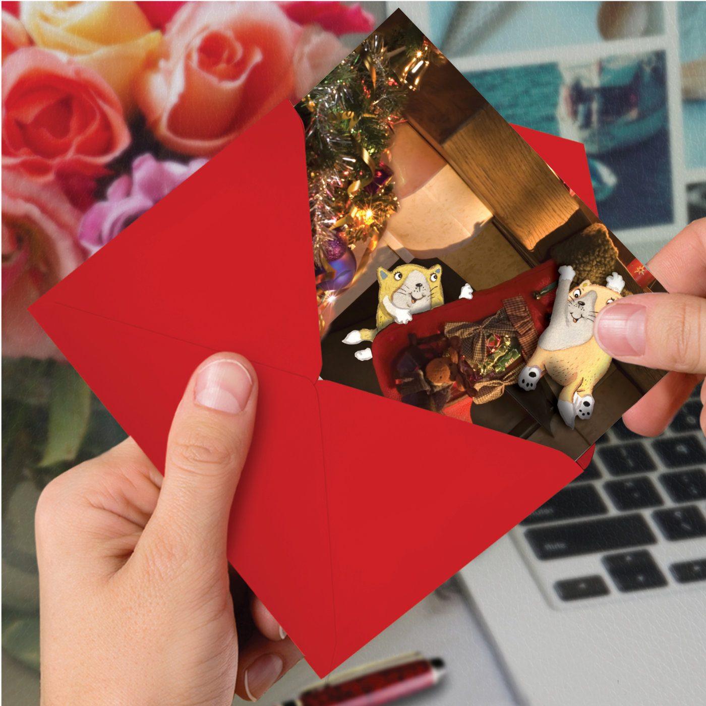 Holiday Fuzzy Tummies - Artistic Christmas Box of 12 Cards, Wholesale
