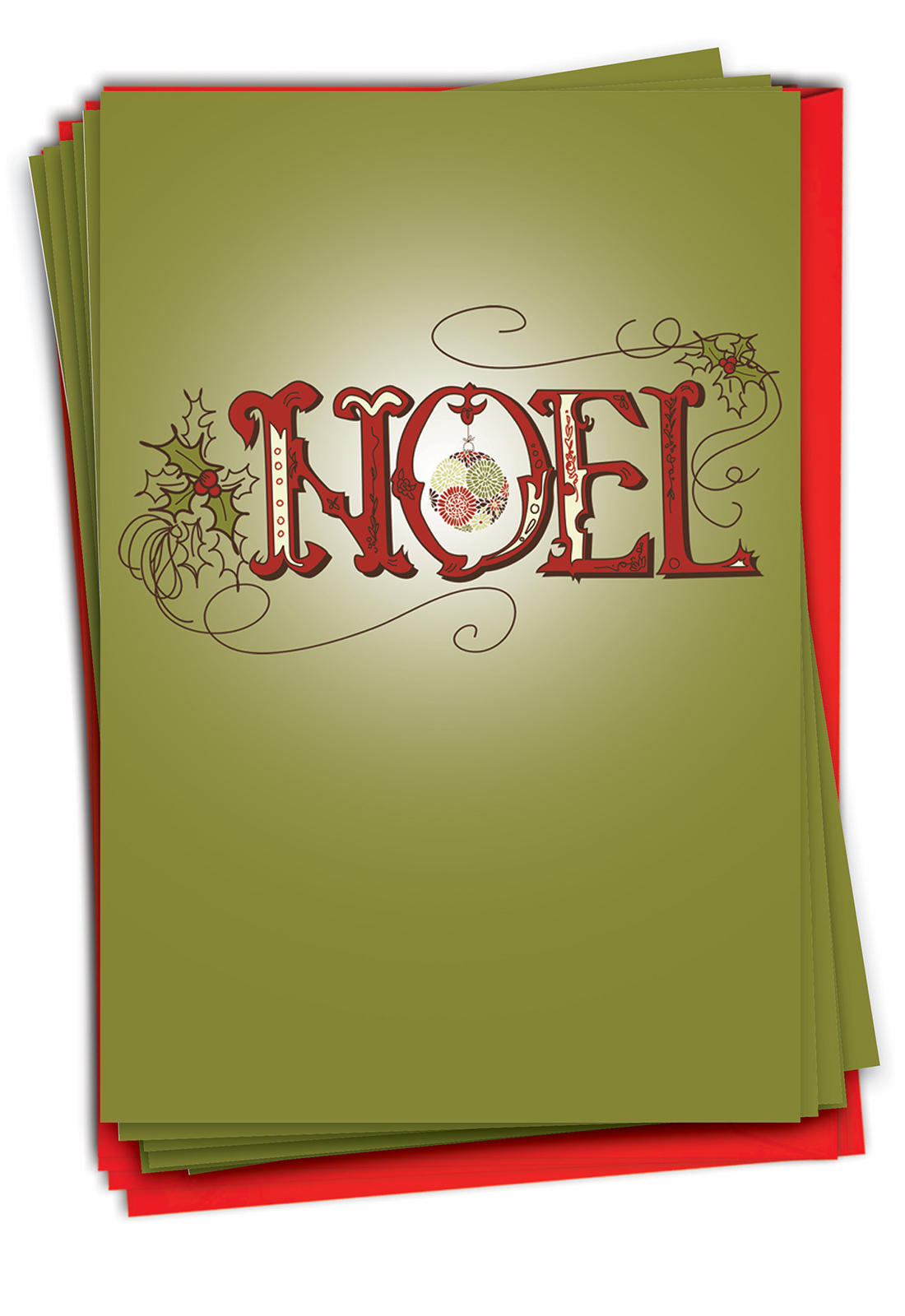 Avocado Green Christmas - Artistic Christmas Box of 12 Cards, Wholesale