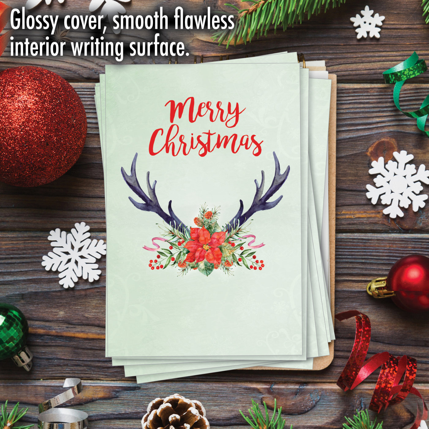 Floral Horns - Artful Seasons Greetings Box of 12 Cards, Wholesale