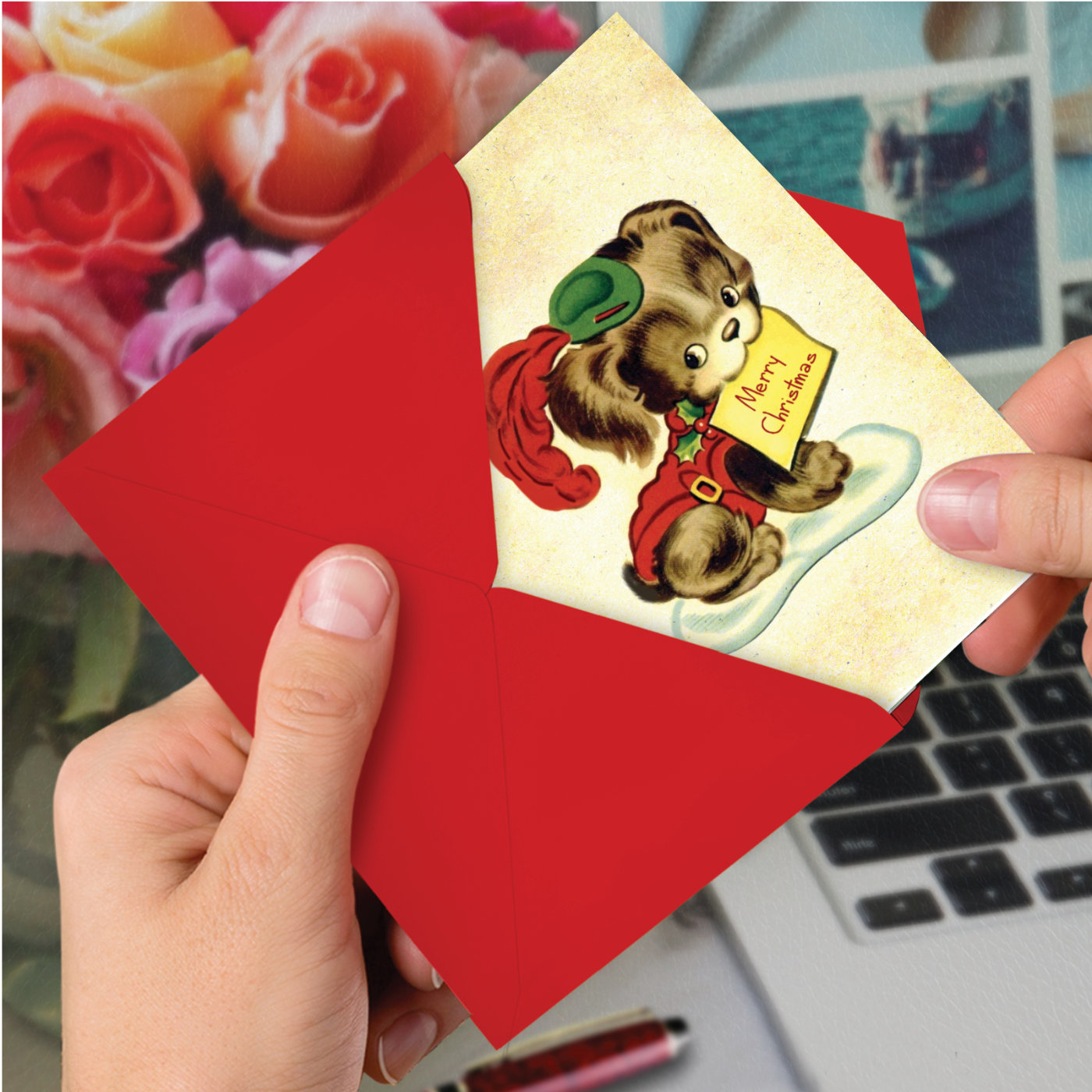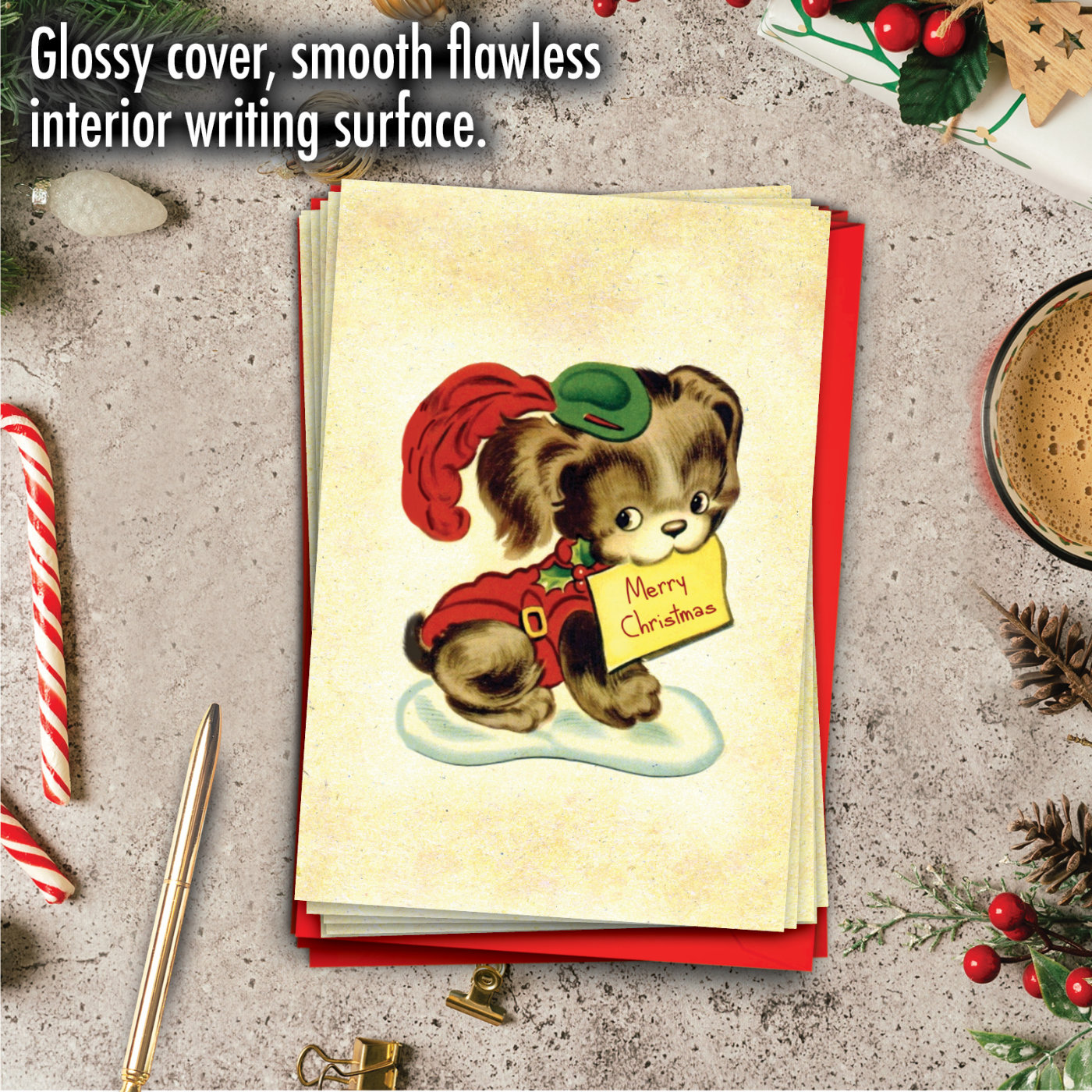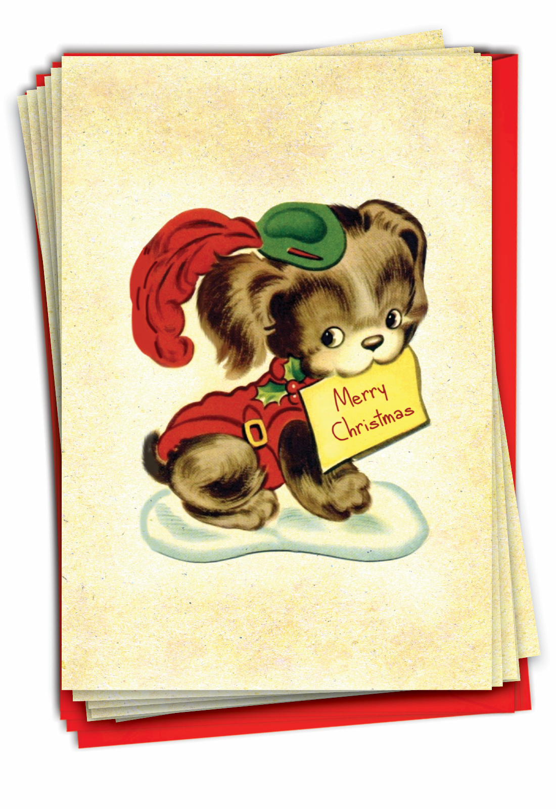 Vintage Holiday Animals - Puppy - Artistic Merry Christmas Box of 12 Cards, Wholesale
