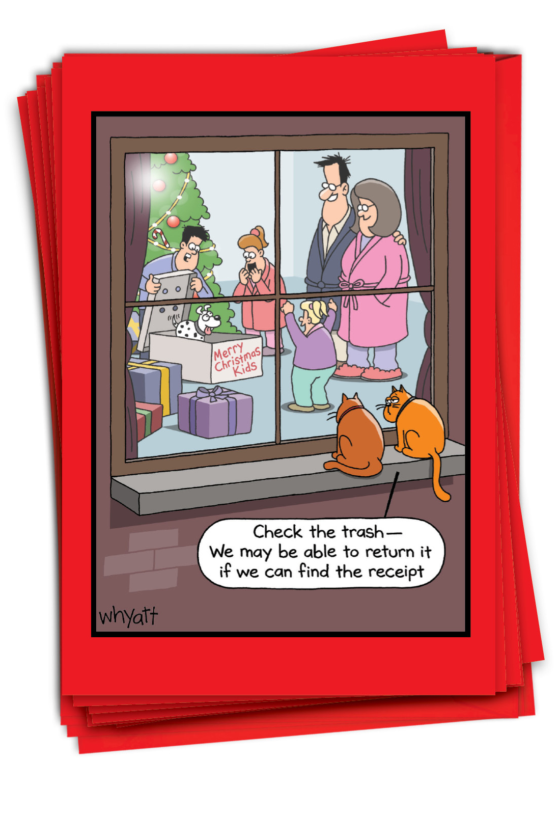 Check The Trash - Funny Merry Christmas Box of 12 Cards, Wholesale
