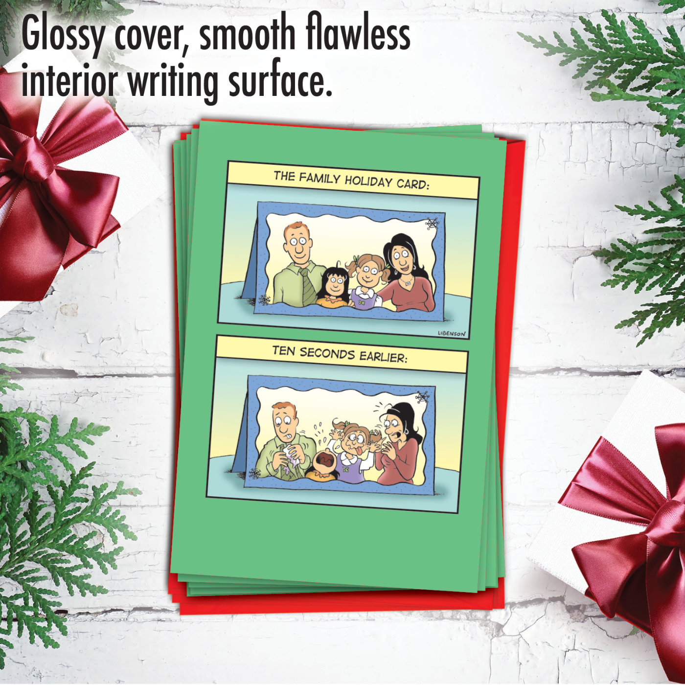 Holiday Family - Humorous Merry Christmas Box of 12 Cards, Wholesale