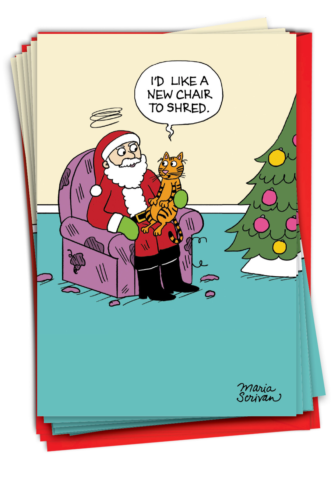 Chair Shred - Hilarious Merry Christmas Box of 12 Cards, Wholesale