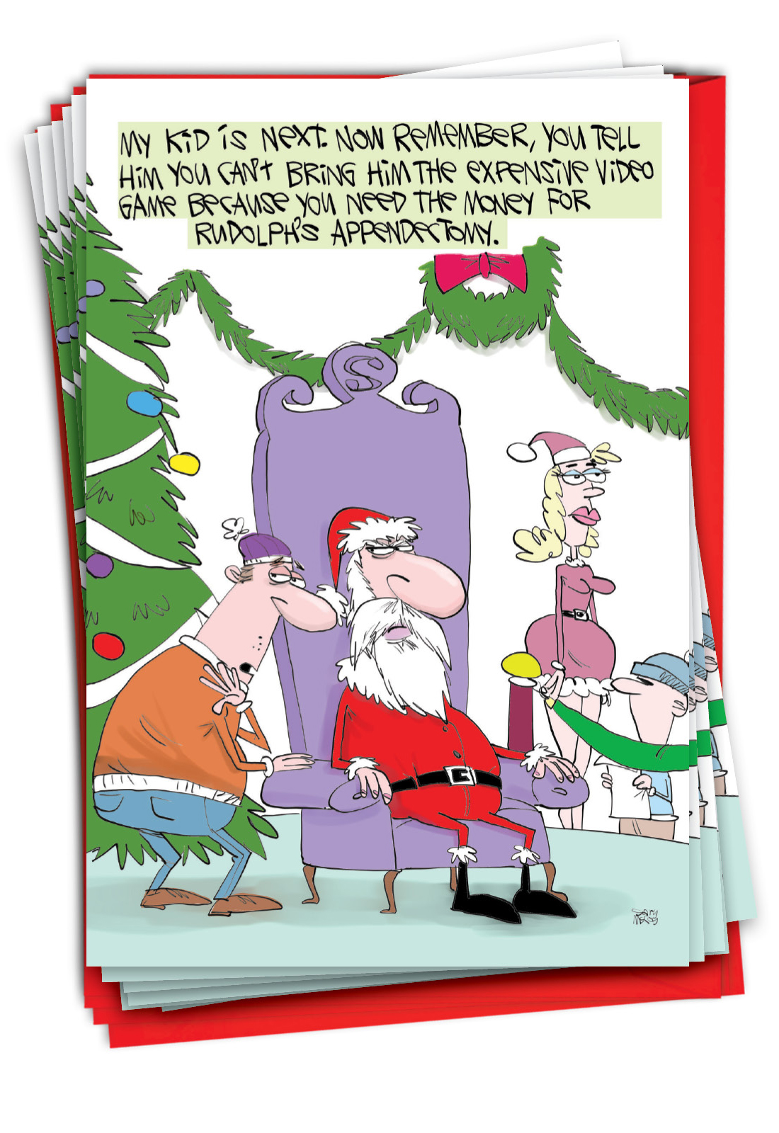 Reindeer Surgery - Humorous Merry Christmas Box of 12 Cards, Wholesale