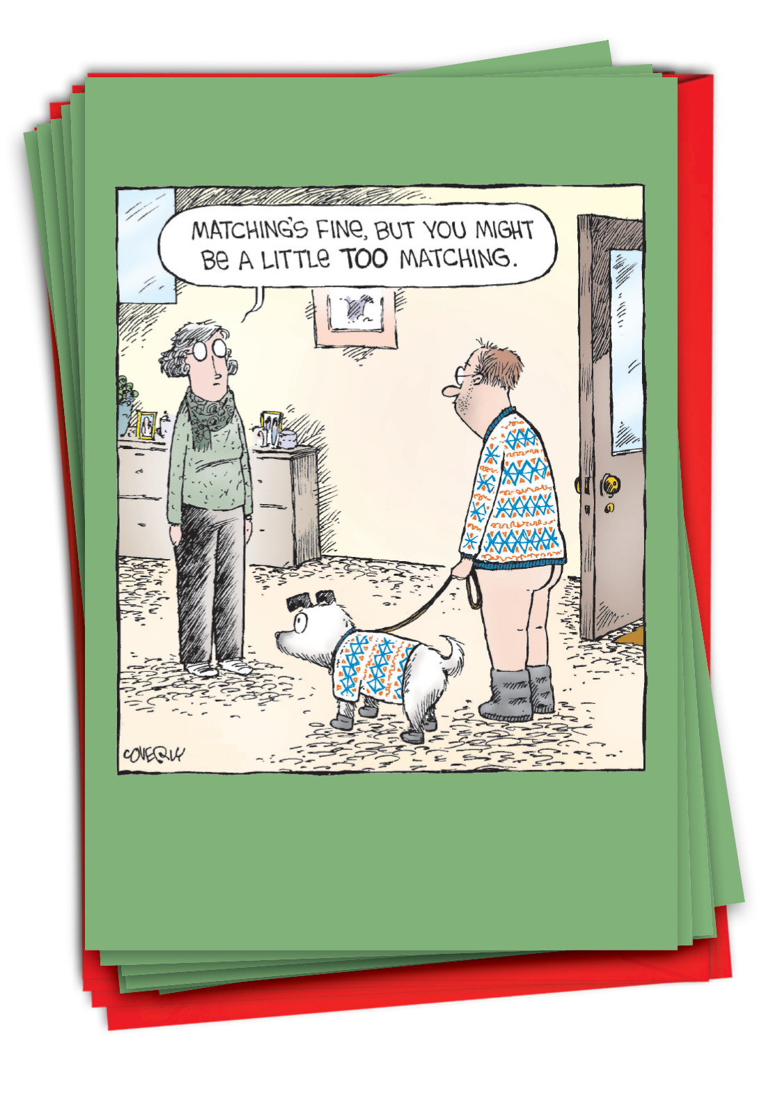 Too Matching - Humorous Merry Christmas Box of 12 Cards, Wholesale