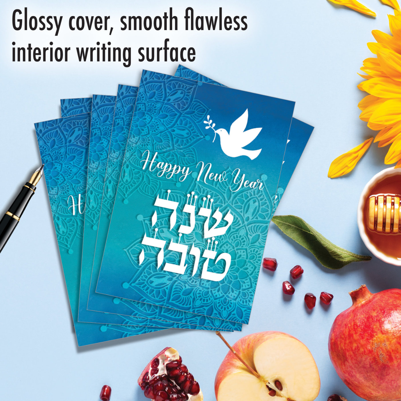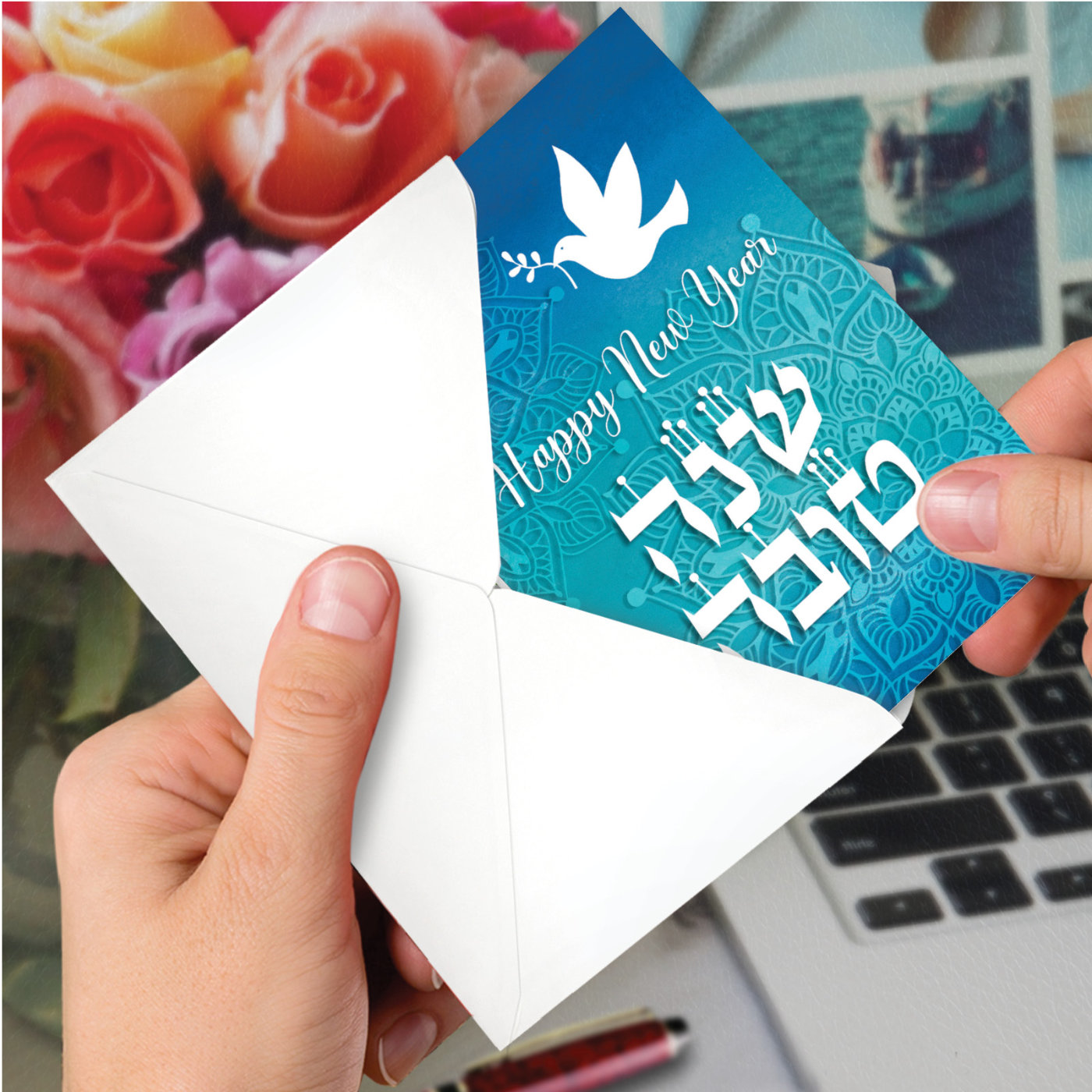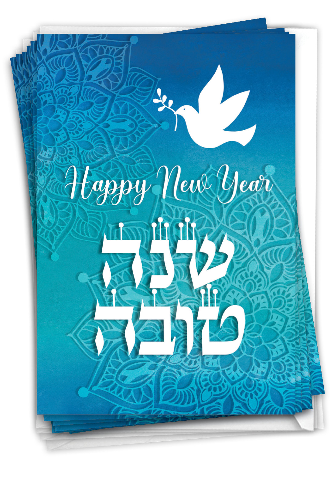 Shana Tova Symbols - Dove - Artful Rosh Hashanah Box of 12 Cards, Wholesale
