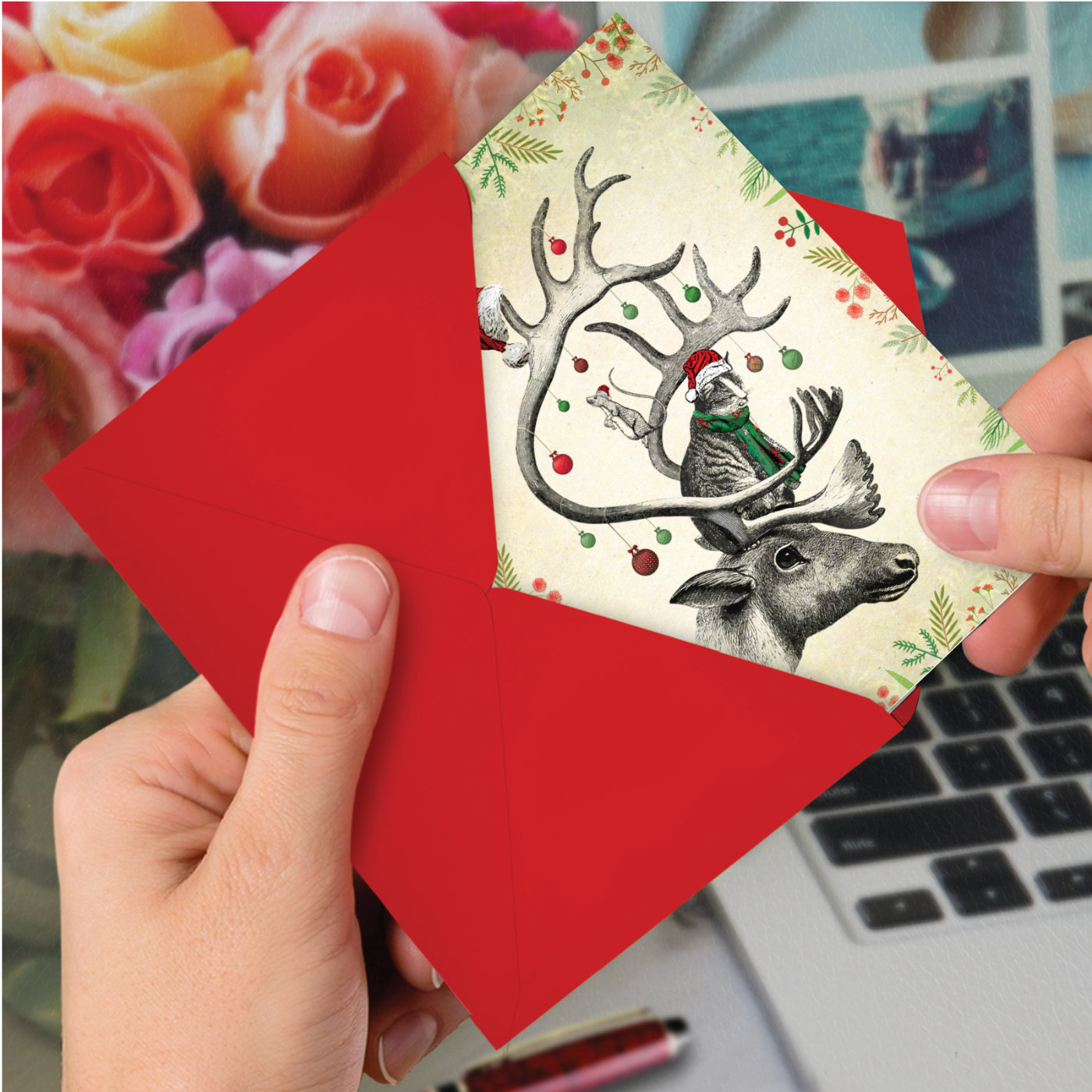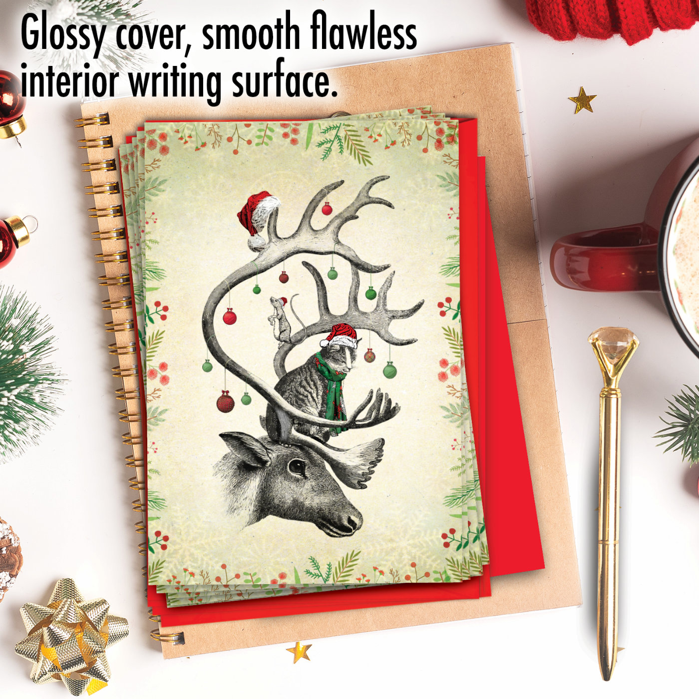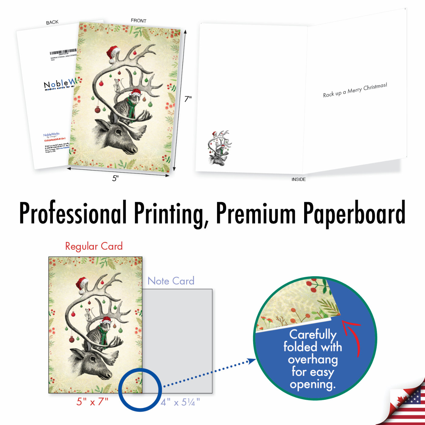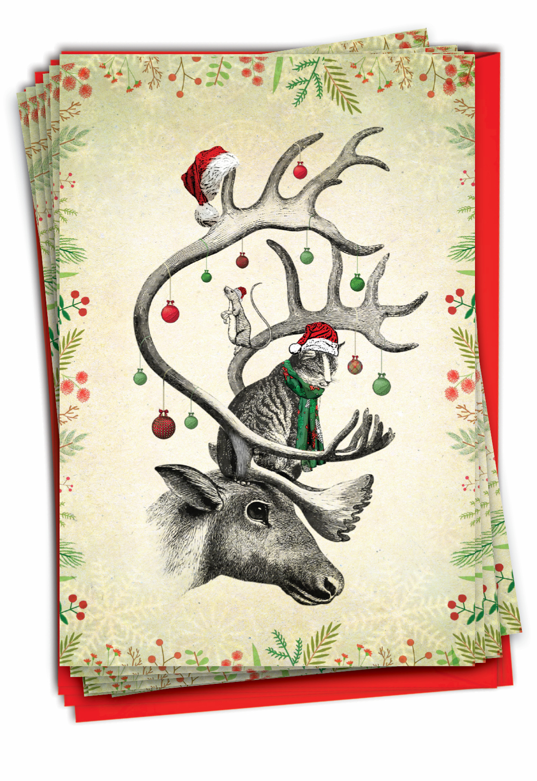 Vintage Farm Animals - Antlers - Artistic Merry Christmas Box of 12 Cards, Wholesale