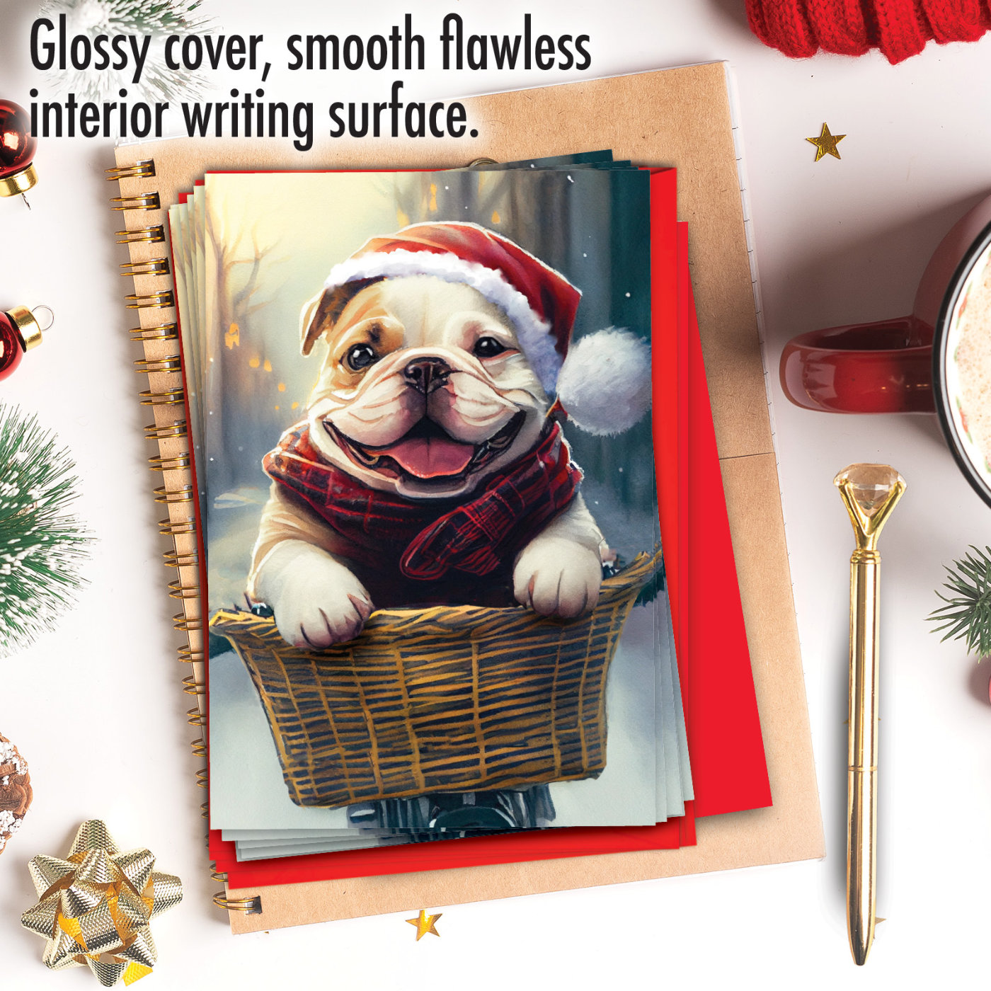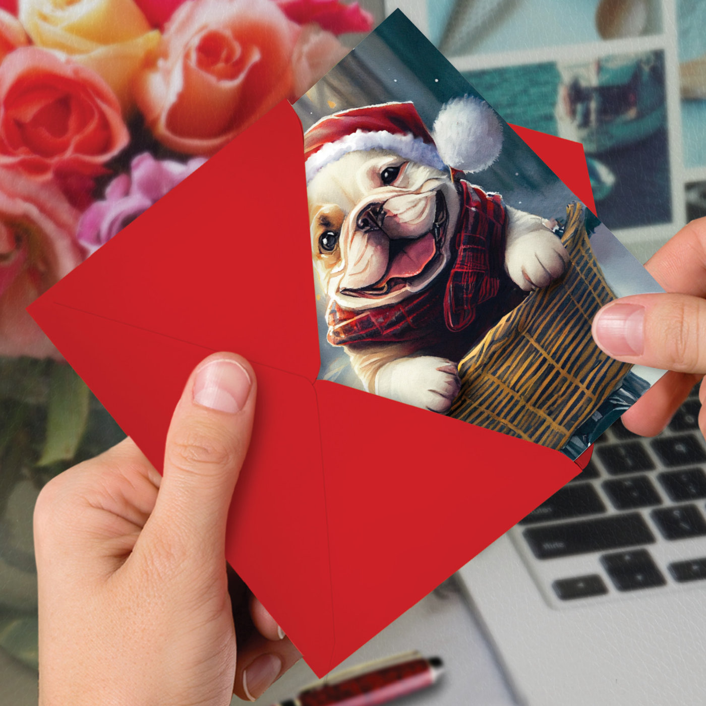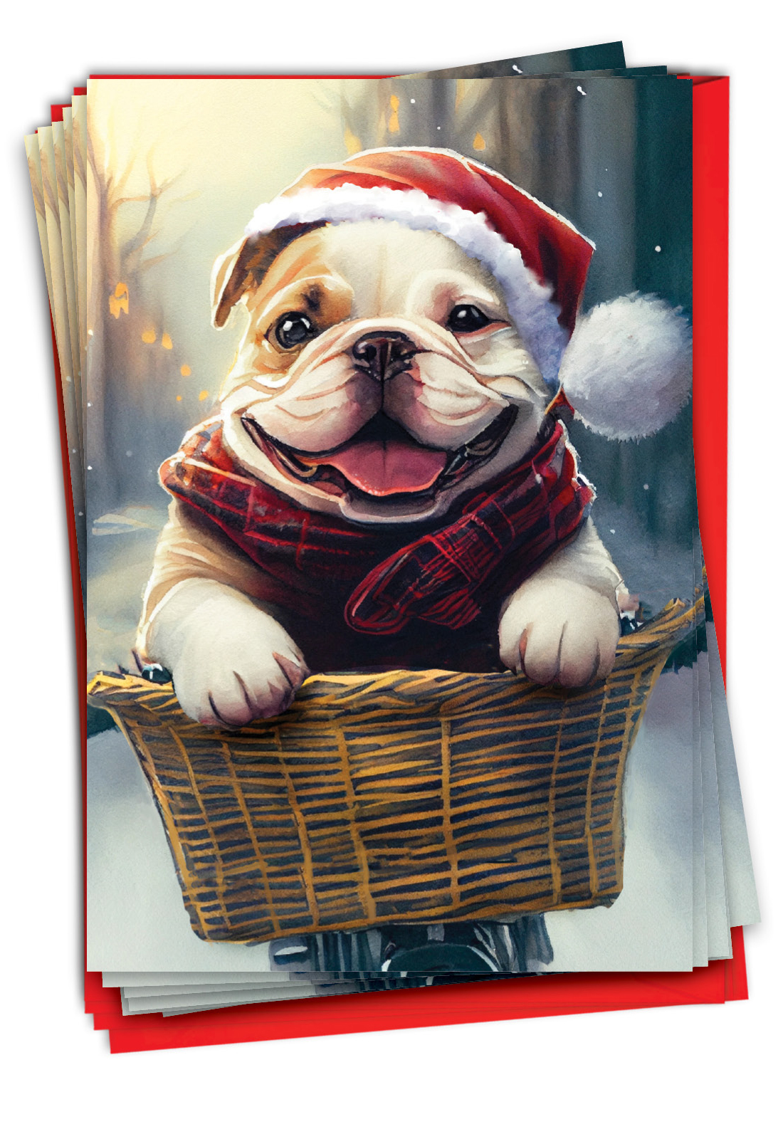 Santa Hat Puppies - Basket - Artistic Merry Christmas Box of 12 Cards, Wholesale