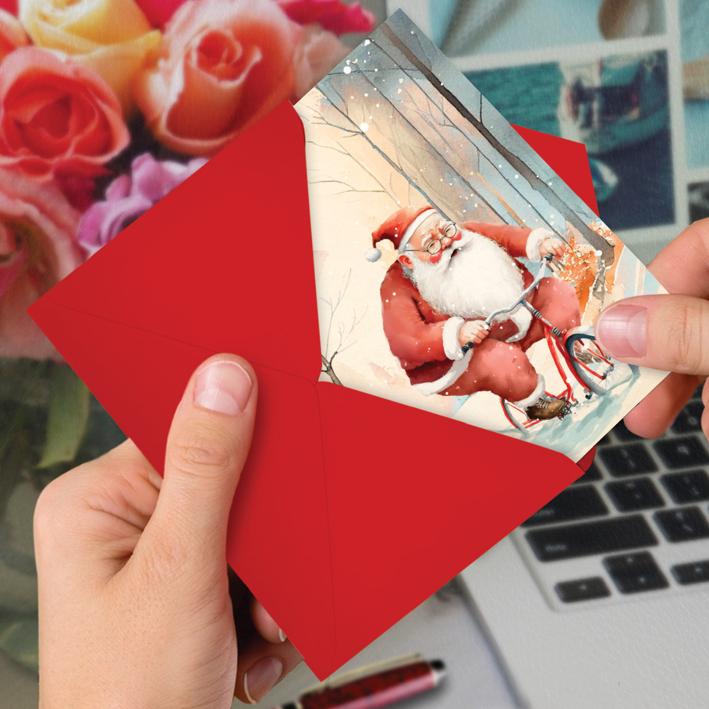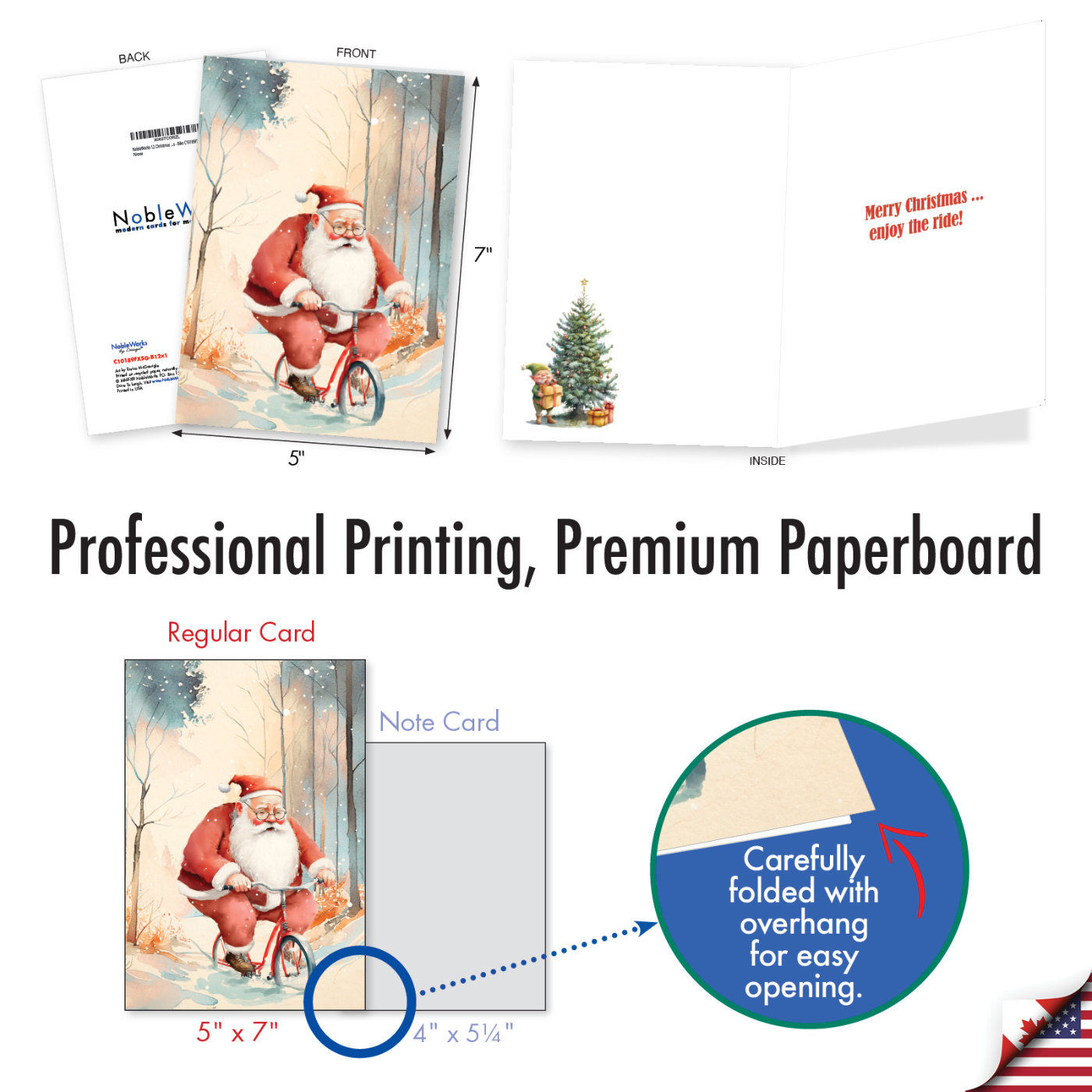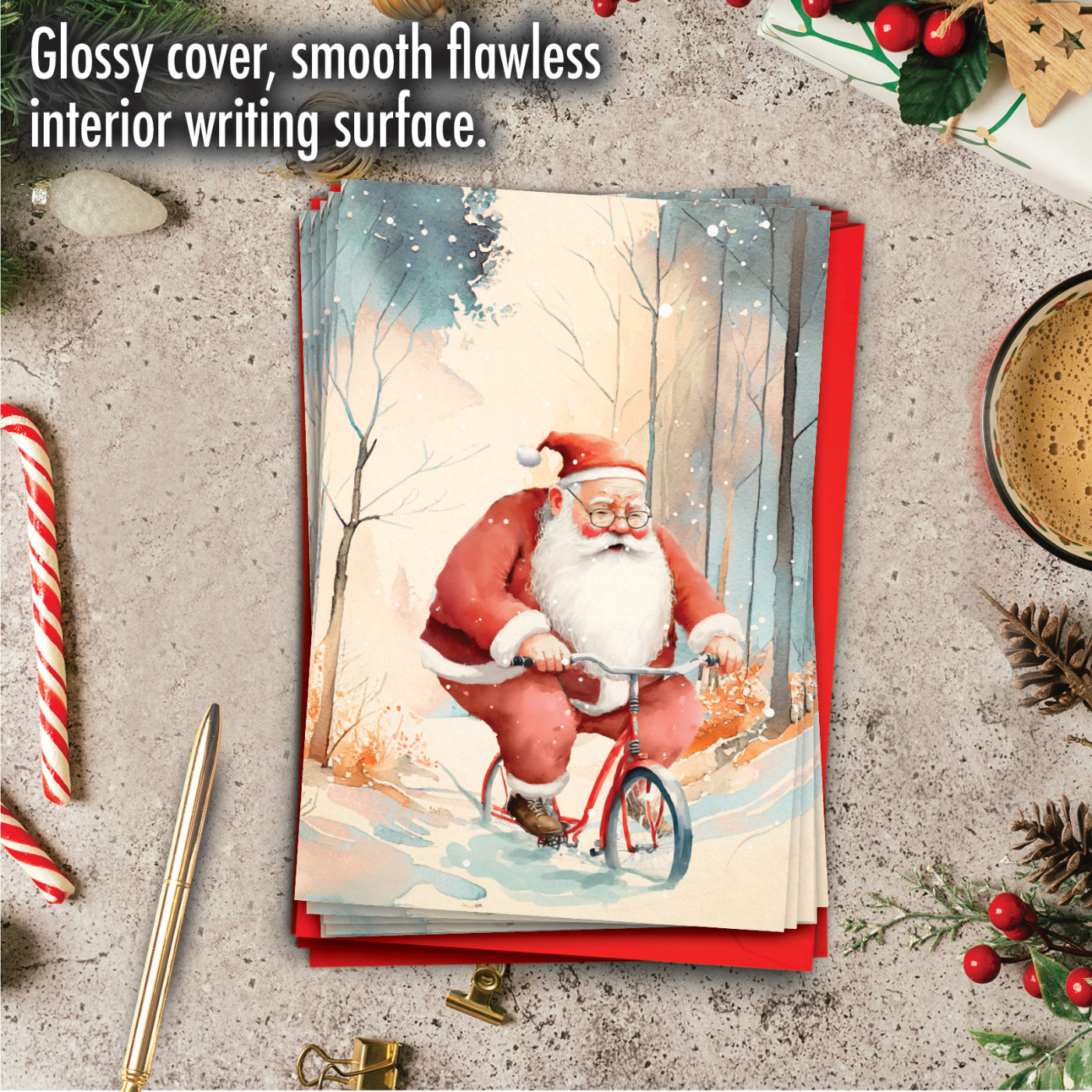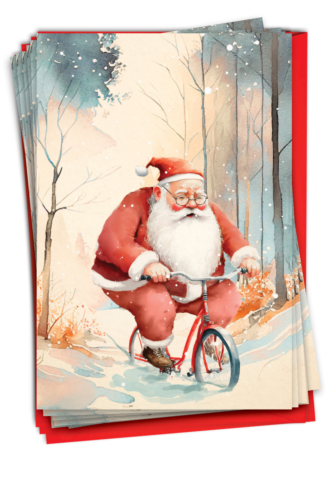 Santa Days - Bike - Beautiful Merry Christmas Box of 12 Cards, Wholesale