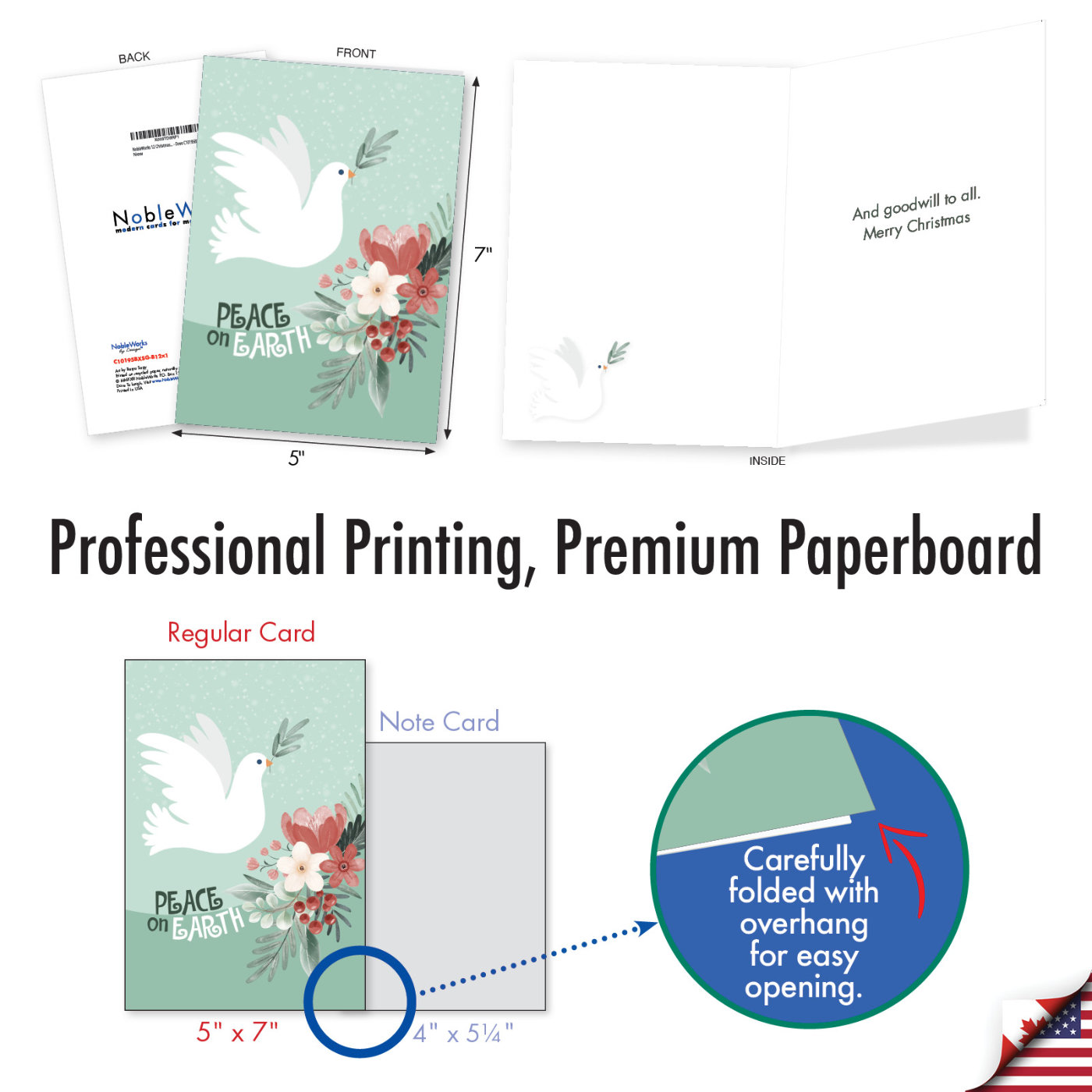 Peace On Earth - Dove - Beautiful Merry Christmas Box of 12 Cards, Wholesale