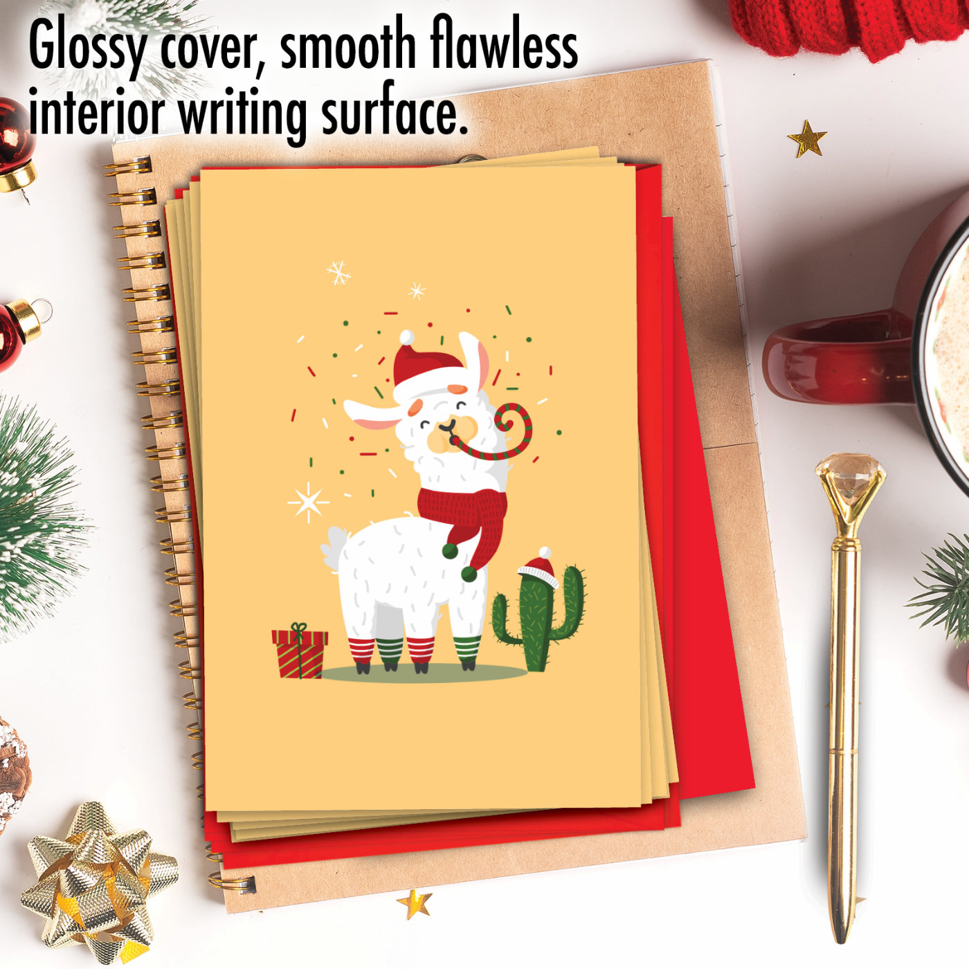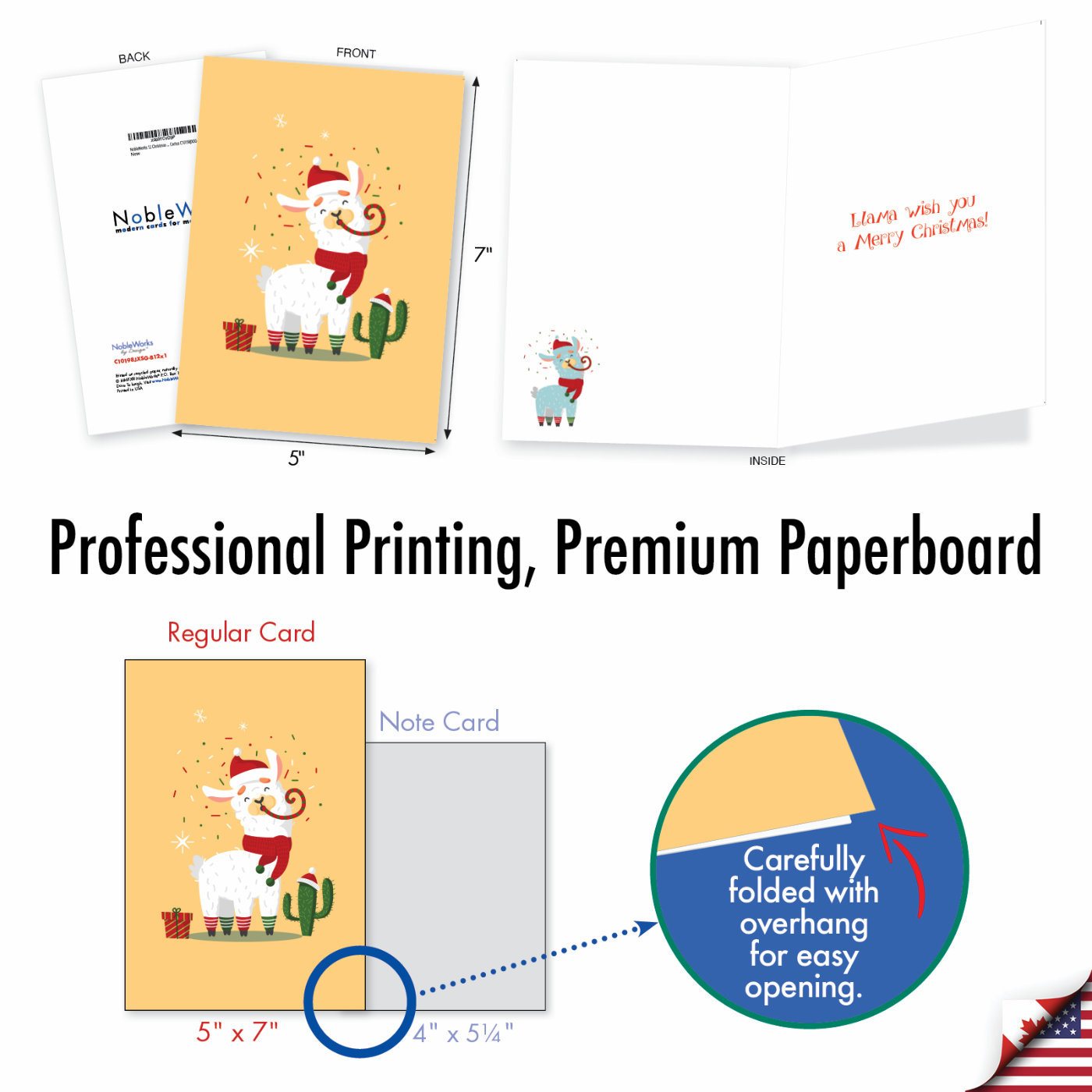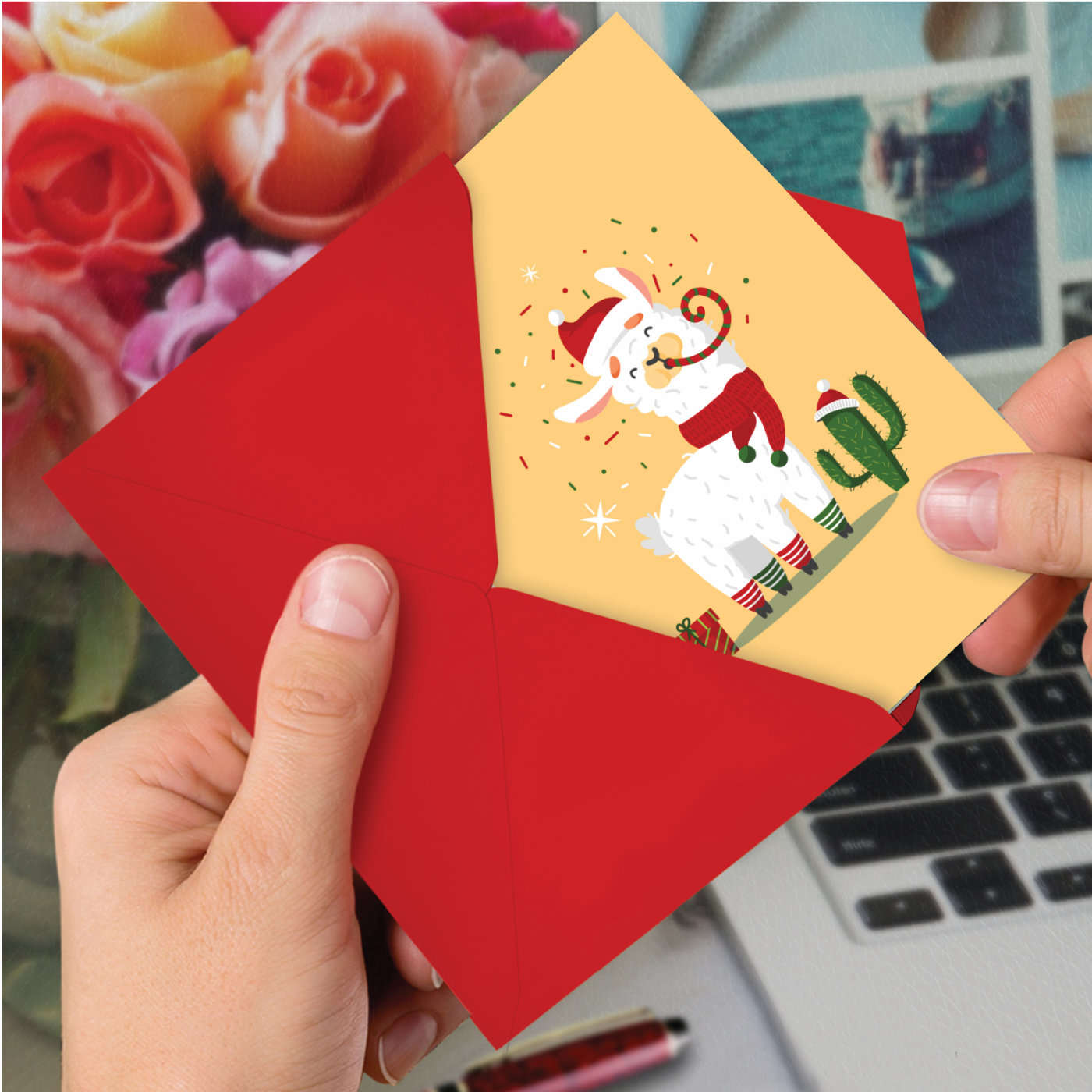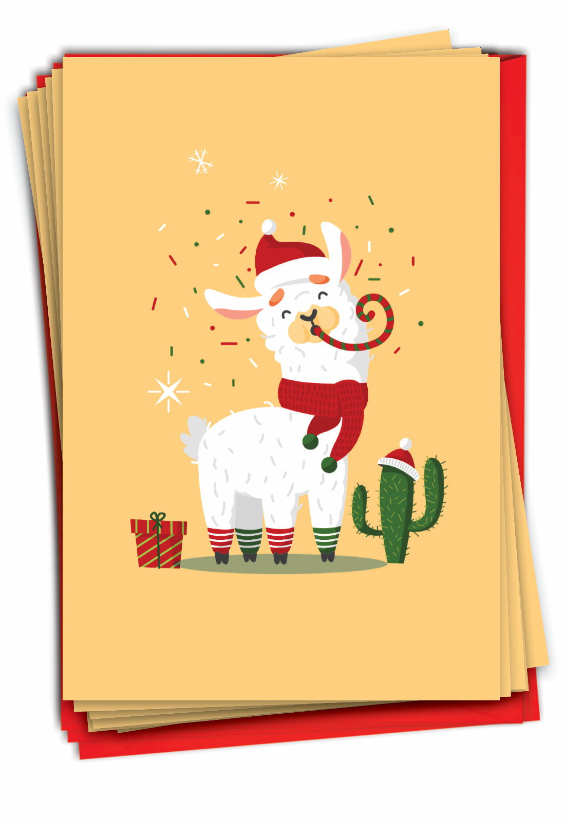 Holiday Llamas - Cactus - Creative Merry Christmas Box of 12 Cards, Wholesale