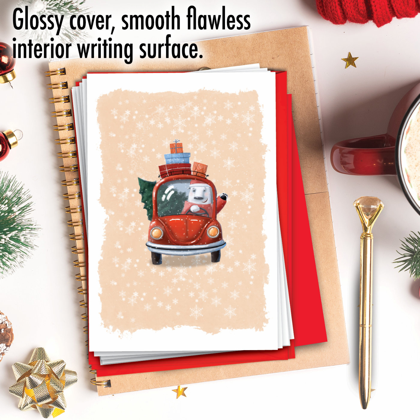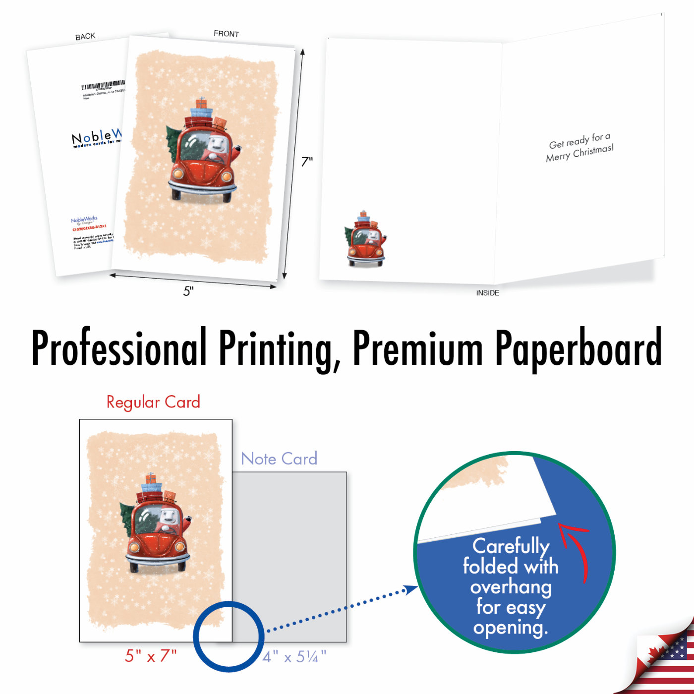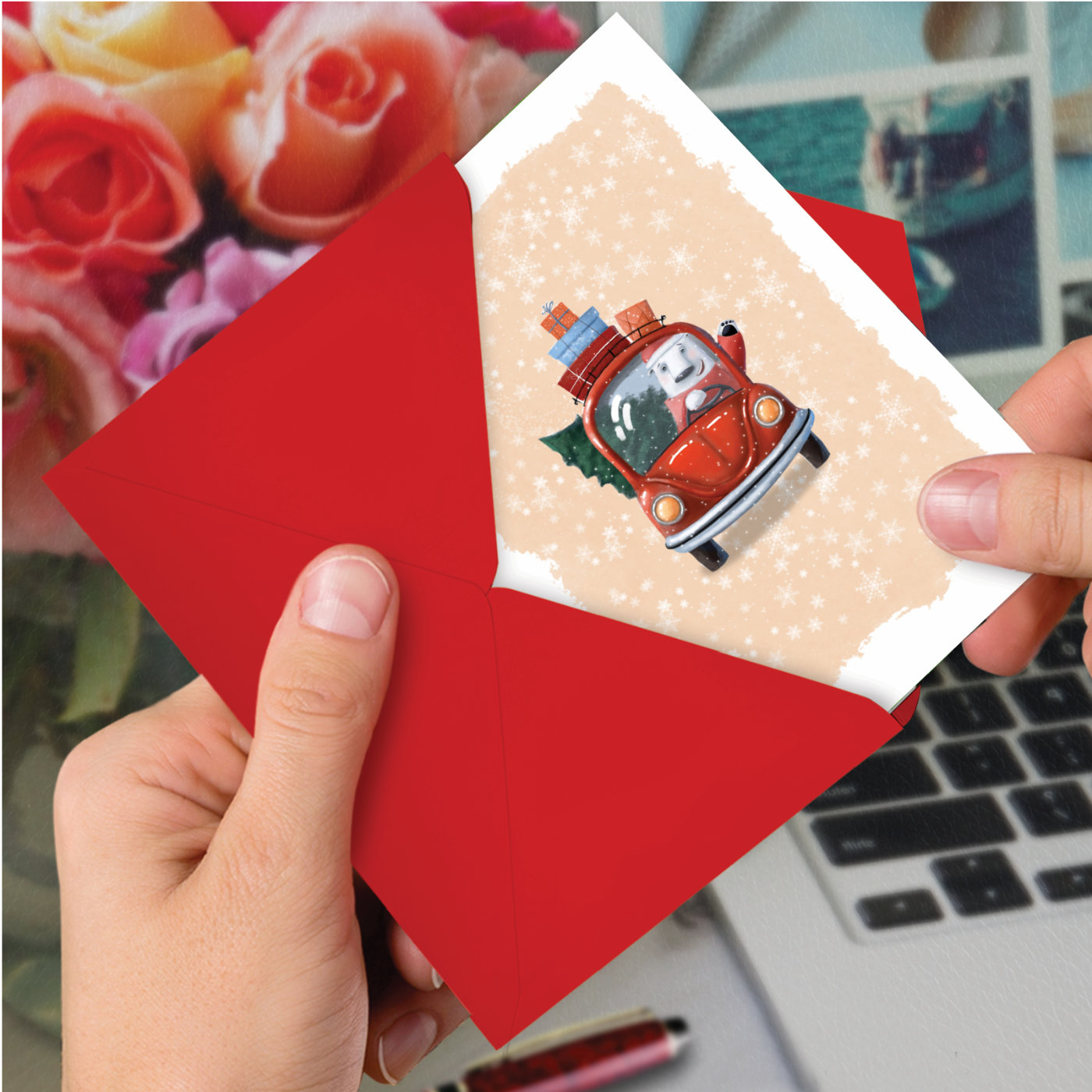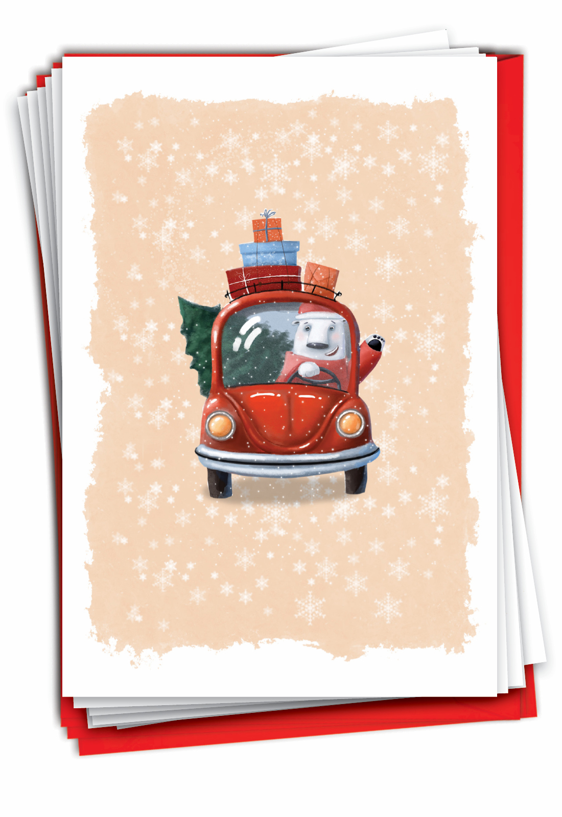 Holiday Cutie Pies - Car - Artful Merry Christmas Box of 12 Cards, Wholesale