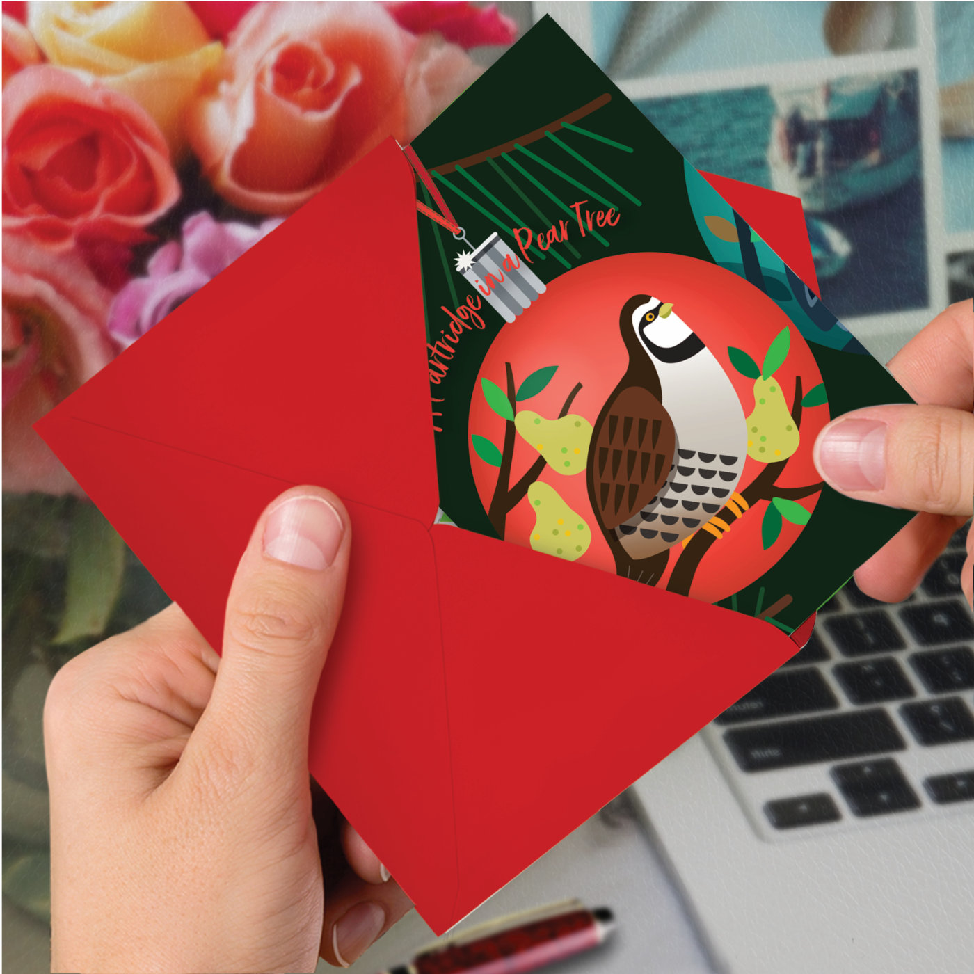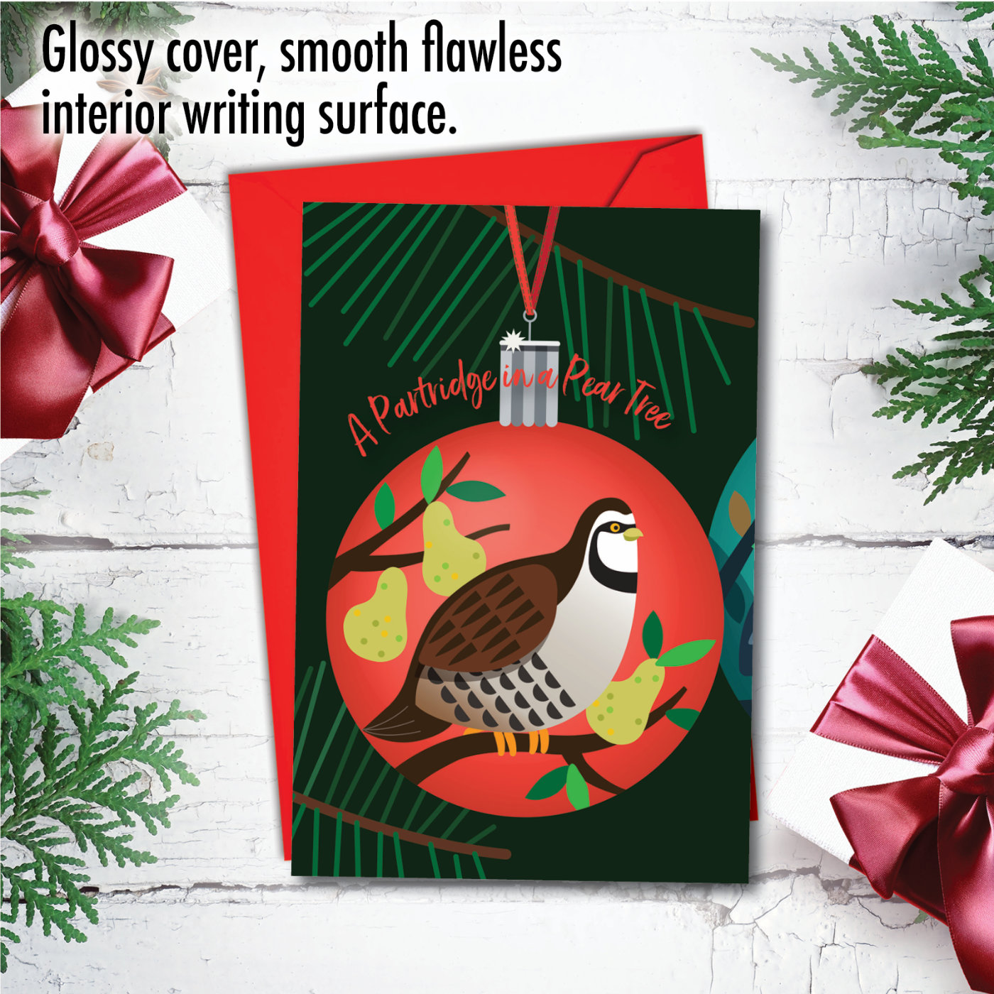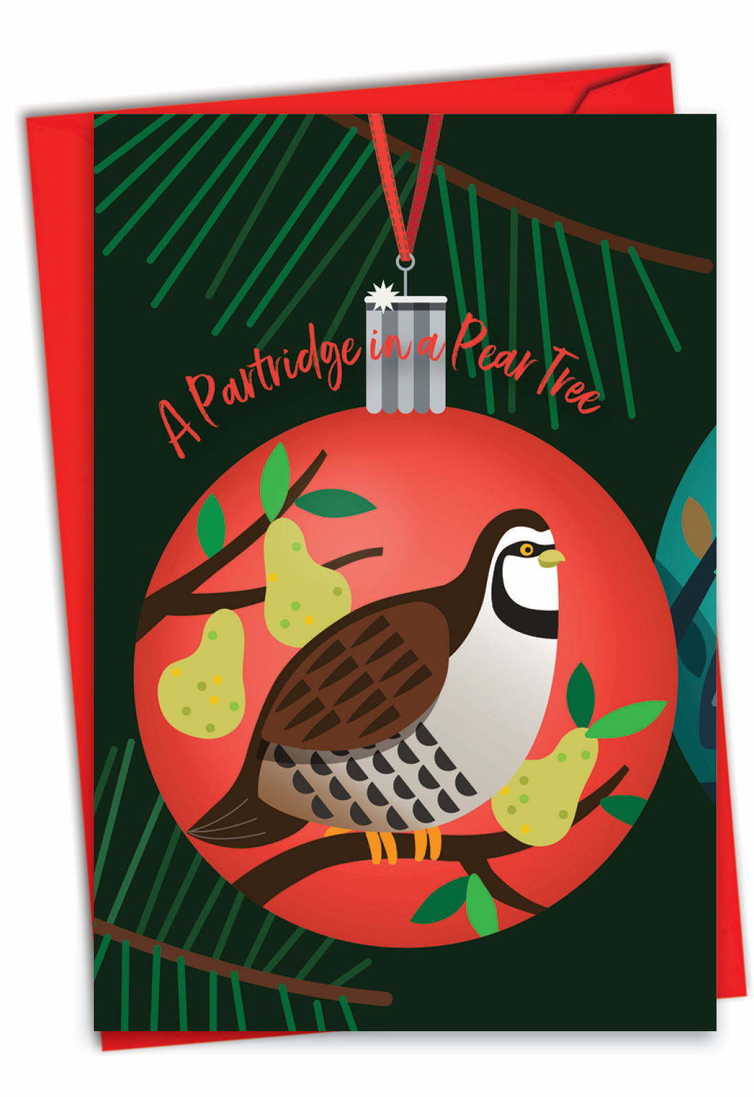 12 Days of Ornaments - Partridge - Stylish Merry Christmas Card, Wholesale