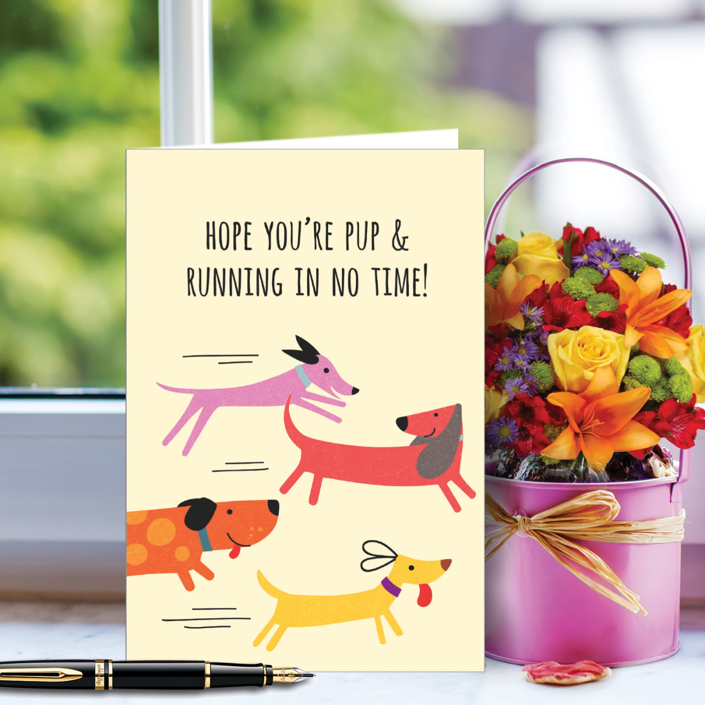 Pup And Running - Humorous Get Well Card, Wholesale