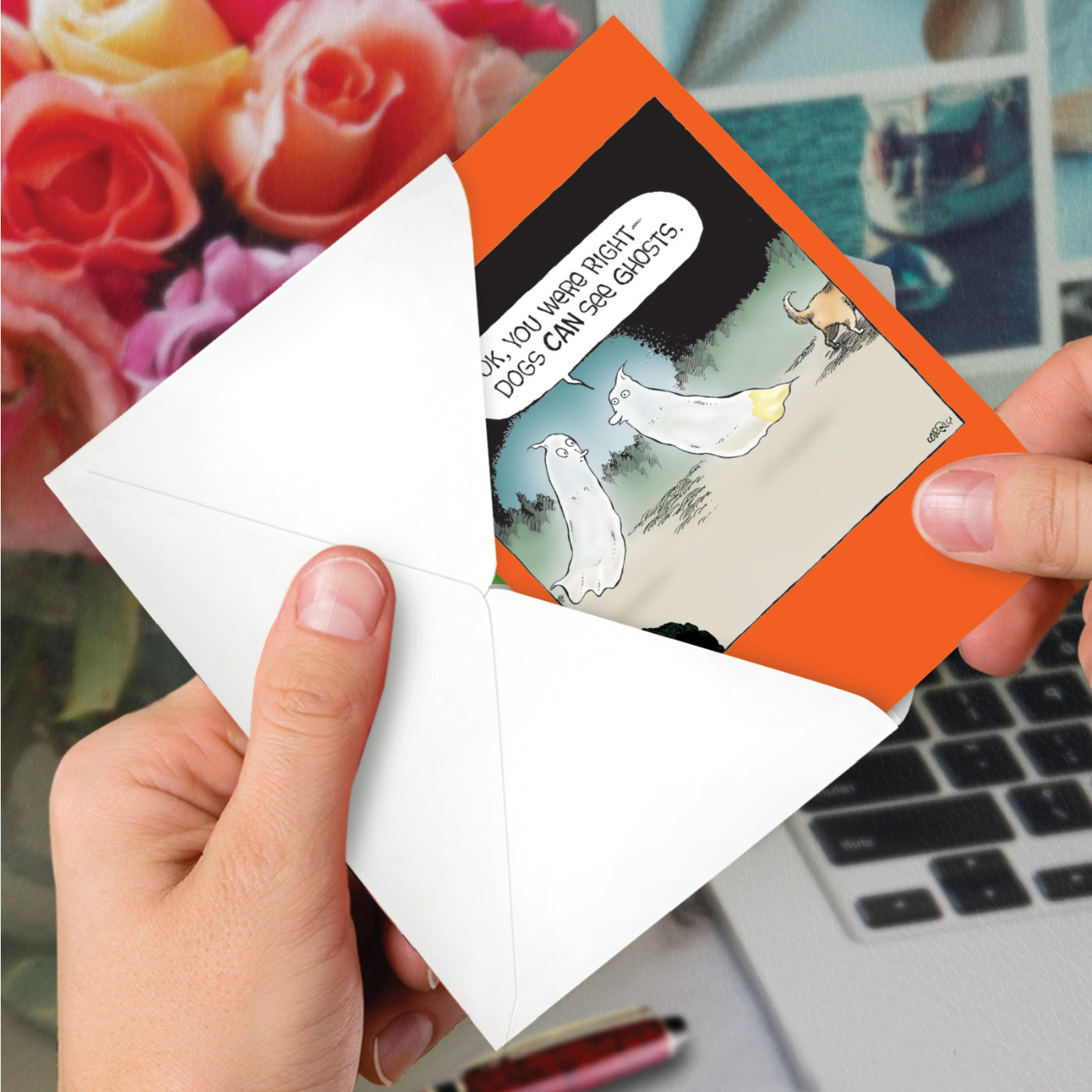 Dogs See Ghosts - Humorous Halloween Box of 12 Cards, Wholesale