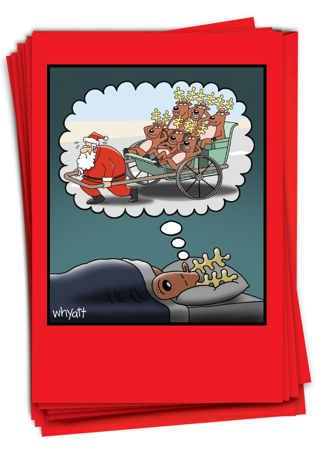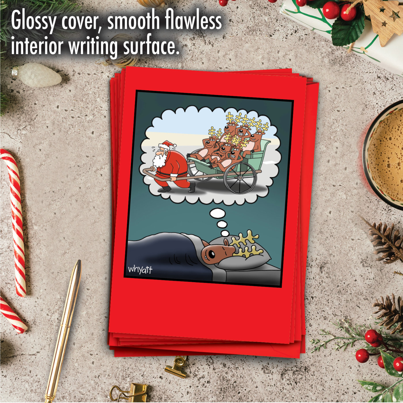 Reindeer Dream - Funny Merry Christmas Box of 12 Cards, Wholesale