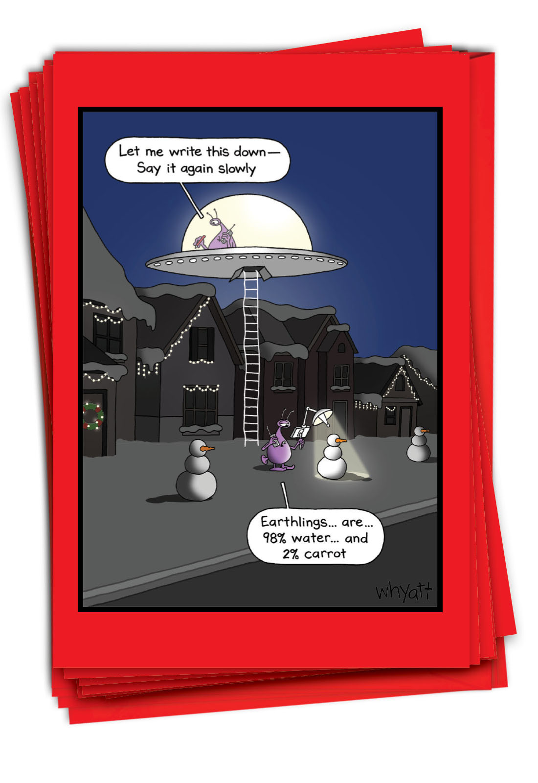 Alien Analysis - Humorous Merry Christmas Box of 12 Cards, Wholesale