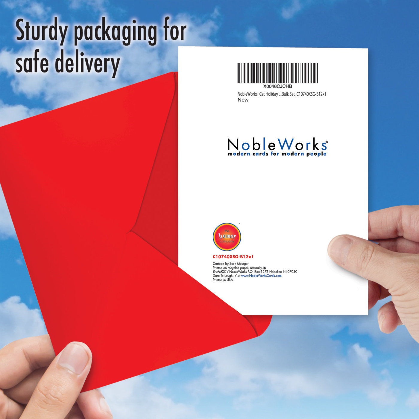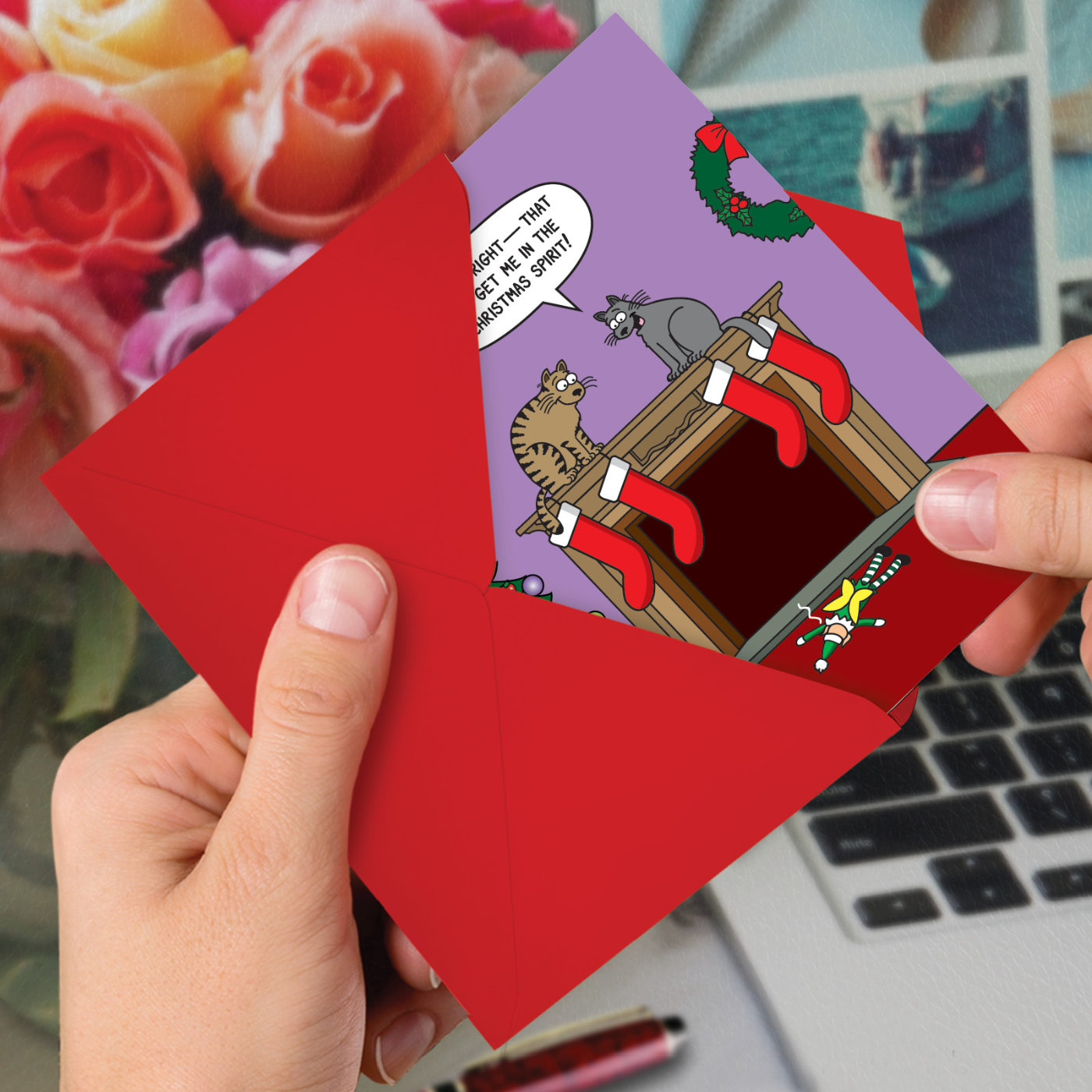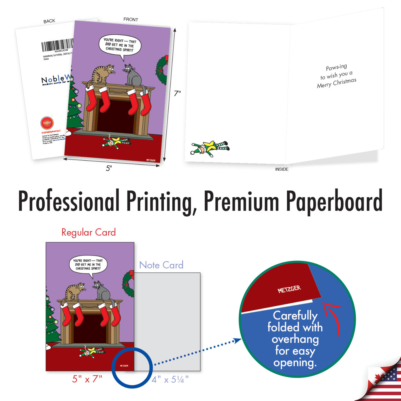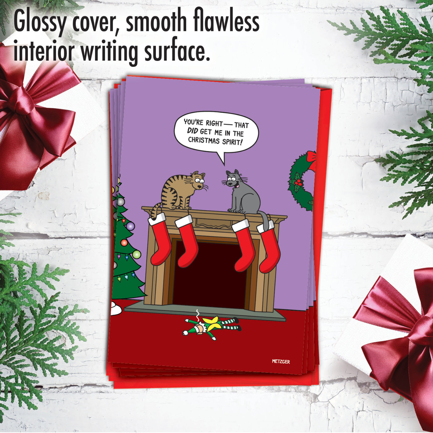 Cat Holiday Spirit - Humorous Merry Christmas Box of 12 Cards, Wholesale