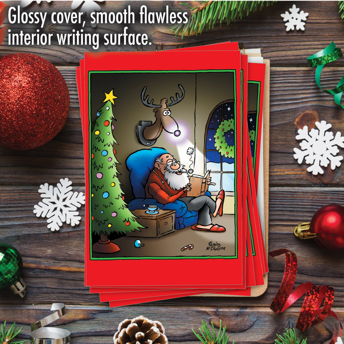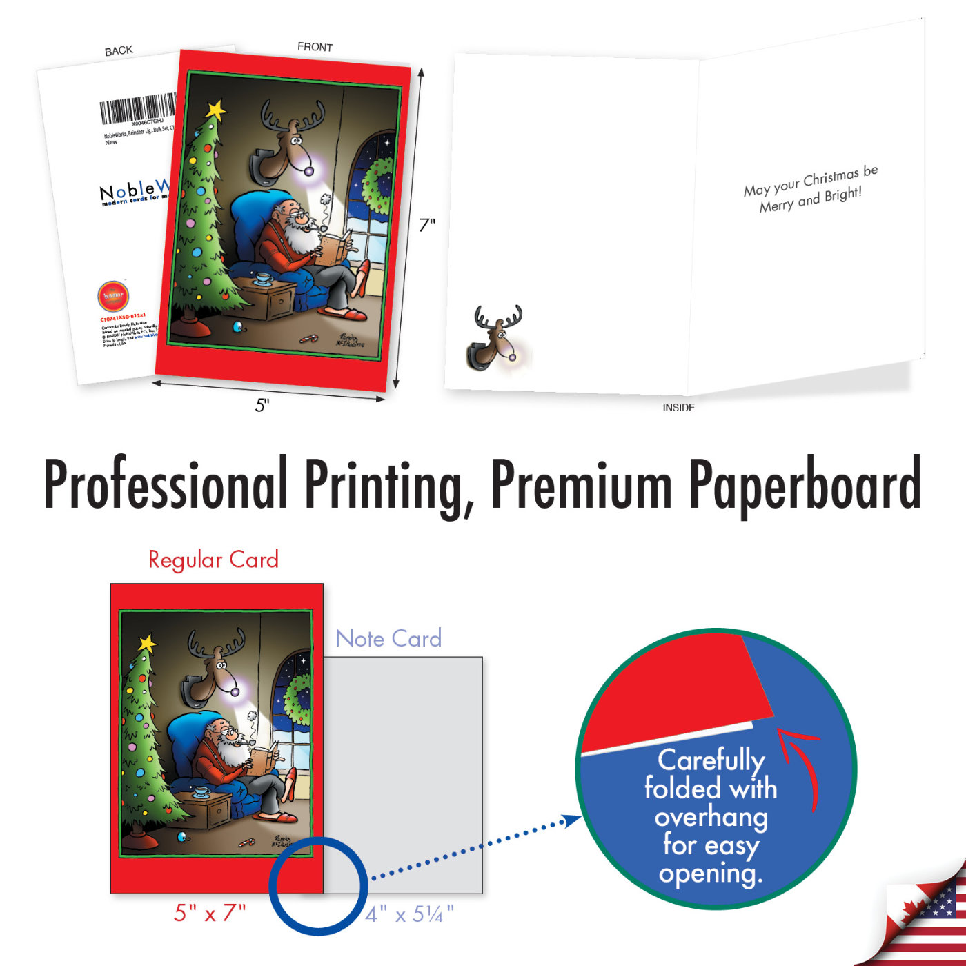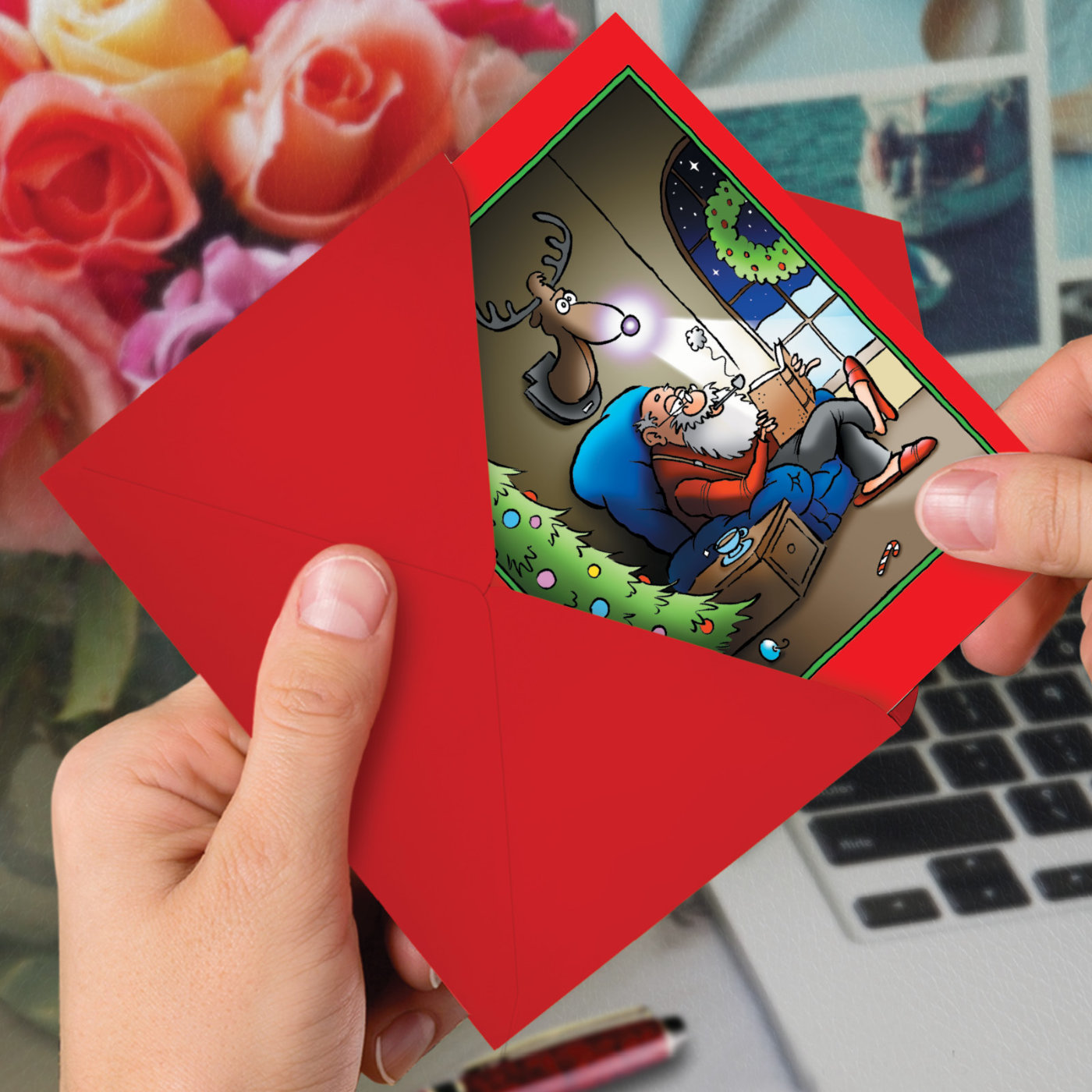 Reindeer Light - Funny Merry Christmas Box of 12 Cards, Wholesale