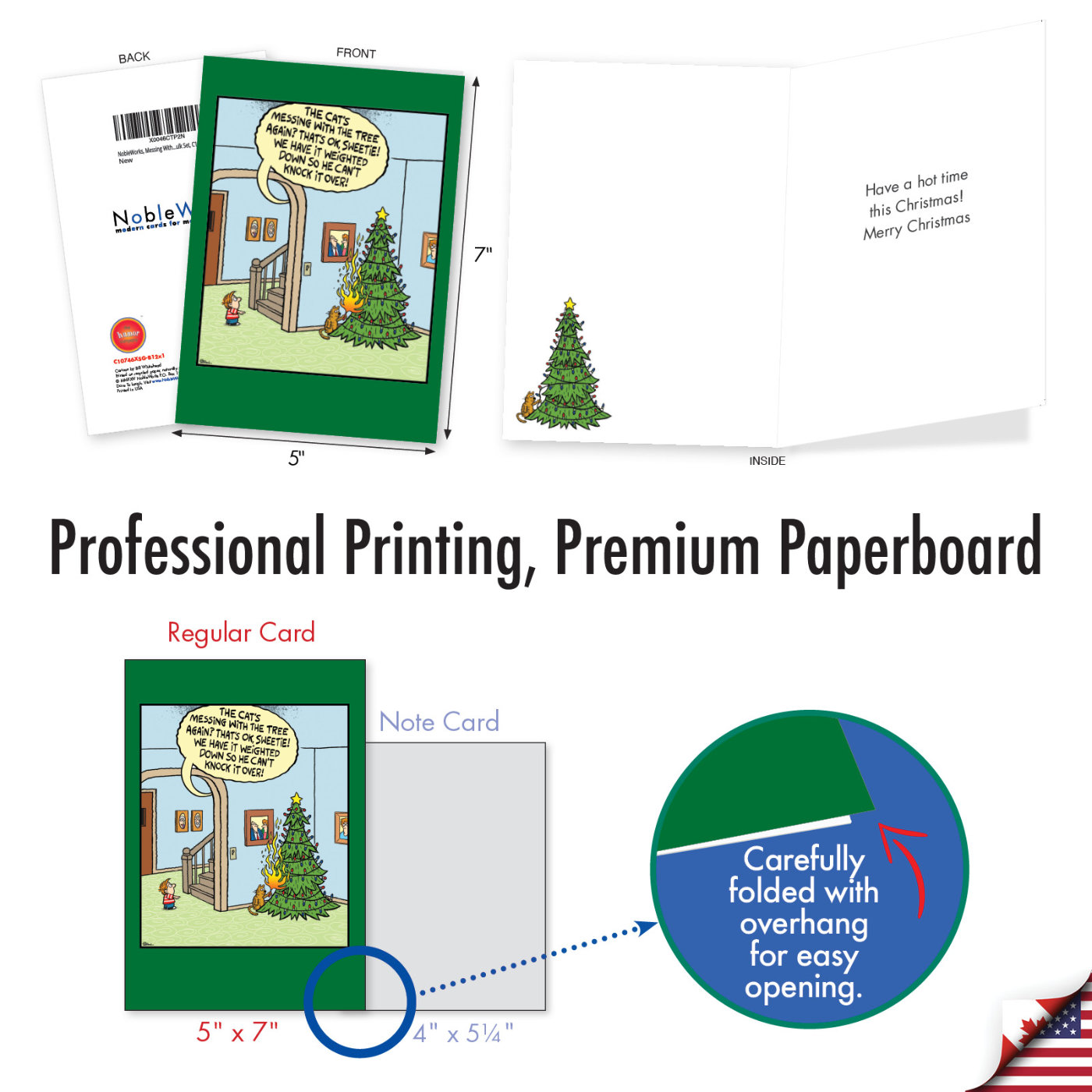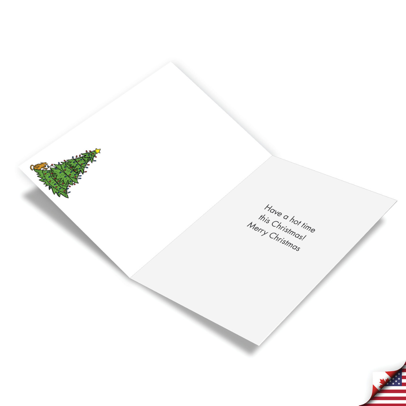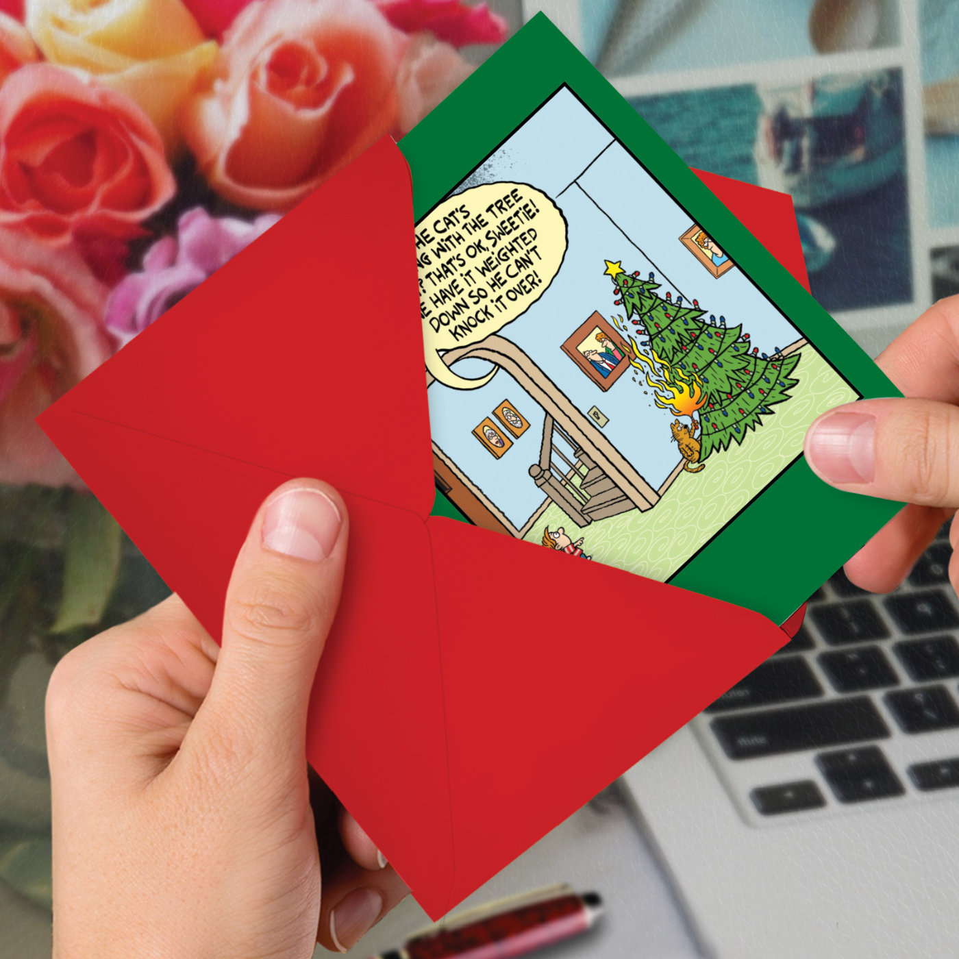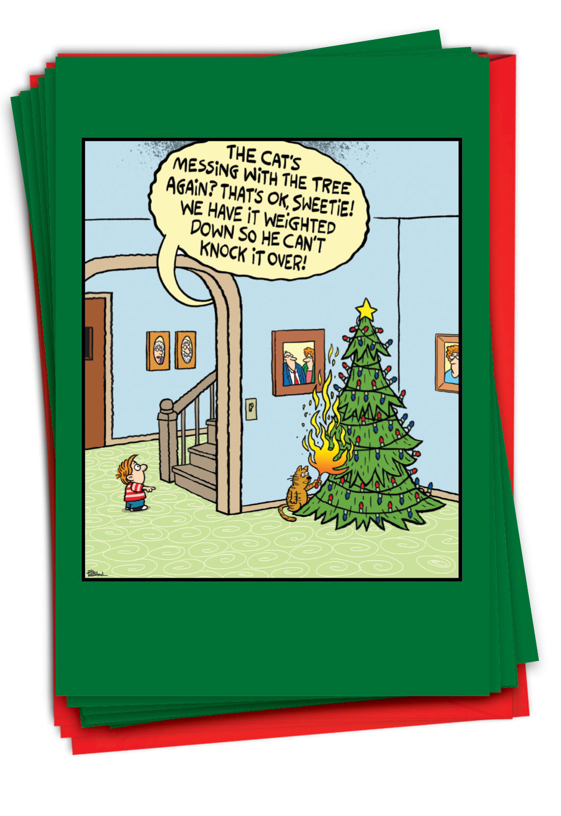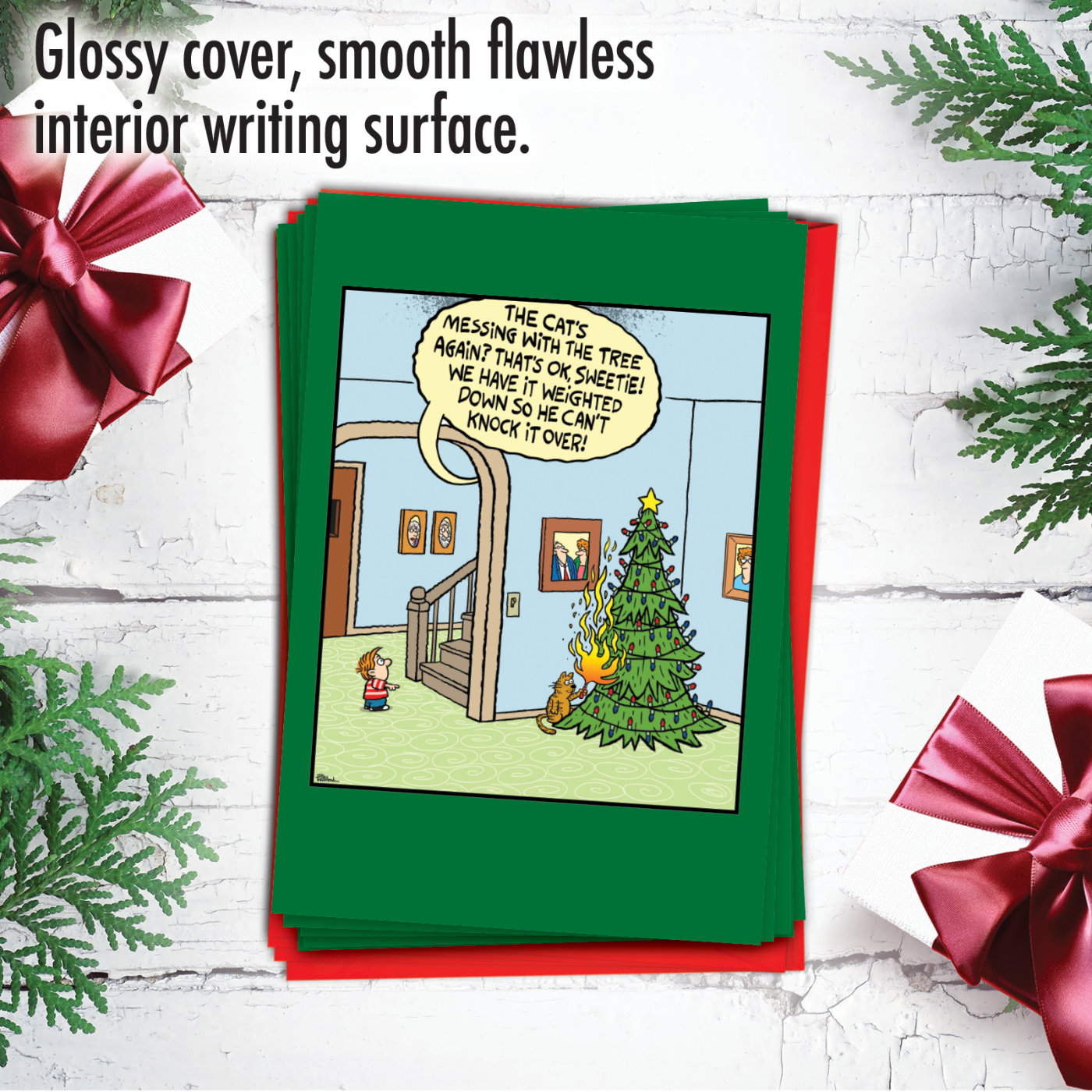 Messing With The Tree - Humorous Merry Christmas Box of 12 Cards, Wholesale