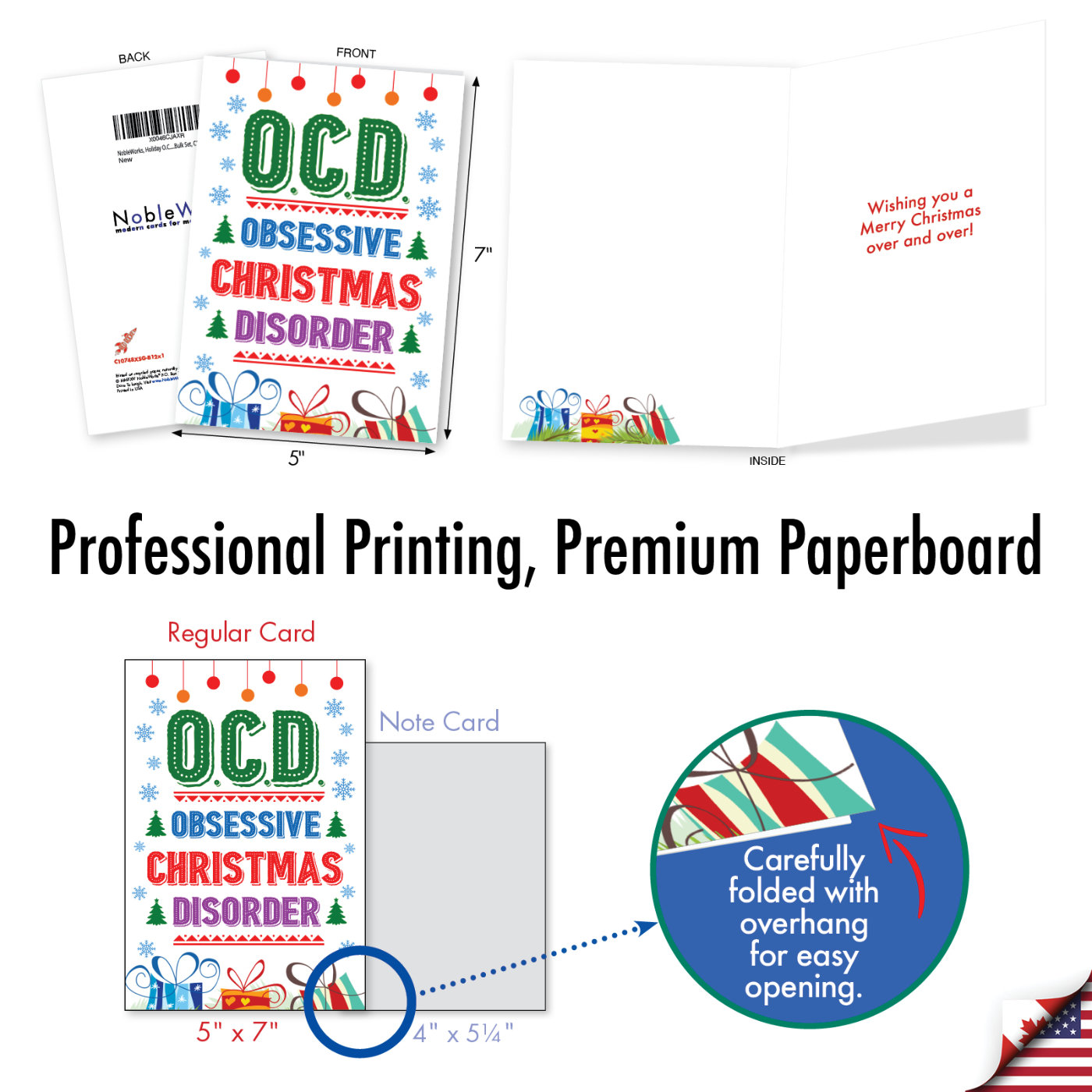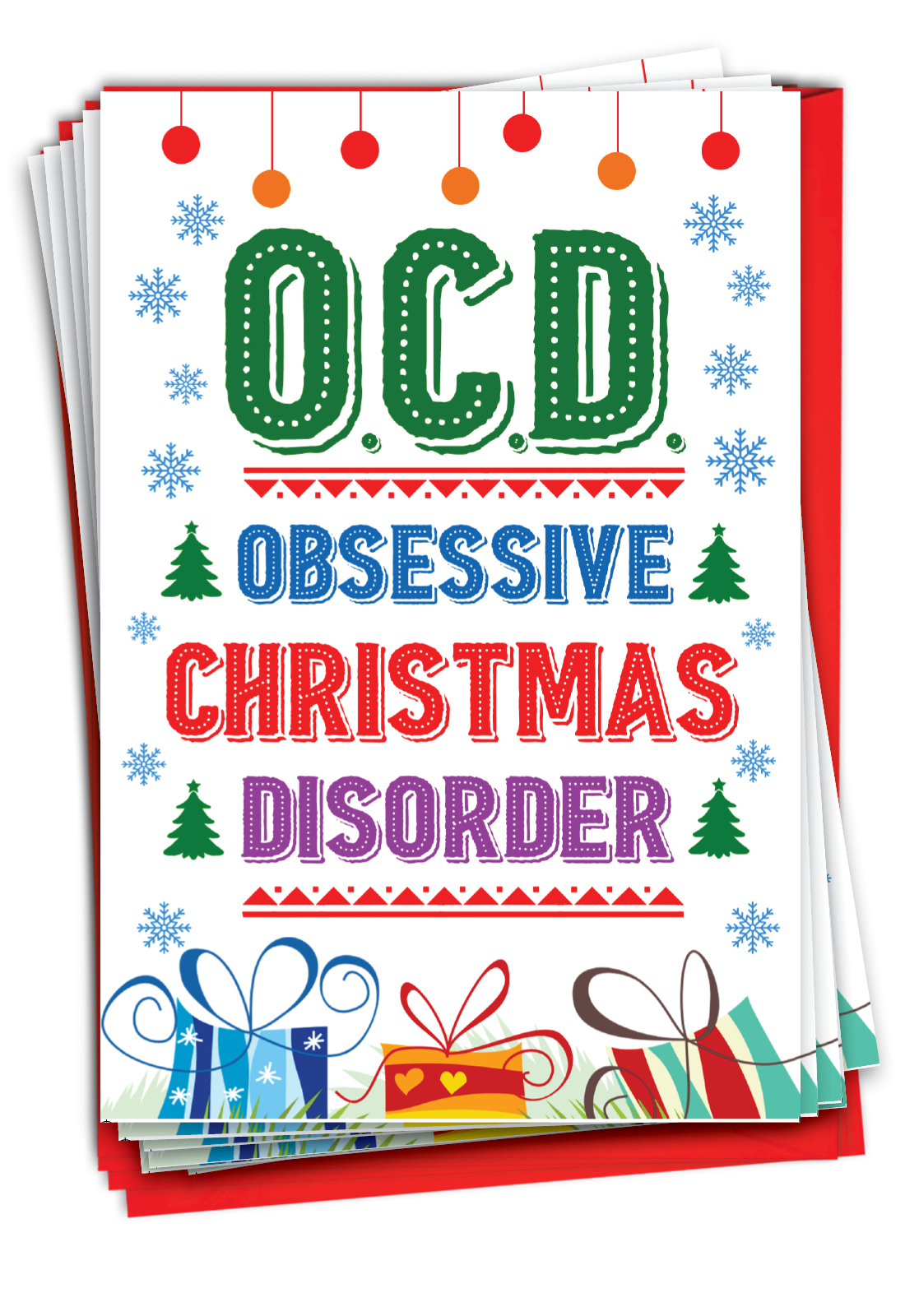 Holiday O.C.D. - Humorous Merry Christmas Box of 12 Cards, Wholesale