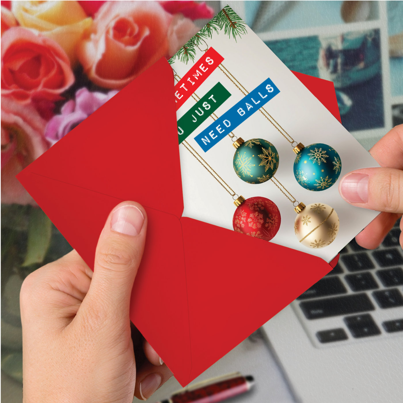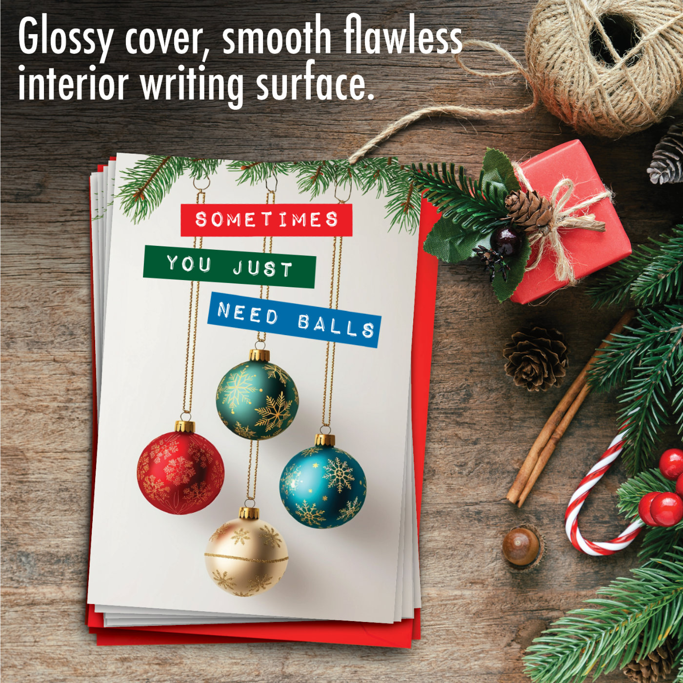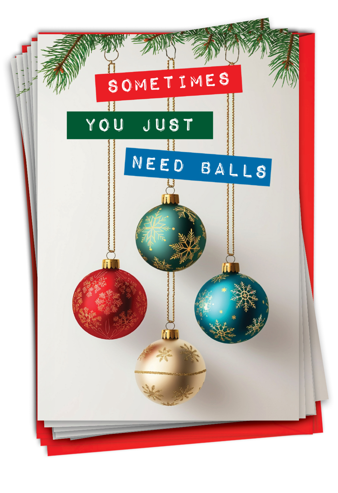 Need Balls - Funny Merry Christmas Box of 12 Cards, Wholesale