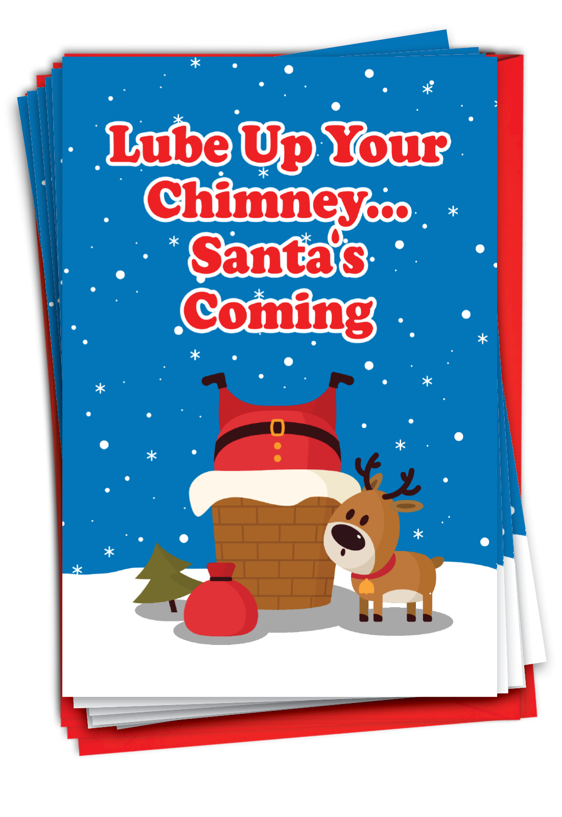 Chimney Lube - Funny Merry Christmas Box of 12 Cards, Wholesale