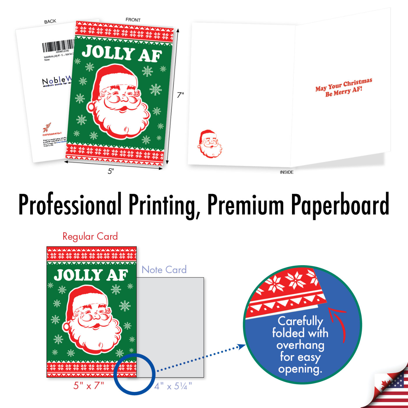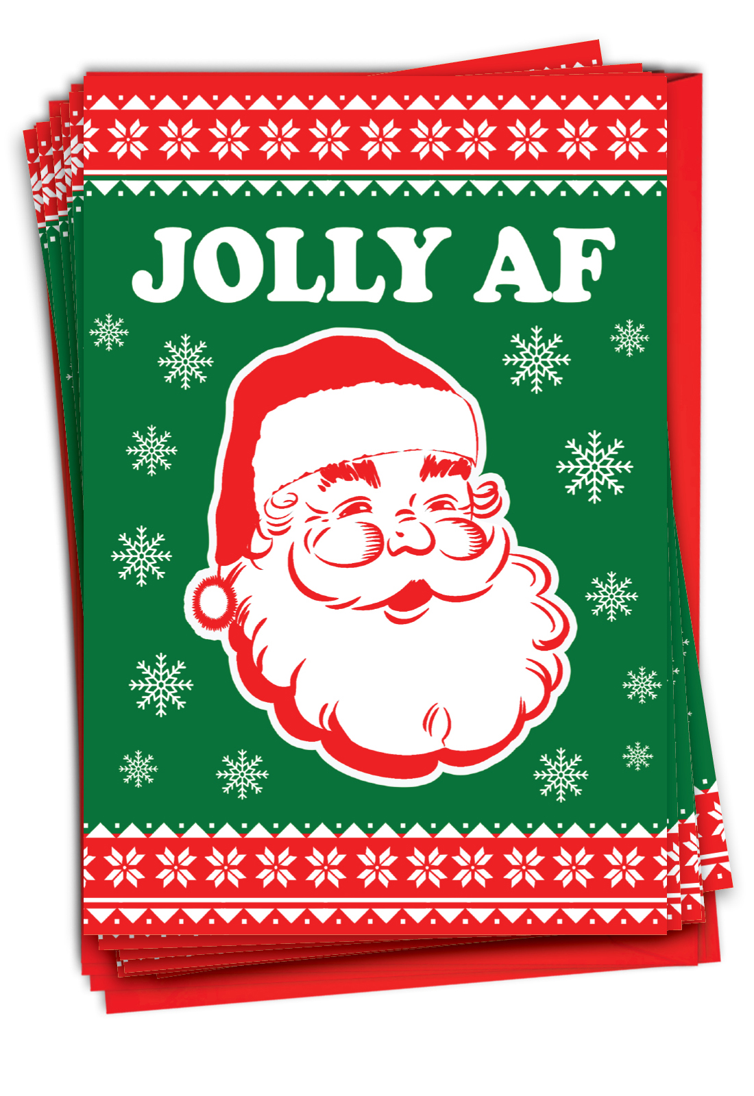 Jolly AF - Humorous Merry Christmas Box of 12 Cards, Wholesale