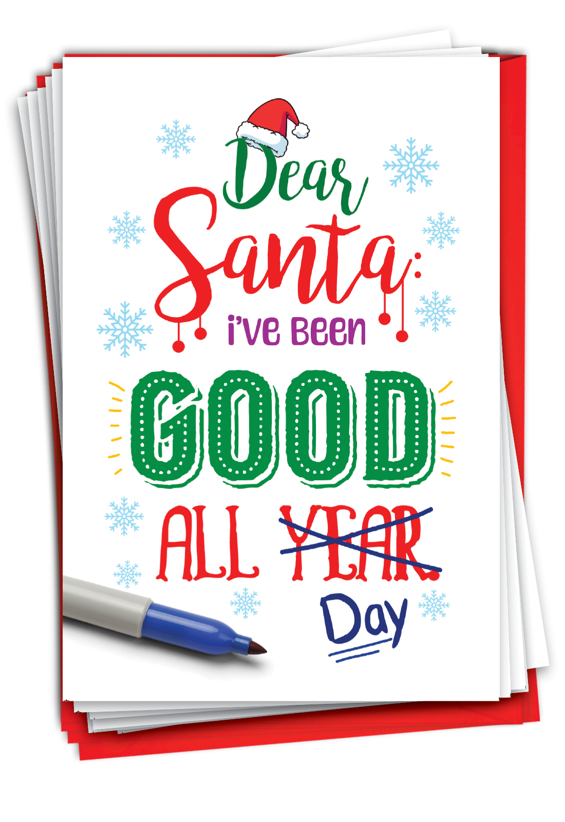 Dear Santa: I've been good all year [with "year" crossed out] day