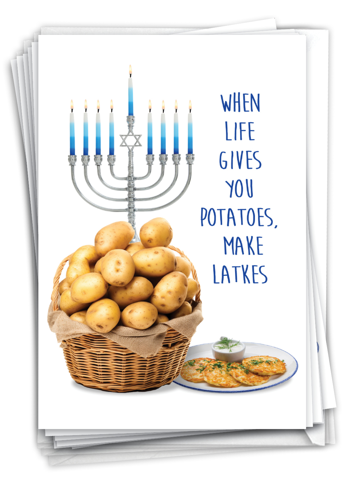Potato Latkes - Humorous Chanukah Box of 12 Cards, Wholesale