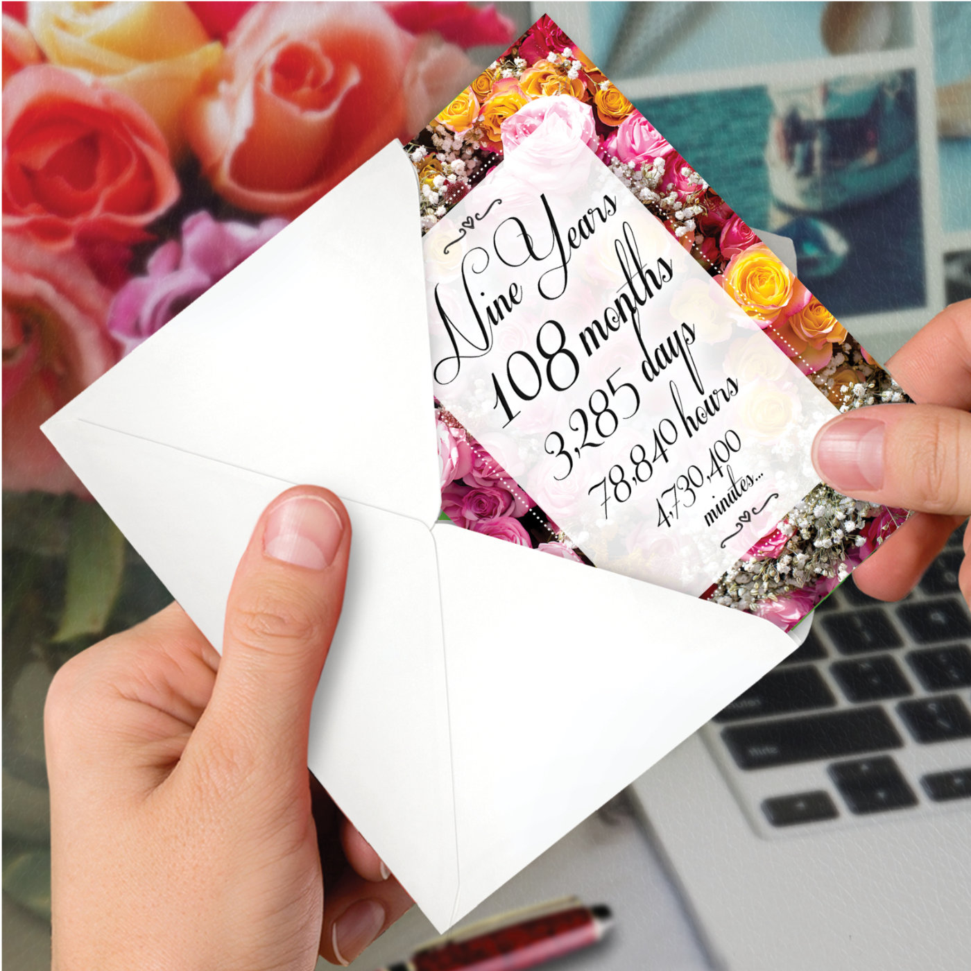 9 Year Time Count - Artful Anniversary Milestone Card, Wholesale