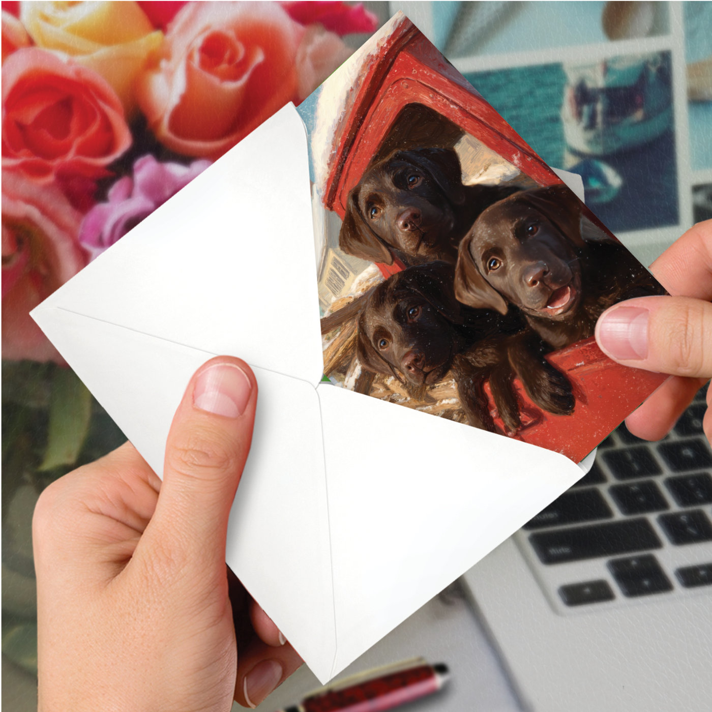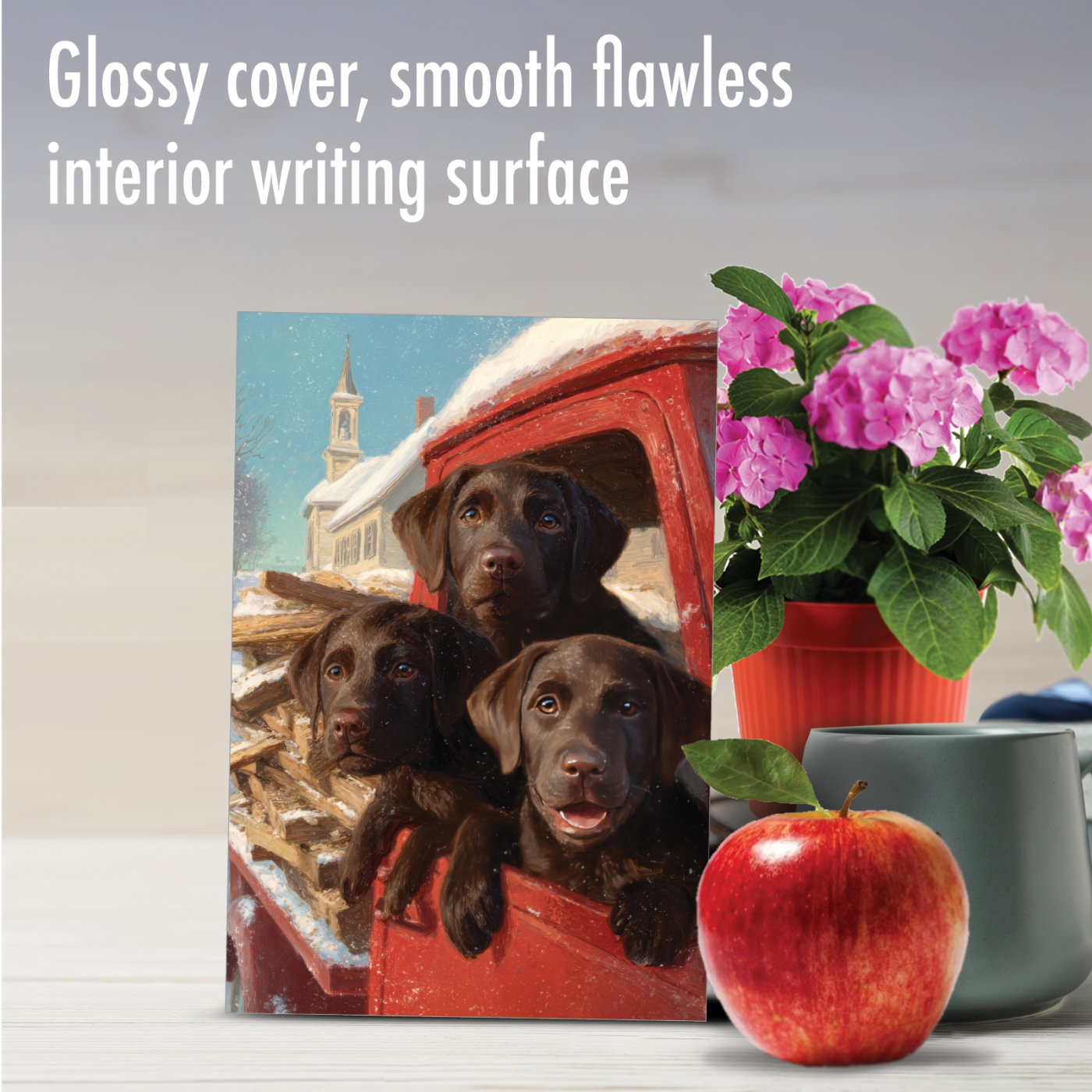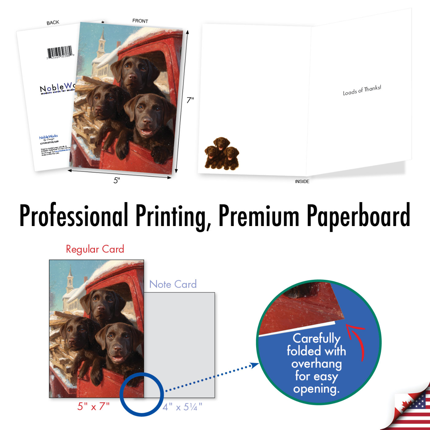 Chocolate Lab Winter Pups - Truck - Creative Thank You Card, Wholesale
