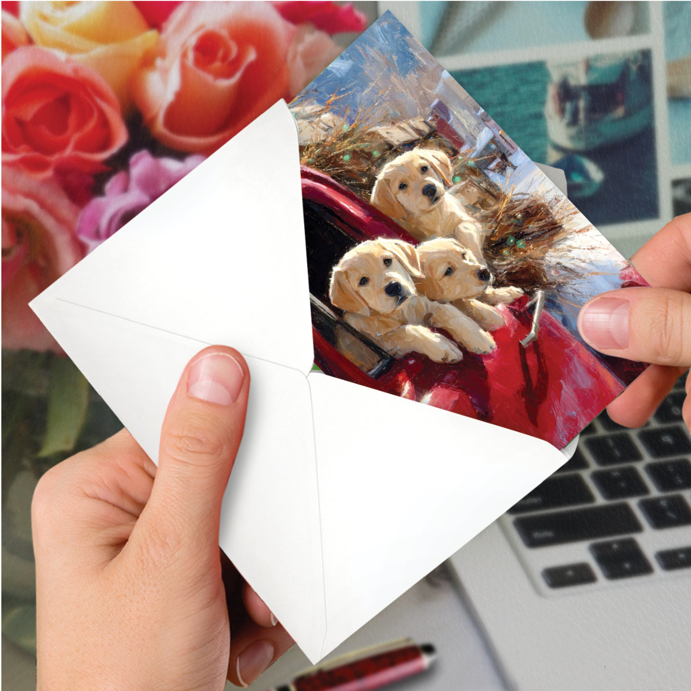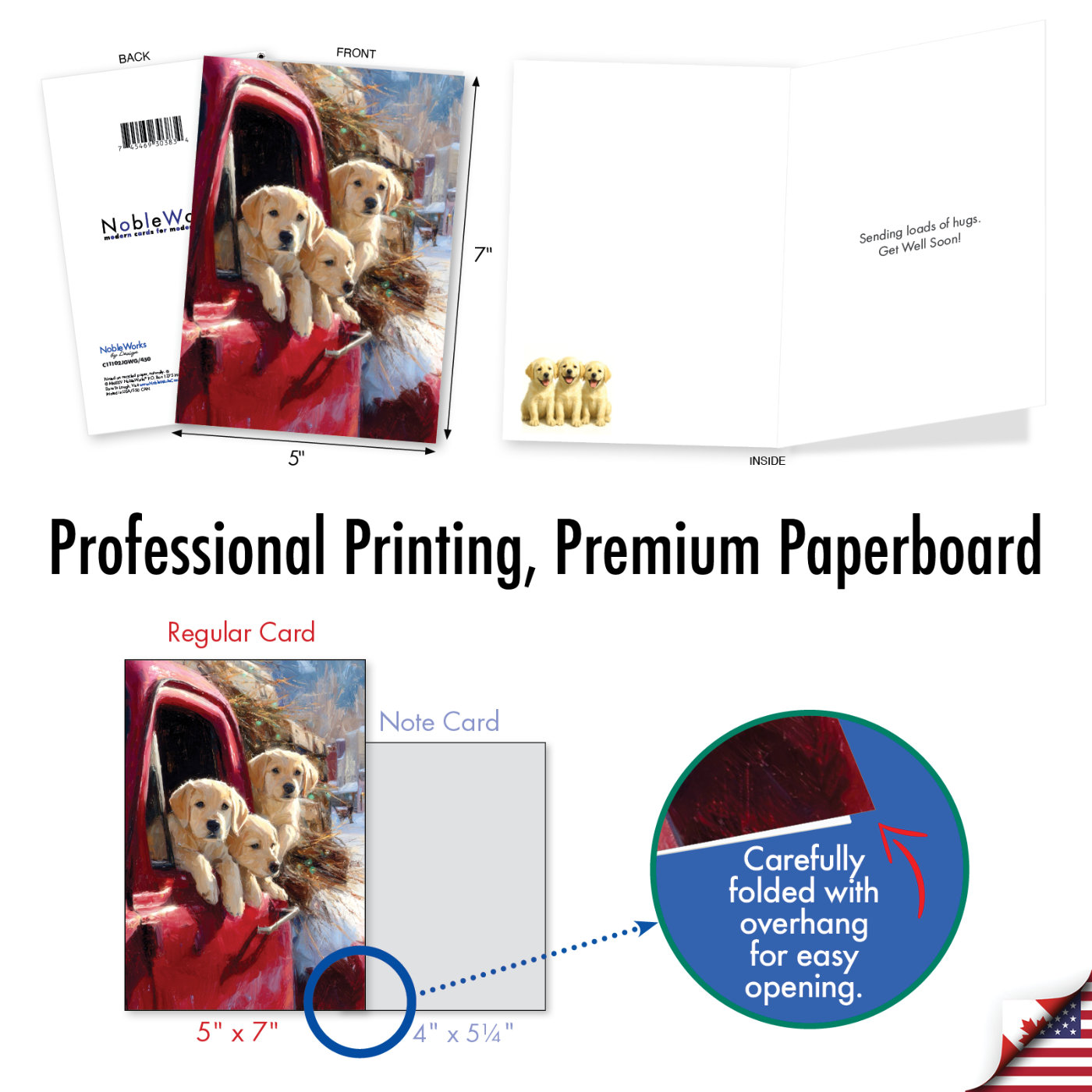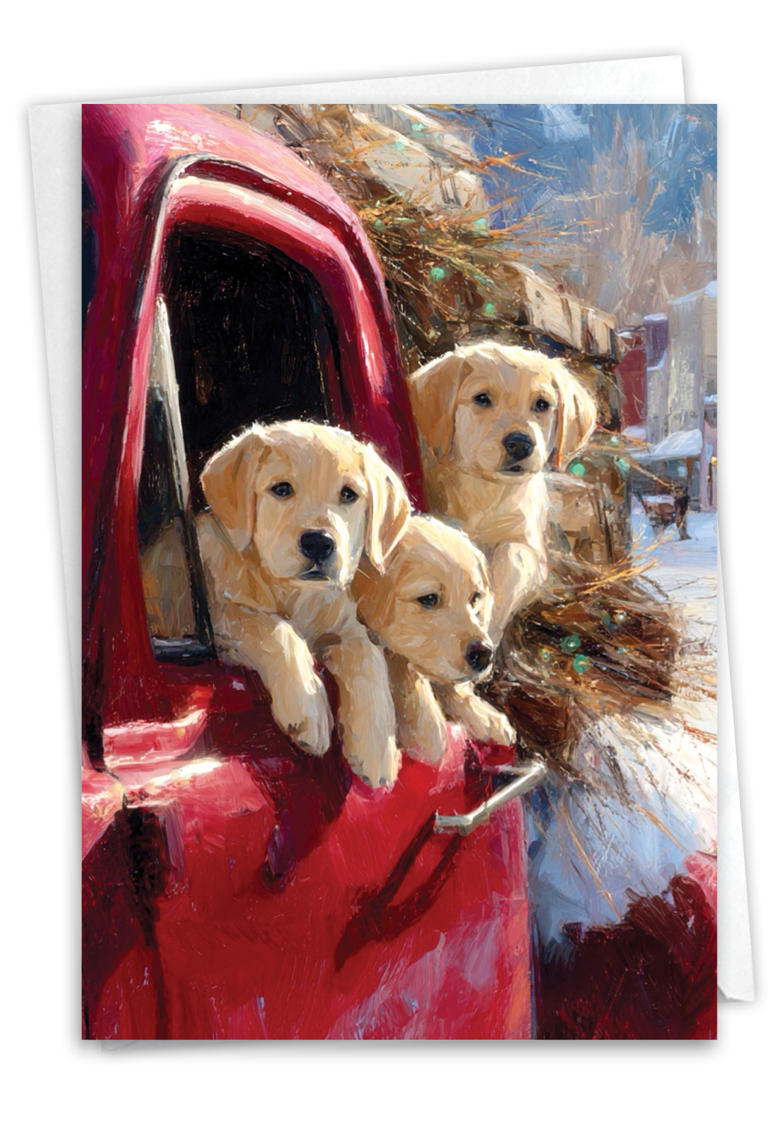 Yellow Lab Winter Pups - Pickup - Artful Get Well Card, Wholesale