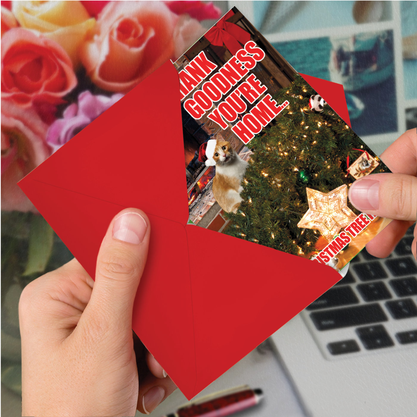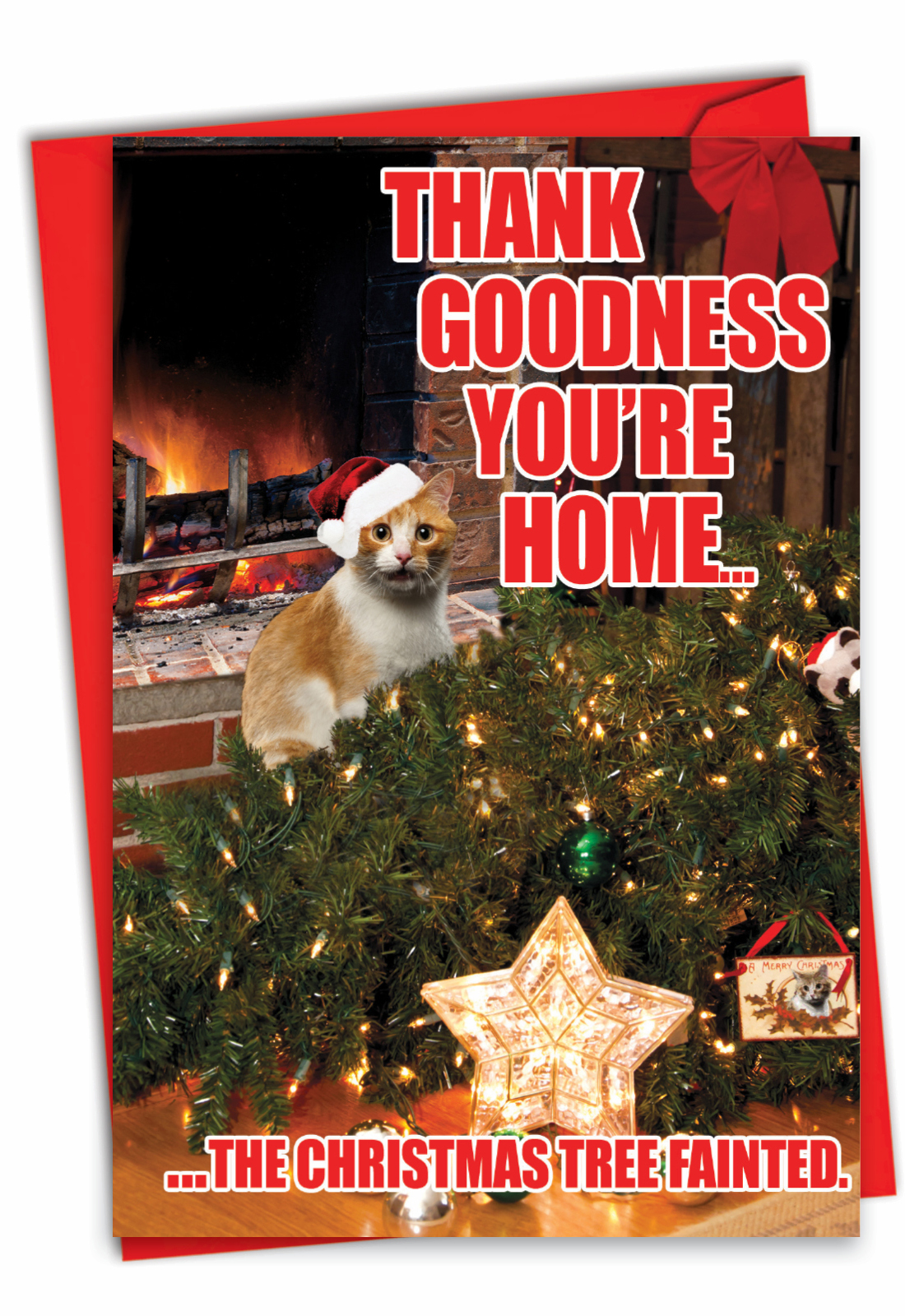 Tree Fainted-Cat - Humorous Christmas Card, Wholesale