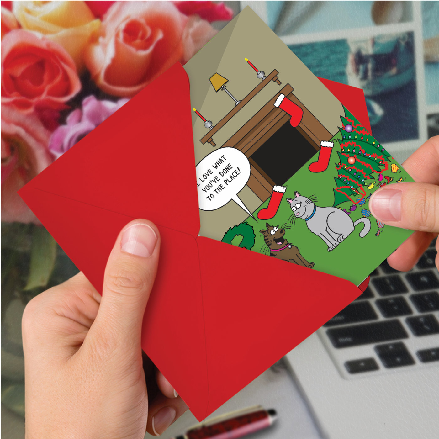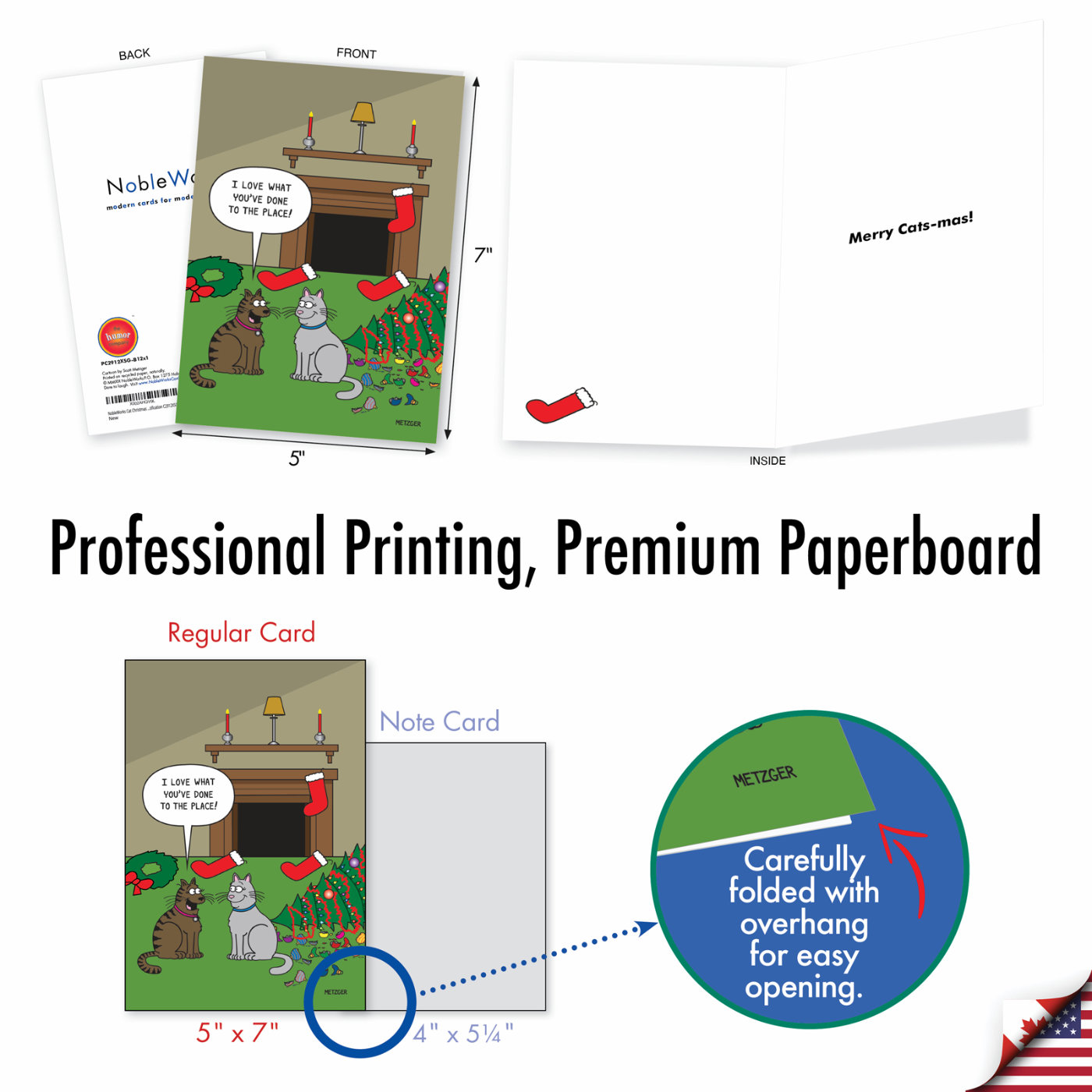 Cat Christmas Decor - Hilarious Merry Christmas Box of 12 Cards, Wholesale