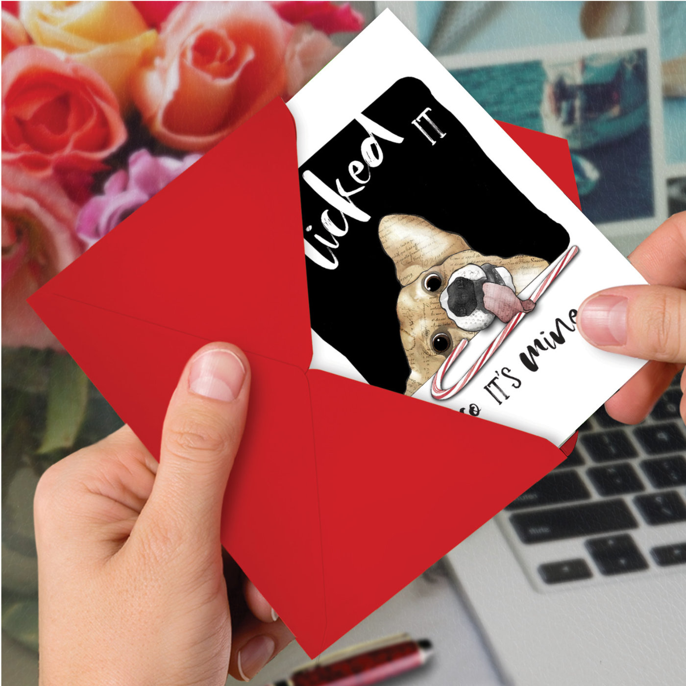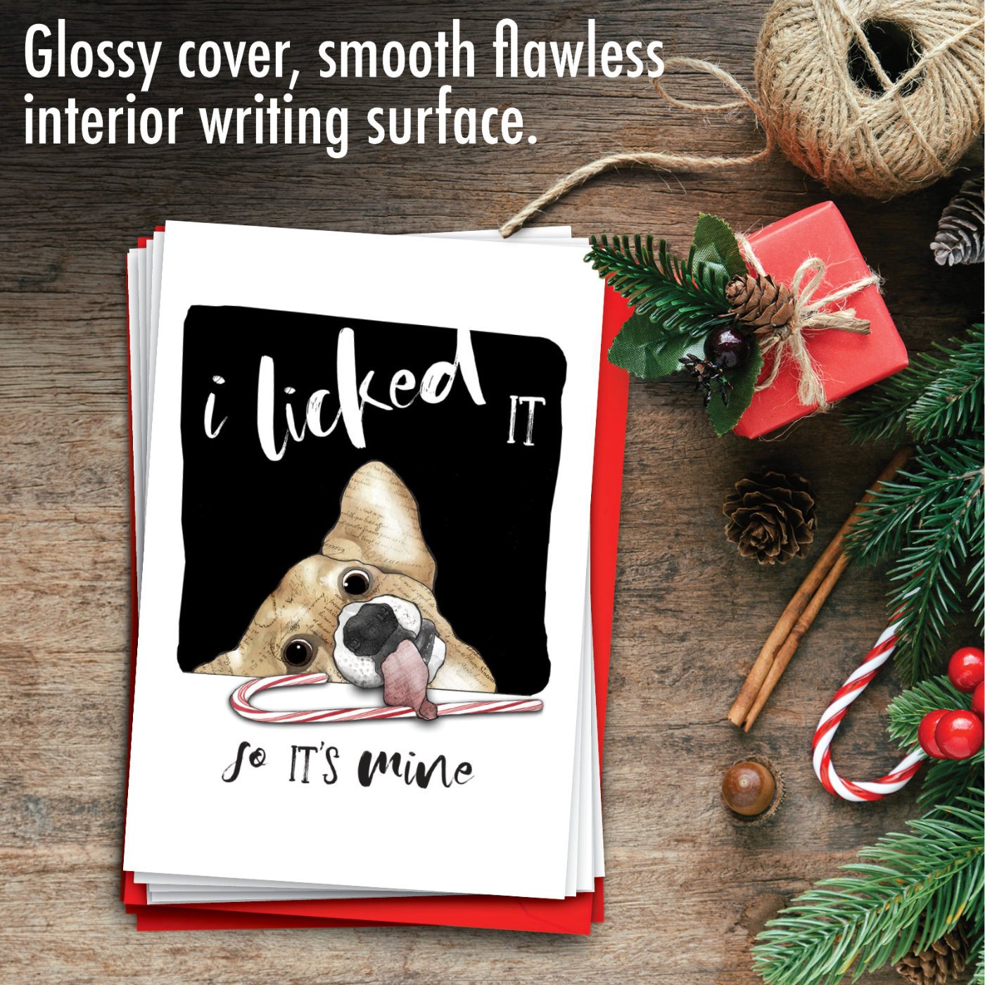 Holiday Dog Antics - Licked It - Beautiful Christmas Thank You Box of 12 Cards, Wholesale