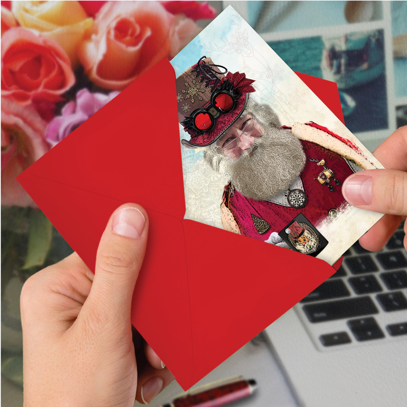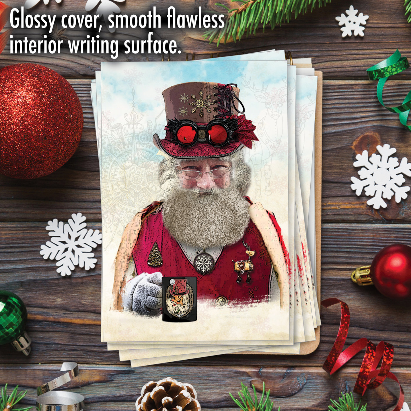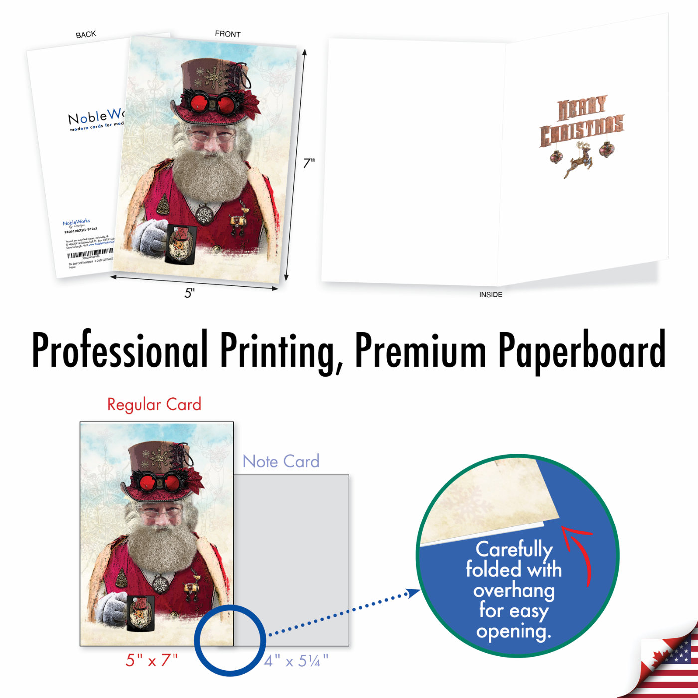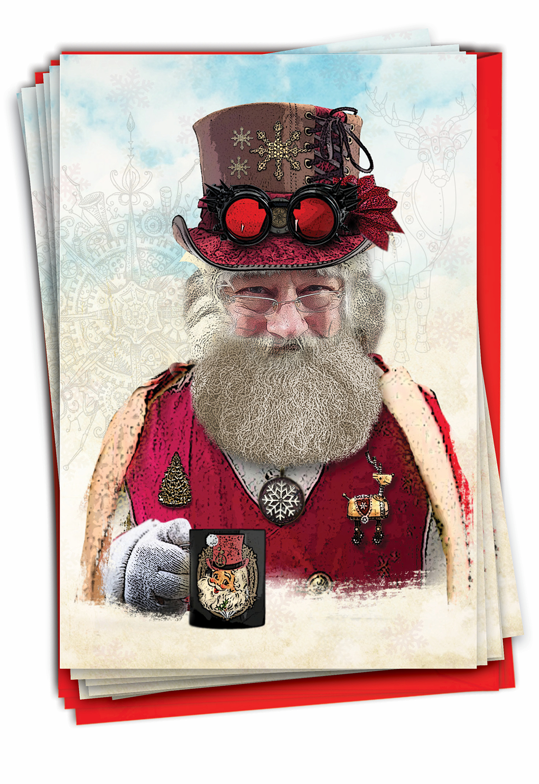 Steampunk Holidays - Cape - Stylish Merry Christmas Box of 12 Cards, Wholesale
